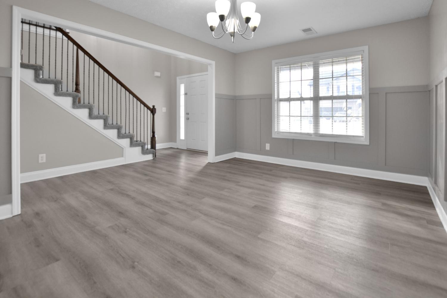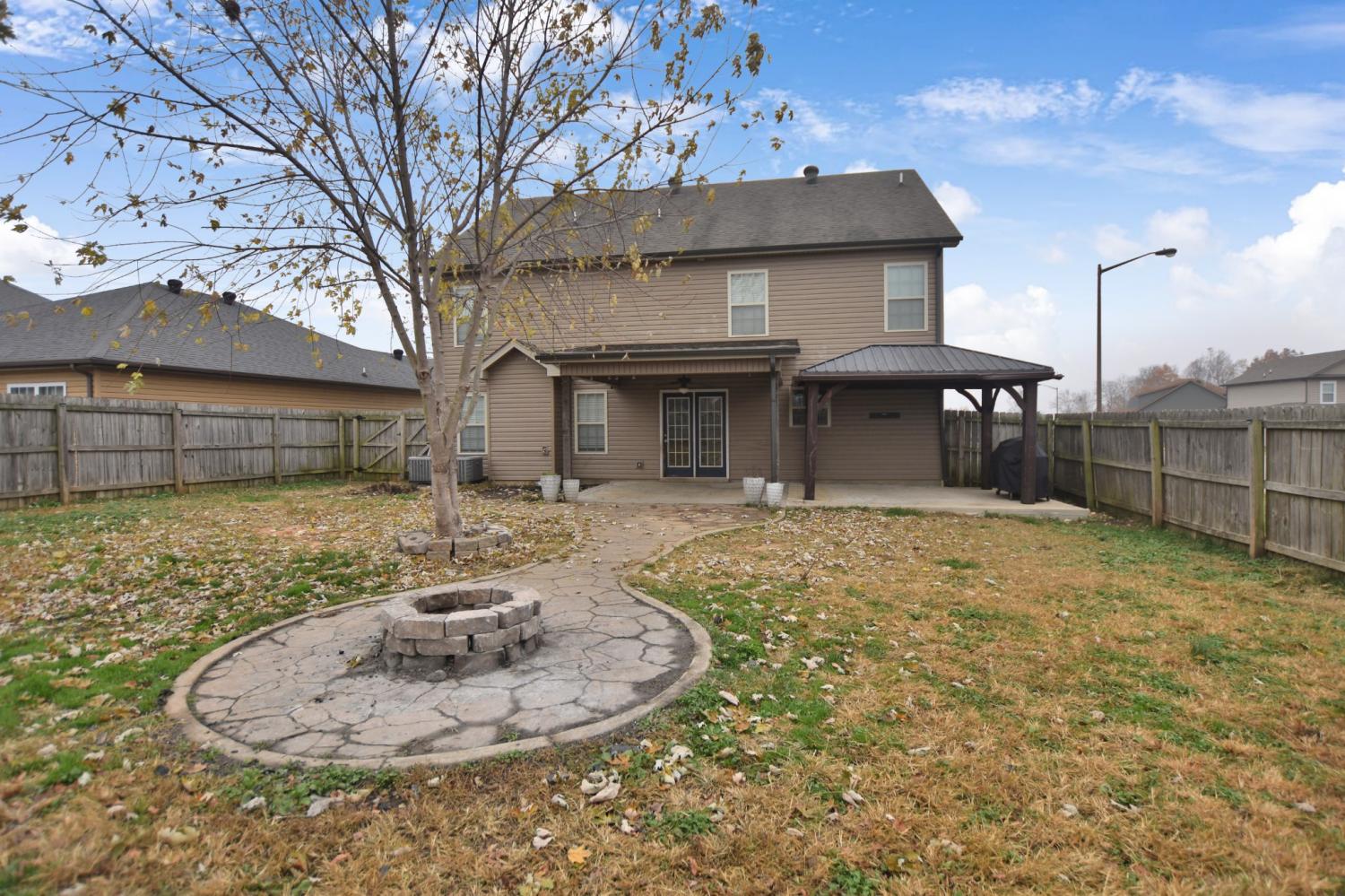 This well maintained four bedroom, two and a half bath home is perfectly situated just minutes from restaurants, shopping, I-24, and more! The first level features beautiful laminate flooring throughout, and a large living room with a stone fireplace that adds warmth and charm! The spacious eat in kitchen offers granite counters and stainless steel appliances, while the formal dining room showcases board and batten accents! The primary suite includes a full bath with a double vanity, soaking tub, and separate shower! All guest bedrooms are located on the second level and are generously sized for comfort and versatility! Outside, enjoy a fantastic backyard complete with an extended covered patio, fire pit, and privacy fence, perfect for relaxing or hosting gatherings! Pet rent applicable.