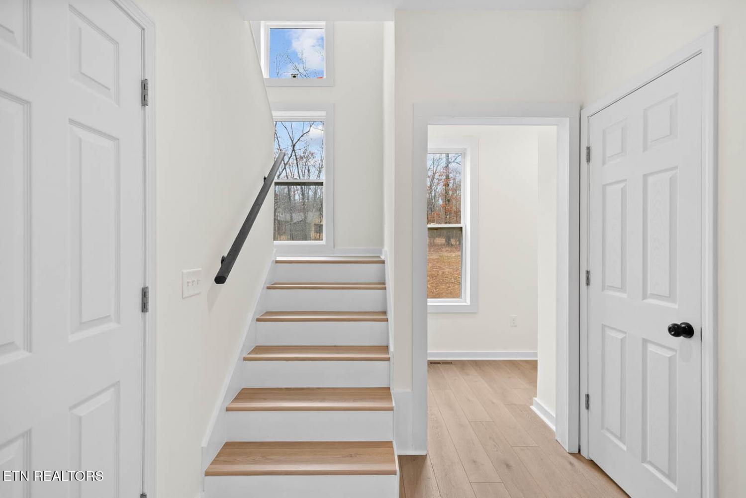 Built in 2022 and thoughtfully improved in 2025, this home now features brand-new quartz countertops and premium LVP flooring, elevating the entire living experience with durability and style. Set on 3.84 wooded acres in the sought-after Cumberland Cove community, this property offers the rare combination of privacy, comfort, and modern living. Step inside to an airy open floor plan, where the spacious living area flows seamlessly into a bright, contemporary kitchen. You'll love the upgraded quartz counters, stainless steel appliances, generous prep space, and convenient adjacent laundry area—perfect for everyday ease. The main-level primary suite provides a peaceful escape, complete with an en-suite bath featuring a step-in shower. Upstairs, you'll find two additional bedrooms, a full bath, and a versatile loft—perfect for guests, a flex space, or a home office. A conveniently placed half bath near the front entry adds extra functionality for everyday living and entertaining. Enjoy serene mornings and evenings on the covered front and back porches, surrounded by nature, abundant wildlife, and the gentle quiet unique to Cumberland Cove. With nearly four acres, there's space for gardening, outdoor hobbies, or simply soaking up the natural beauty around you. Residents of Cumberland Cove enjoy miles of hiking trails, scenic overlooks, picnic areas, and nearby opportunities for fishing and golf—all within a welcoming, active community. With fresh upgrades, a modern design, and room to live the lifestyle you love, this home stands out in Cumberland Cove. Don't wait—book your showing and make it yours.