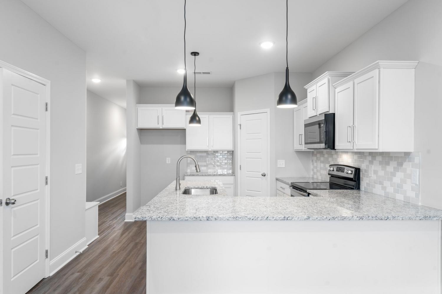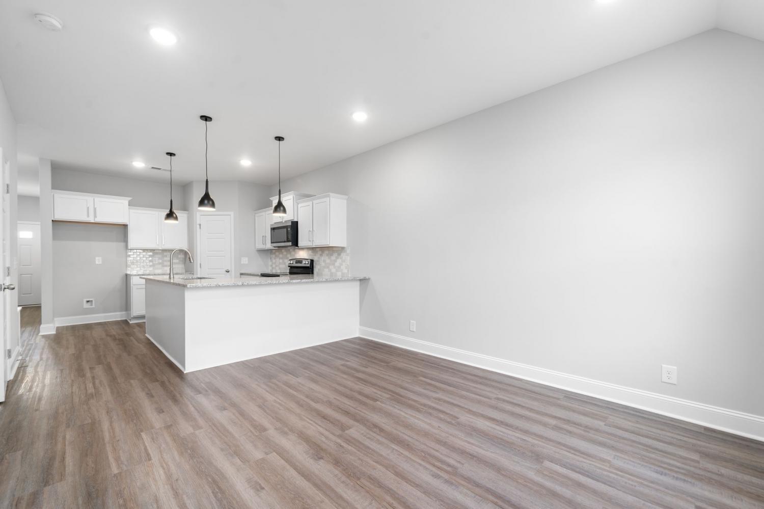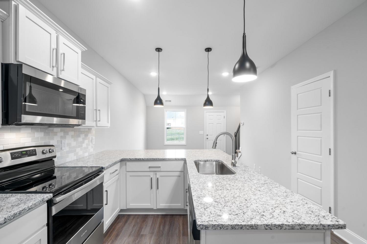 Beautiful townhome close to shopping and Fort Campbell. When entering, there's a built in cubby space for shoes/jackets. This 2-story townhome has 2 upstairs bedrooms with separate vanities and shared bathtub/shower. Downstairs boasts a foyer, laminate flooring, granite countertops in the open concept kitchen/living room. Kitchen appliances included. Laundry area on the second floor. The kitchen is massive with hanging lights over the countertops. Townhome is newer. Only one tenant has lived in the townhome. Nuetral paint color. Large sink in kitchen. For this price, this townhome will go fast!