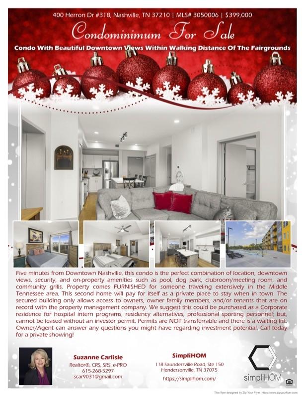 Five minutes from Downtown Nashville, this condo is the perfect combination of location, downtown views, security, clubroom, and swimming pool. This condo is beautifully designed with a 2-bedroom, 2-bathroom layout separated with a common living/kitchen space. Totally furnished and freshly painted for the on-the-move owner that needs a comfortable and easily accessible home in Nashville. The open-concept living space boasts a private terrace with pool views--your own serene spot for morning coffee and evening unwinding. Both bedrooms are furnished with queen-sized beds, chest of drawers, lamp and night stands. Previously promoted as a 90-day minimum rental property with a select clientele exclusively in need of a nice place to live while on temporary assignment in the Nashville community. Clients include Titan players, travel nurses, transplant patients, and that's just a few examples. INVESTOR SLOTS ARE NON-TRANSFERABLE. SELLING AS A FURNISHED UNIT. This could be a convenient 2nd home to anyone that has business and/or family that keeps them in town for 6+ months a year or as a Corporate-Owned property for out-of-town employees. As a secured building, there are only owners that live in this building with a few investor units along with strict guidelines for tenant occupancy. Private showings are available with 24 hour notice.
