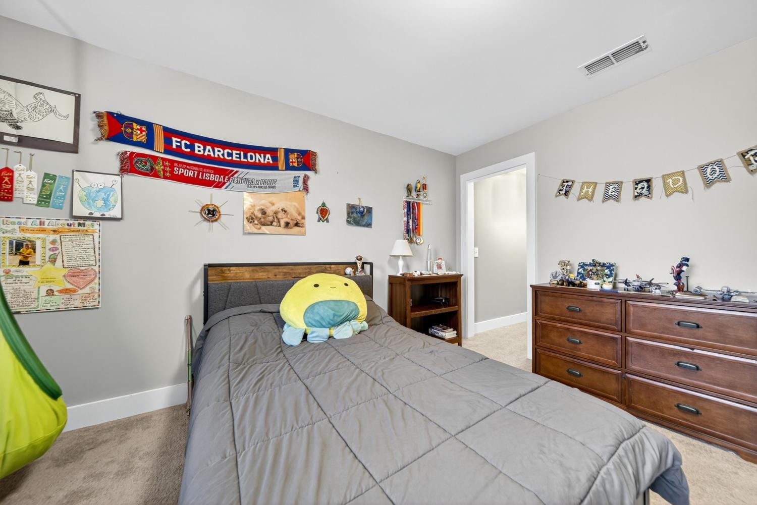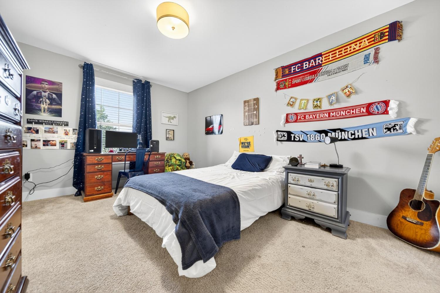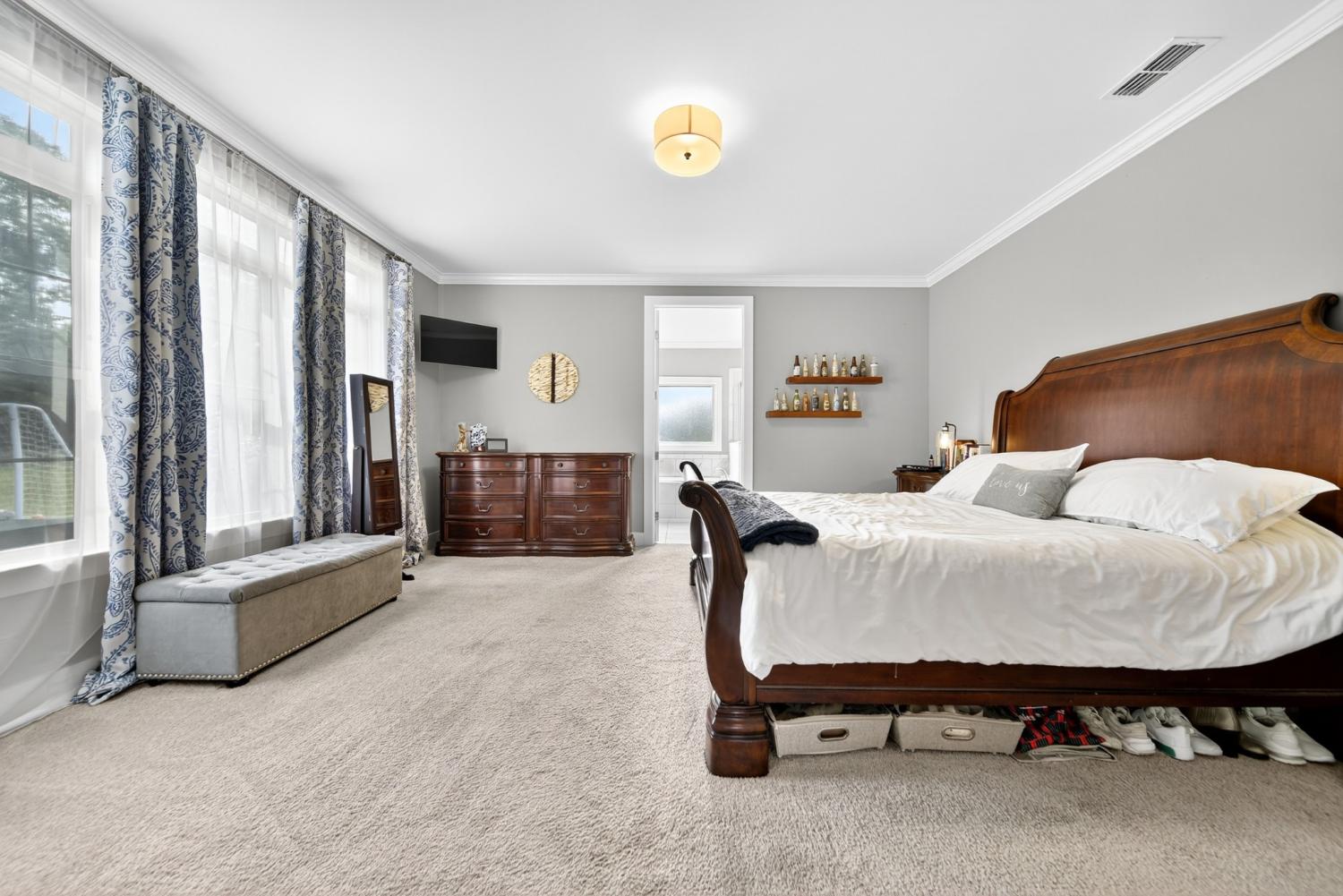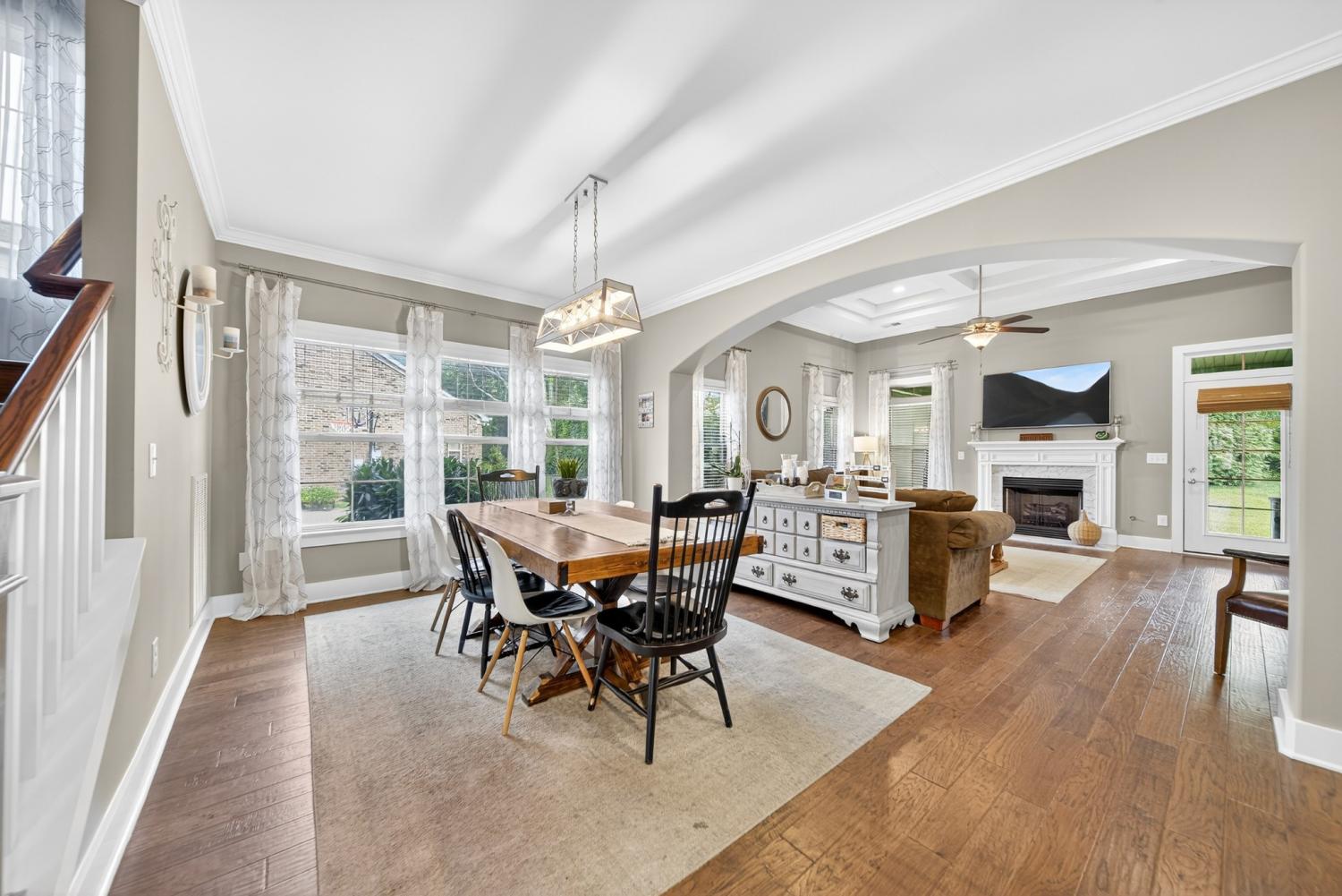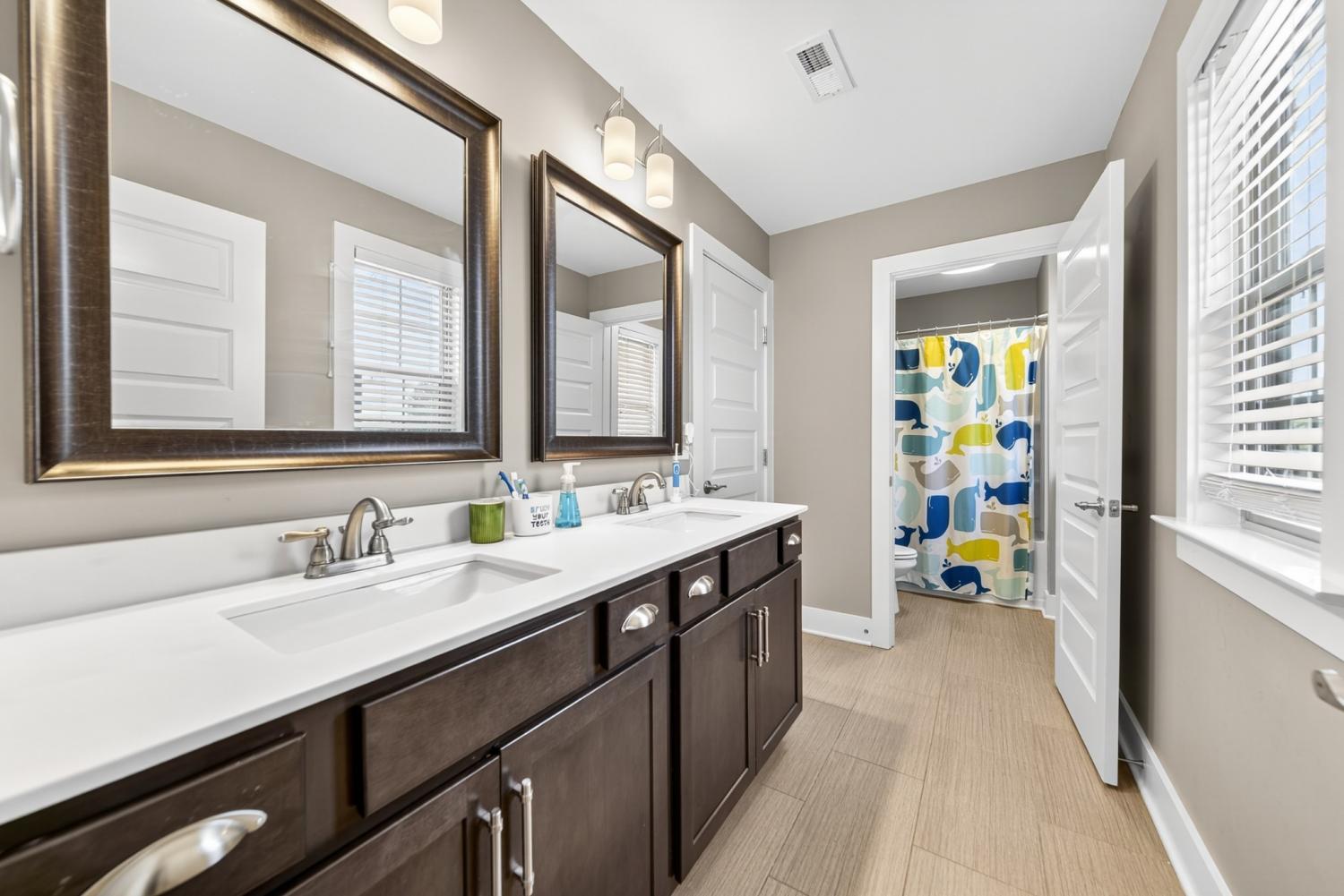 Multi- million dollar lake front - golf course community with amazing Marina being built. Spacious, this 5-bedroom, 4-bath home offers over 3,400 sq ft of stylish living. Features include a gourmet kitchen with granite counters, gas cooktop, and double oven, wood floors, a main-level primary suite, and a large upstairs bonus room. All bedrooms have ensuite bathrooms. Enjoy outdoor living on the covered screened inporch with the plus a patio in your fabulous very private backyard. 3 car side entry garage (lots of driveway parking). Located in the sought-after Foxland Harbor neighborhood with beautiful golf course views and zoned for much sought after award winning schools.