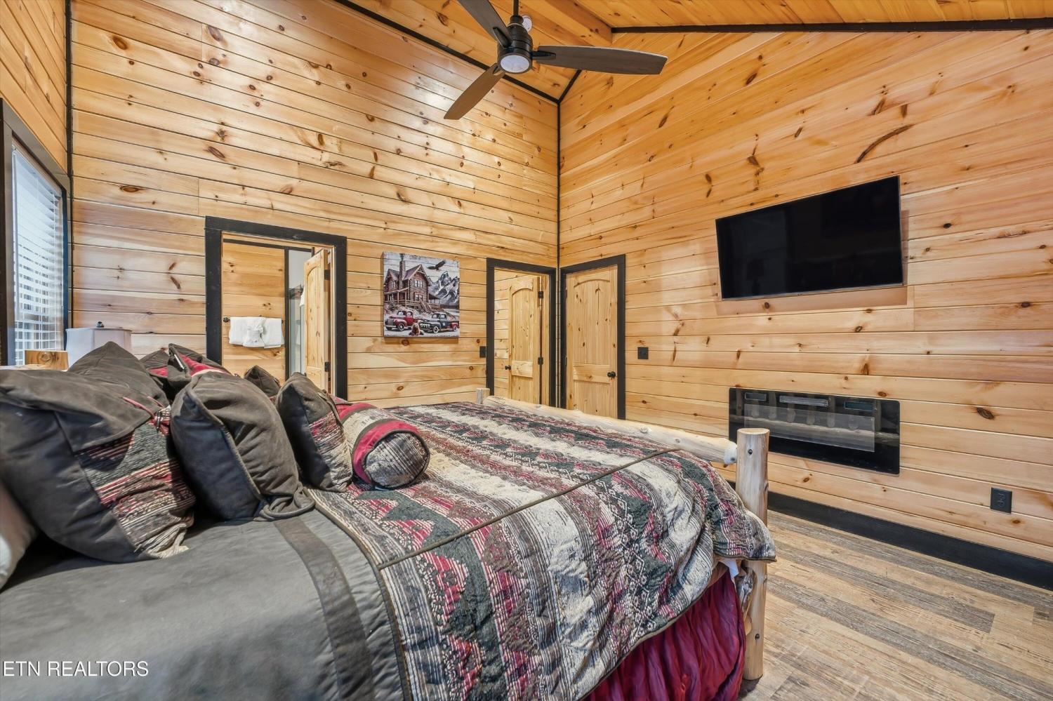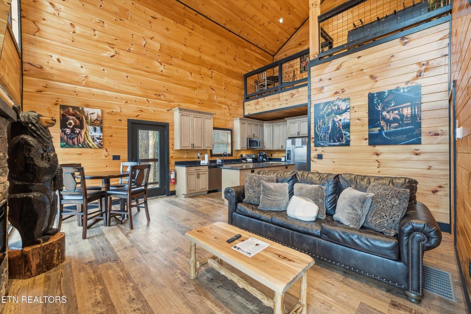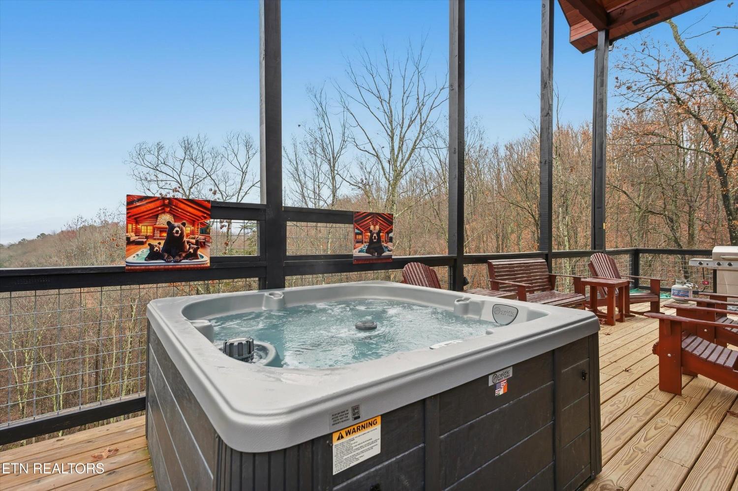 Experience the perfect blend of rustic charm and modern comfort in this stunning 2024-built cabin, ideally located in the desirable Limberlost subdivision of Gatlinburg. Fully furnished and rent-ready, this cabin is not only a beautiful retreat but also a proven investment—gross rental income from October through December reached $21,729! With breathtaking mountain views, easy parking, and a convenient location, it's the ultimate Smoky Mountains getaway. Inside, luxury vinyl plank flooring flows throughout, complemented by warm wood walls and ceilings with sleek black accents that balance a cozy rustic feel with contemporary touches. The living room features vaulted ceilings, abundant natural light, and a fireplace—perfect for relaxing while taking in the spectacular scenery. The primary bedroom also boasts its own fireplace, creating a warm, intimate retreat. The kitchen is thoughtfully designed with ample storage, stainless steel appliances, and plenty of counter space for cooking or entertaining. A loft area overlooks the living space, offering additional seating and uninterrupted views of the mountains. Step outside to enjoy two decks, including a hot tub and an outdoor fireplace—ideal for evening gatherings or morning coffee while soaking in the scenery. A washer and dryer are conveniently included, adding to the home's move-in ready appeal. Don't miss your chance to own a slice of Gatlinburg paradise with incredible views, cozy amenities, and strong rental potential! Call to get more information about the potential to accelerate your depreciation on this property on average 20% on year 1!