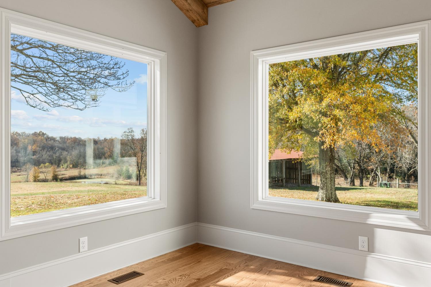 If you're seeking land in an ideal location accompanied by a beautiful home, look no further! This sprawling country estate is almost 9 acres on Hickory Ridge Road, 4800+ sq ft that has been Completely Remodeled down to the studs, double primary bedrooms on the main floor, and a Full Basement! This is the perfect blend of country charm and modern conveniences! 3/4" solid Oak Hardwood floors throughout all living areas (only carpet is in the Rec room over garage), Upgraded Appliances w/ Custom Cabs, 3 pantries, Quartz in all wet areas. Custom closets throughout. 4 car total garages w/ pedestrian doors. No HOA (Bring on the farm animals and go fishing)! Just a few odds and ends to be completed. Check out the video below!