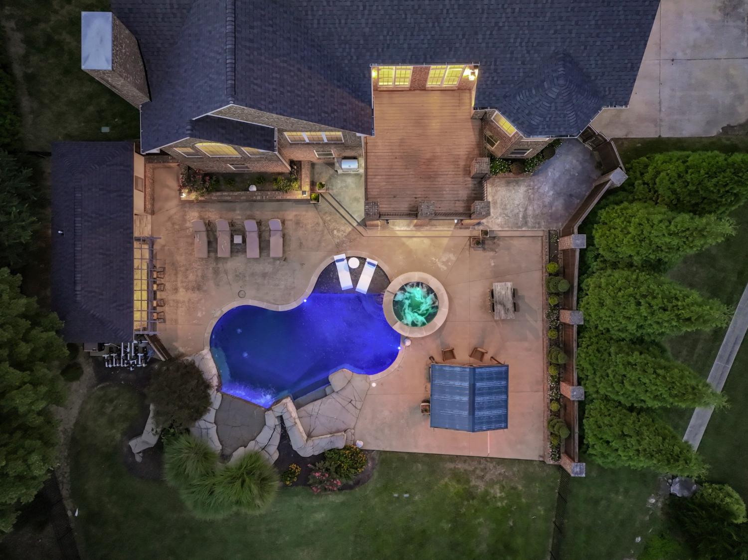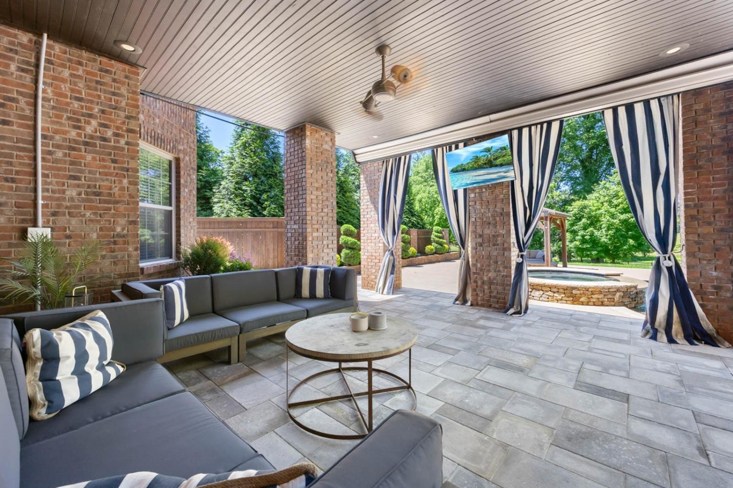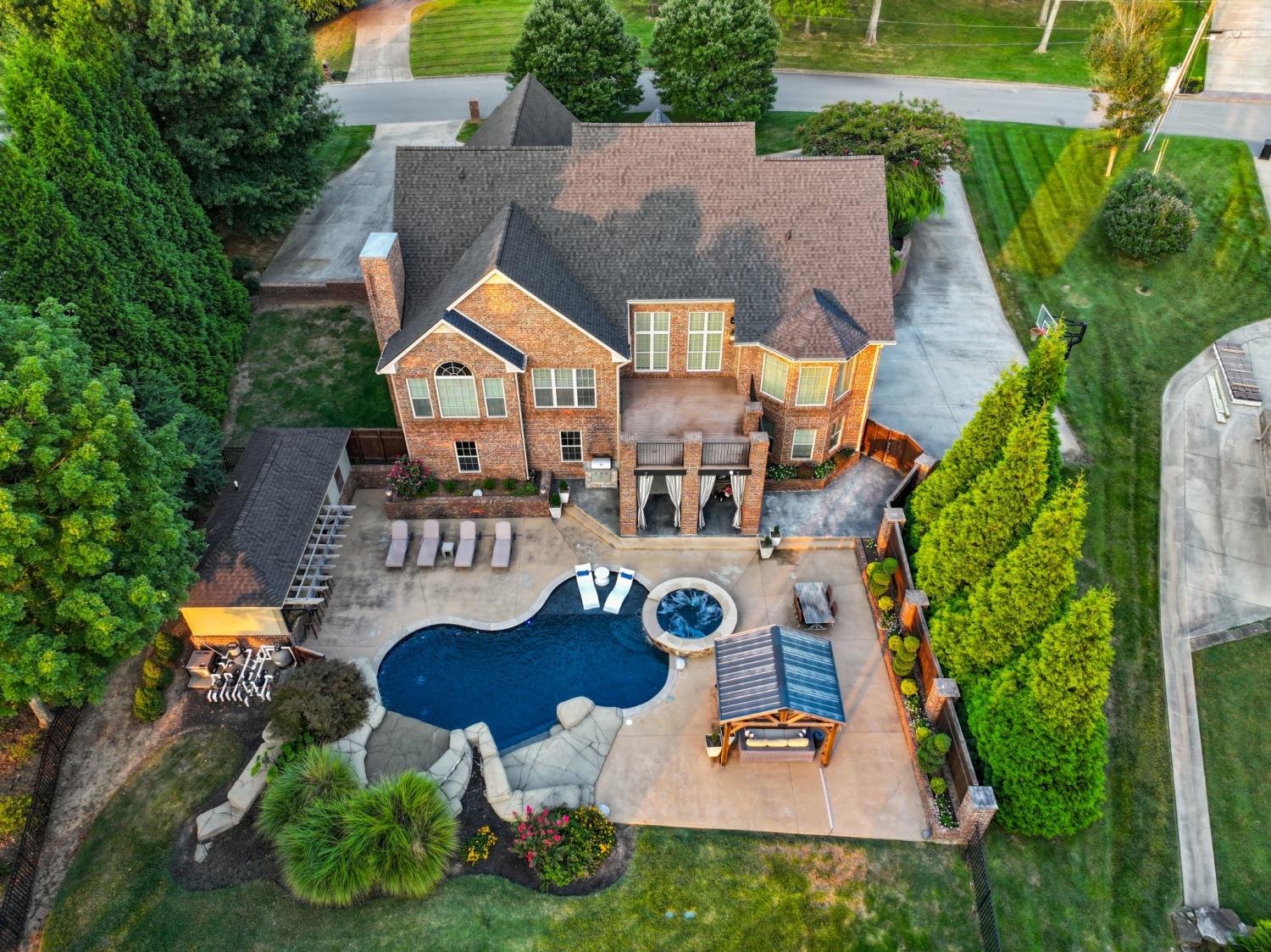 It's not just a home, it's your own private retreat! This gorgeous all-brick home offers over 4,800 sqft of exceptional living space with 4 bedrooms, 4.5 bathrooms, and endless upgrades inside and out. The main level features a formal dining room, spacious living room, updated kitchen with quartz countertops, gas cooktop, pantry, and eat-in area—plus a cozy den, utility room, and three bedrooms including the primary suite. Step into a spa-like retreat in the luxurious primary bathroom, featuring double vanities with sleek finishes, a freestanding soaking tub perfect for unwinding, and a glass-enclosed shower loaded with all the bells and whistles—think rainfall showerhead, body jets, and designer tile.Upstairs, you’ll find an additional bedroom, full bath, and a spacious bonus room. The fully finished basement is ideal for entertaining with a second kitchen, bar, living room, flex room, full bath, and additional dining space. The home is stunning, BUT the real show stopper is the private backyard—no backyard neighbors, a heated saltwater gunite pool, with grotto, gas fire pit, and a pool house complete with half bath and storage. Major updates include a newer roof (2023), whole-home gas generator (2023), gas grill, refinished cool deck, pavers, and Trex decking (2024). This home is a rare blend of luxury, function, and comfort—perfect for everyday living and unforgettable gatherings, tucked away right in the heart of Clarksville.