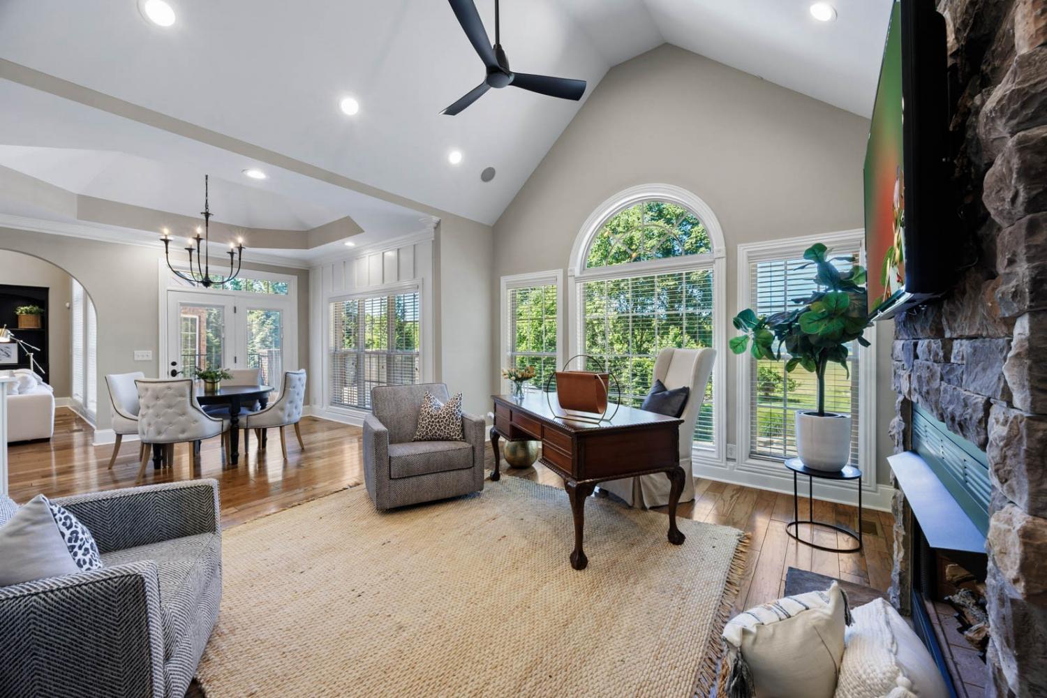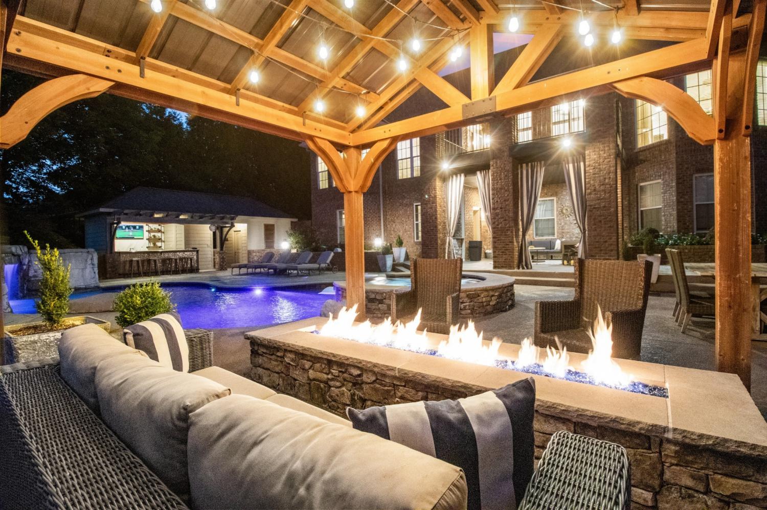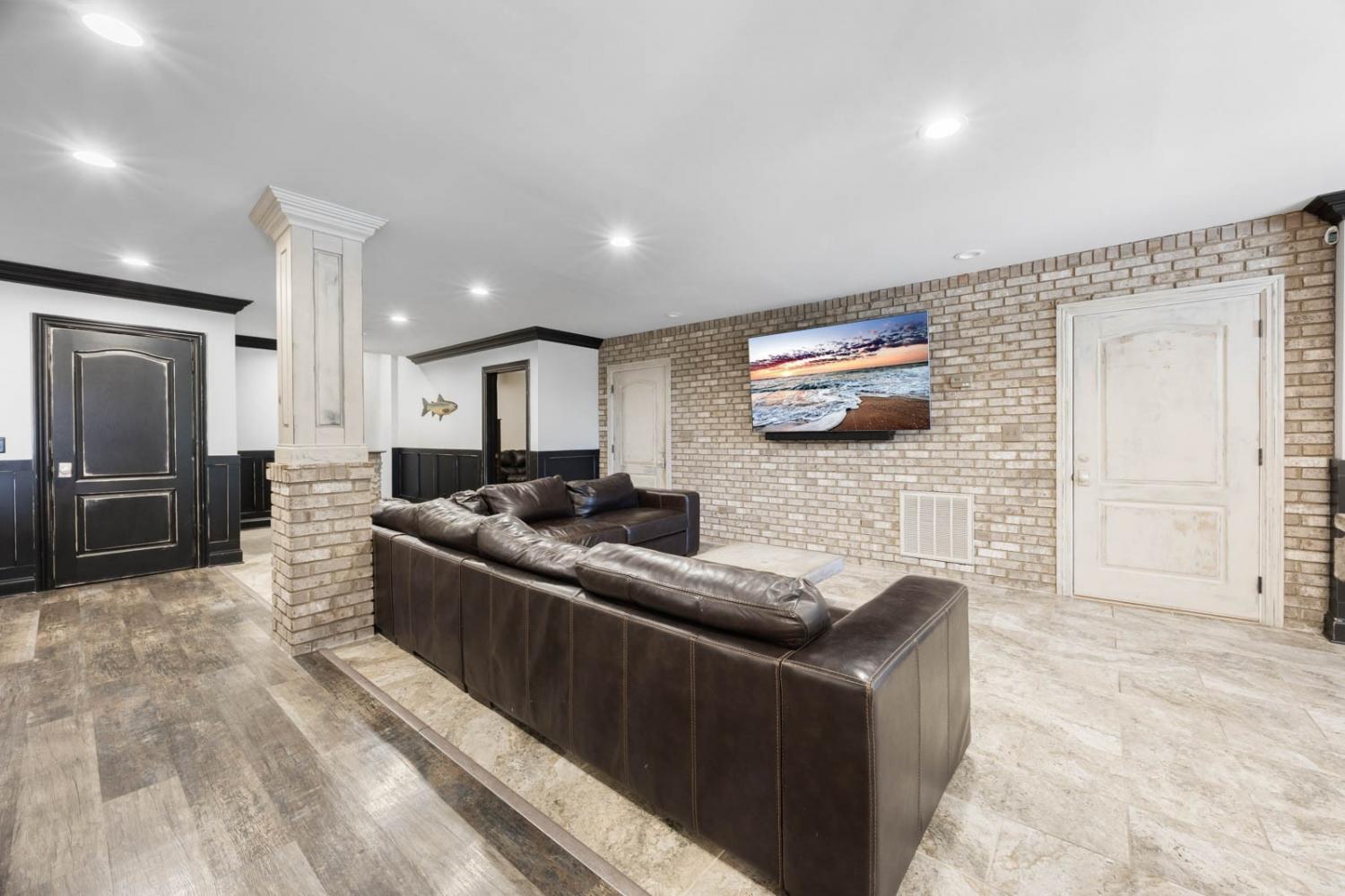 It's not just a home, it's your own private retreat! This gorgeous all-brick home offers over 4,800 sqft of exceptional living space with 4 bedrooms, 4.5 bathrooms, and endless upgrades inside and out. The main level features a formal dining room, spacious living room, updated kitchen with quartz countertops, gas cooktop, pantry, and eat-in area—plus a cozy den, utility room, and three bedrooms including the primary suite. Step into a spa-like retreat in the luxurious primary bathroom, featuring double vanities with sleek finishes, a freestanding soaking tub perfect for unwinding, and a glass-enclosed shower loaded with all the bells and whistles—think rainfall showerhead, body jets, and designer tile.Upstairs, you’ll find an additional bedroom, full bath, and a spacious bonus room. The fully finished basement is ideal for entertaining with a second kitchen, bar, living room, flex room, full bath, and additional dining space. The home is stunning, BUT the real show stopper is the private backyard—no backyard neighbors, a heated saltwater gunite pool, with grotto, gas fire pit, and a pool house complete with half bath and storage. Major updates include a newer roof (2023), whole-home gas generator (2023), gas grill, refinished cool deck, pavers, and Trex decking (2024). This home is a rare blend of luxury, function, and comfort—perfect for everyday living and unforgettable gatherings, tucked away right in the heart of Clarksville.