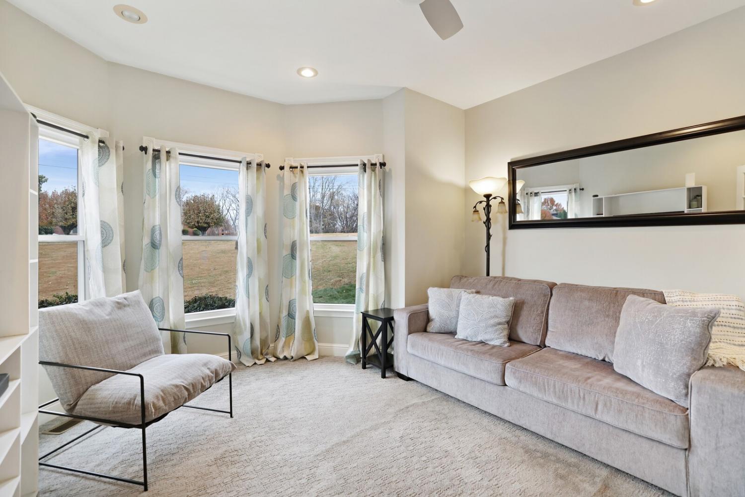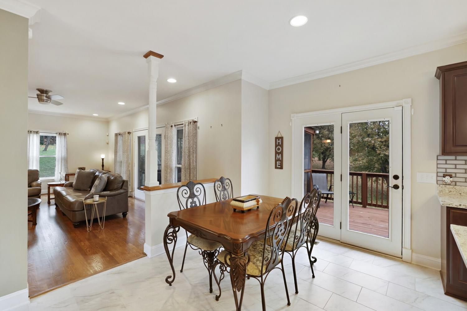 Beautifully updated all-brick home on 1.44 private acres in highly desirable Mount Juliet! This spacious 3,612 sq ft property features a welcoming front porch, an impressive two-story foyer with new hardwood floors, and a dramatic staircase. The main level includes a light-filled living room with soaring ceilings, custom built-ins, hardwood floors, and a wall of windows; an elegant dining room with French doors; a private office; a fully remodeled kitchen (2025) with new cabinets, granite, tile flooring, stainless appliances, and large island; breakfast nook with deck access; cozy family room with gas fireplace; updated full bath; and large laundry room with laundry chute. Upstairs, the oversized primary suite offers LVP flooring, reading nook, walk-in closet, and a renovated bath with new double vanity, jetted tub, stand-up shower with seating, and tile flooring. Bedrooms 2 and 3 feature new carpet, ceiling fans, and backyard views, with an updated hall bath nearby. The full walkout basement provides exceptional flexibility with 3 large flex spaces (ideal for guest suite, gym, media room, teen space, hobby room, or office), a full bath, and a concrete-block storm shelter/safe place. Epoxy floors throughout and direct access to the extra-deep rear-entry 2-car garage. Major updates include: windows (approx. 2016), upstairs HVAC (2017), water heater (2025), new hardwood floors, new carpet (BR 2 & 3), and kitchen renovation (2025). Enjoy peaceful outdoor living with a screened-in porch and open deck overlooking the private acreage. Fantastic location: minutes to new dining and retail, 1 miles to Mt. Juliet Elementary, 2 miles to Mt. Juliet Middle, 1.3 miles to Green Hill High (opened 2020), and approx. 20 minutes to BNA and Downtown Nashville. A rare opportunity for privacy, convenience, updates, and space — all in one! Home Sweet Home! Up to 1% lender credit on the loan amount when buyer uses Seller's Preferred Lender.