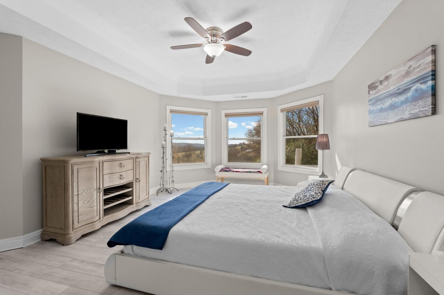 STUNNING VIEWS!!! FABULOUS INSIDE AND OUT and a RARE FIND in sought after Hickory Hills!! Renovated home with tasteful finishes throughout and picturesque long distance views of the rolling hilltops~Flexible living spaces with beautifully updated modern kitchen and baths~Fresh neutral interior and new LVP flooring upstairs~Private primary suite with spa worthy bath~Huge rec room~Awesome outdoor living with front porch to enjoy your morning coffee while watching the sunrise over the hilltops, covered patio to entertain or relax while listening to the calming water feature, or unwind year round in the swim spa~Huge garage with workshop and storage~Convenient to shopping, dining-- and 4 miles to interstate and perfect for commuter looking for a quiet private location~Gorgeous views from every window and home to abundance of wildlife~You have found your slice of paradise!!