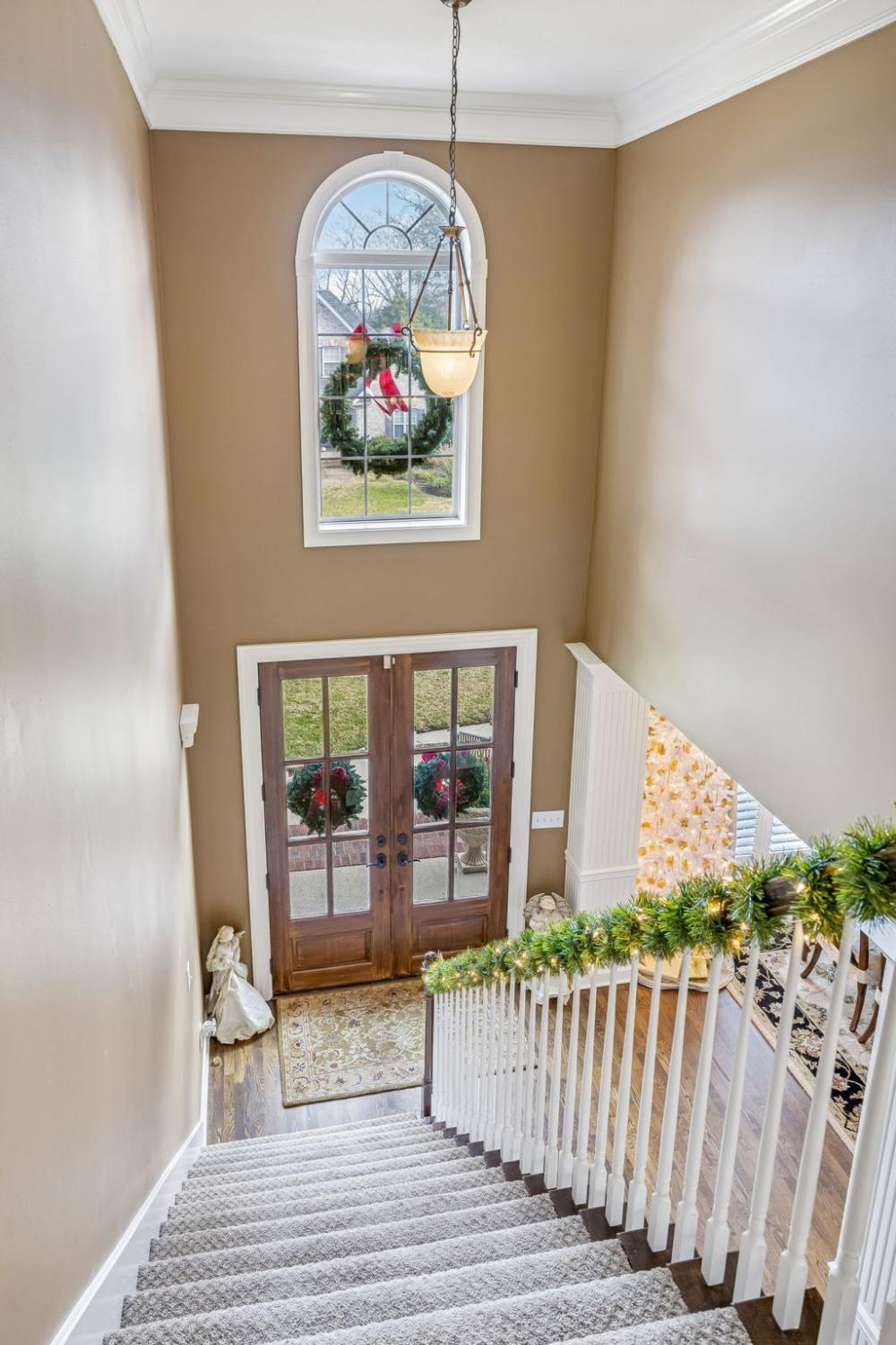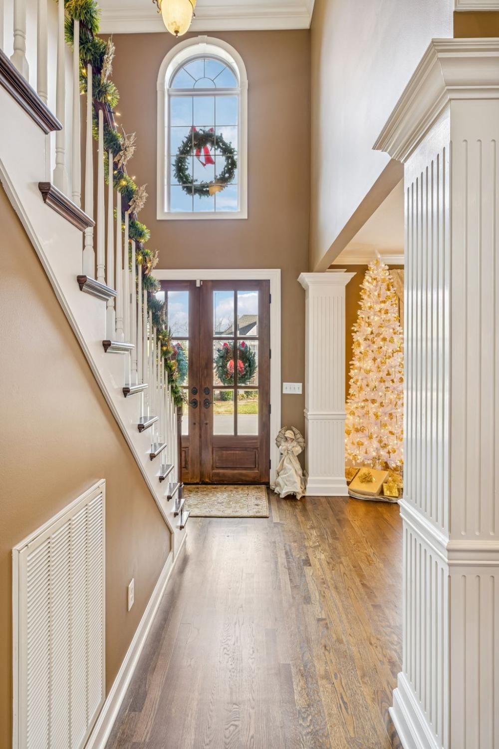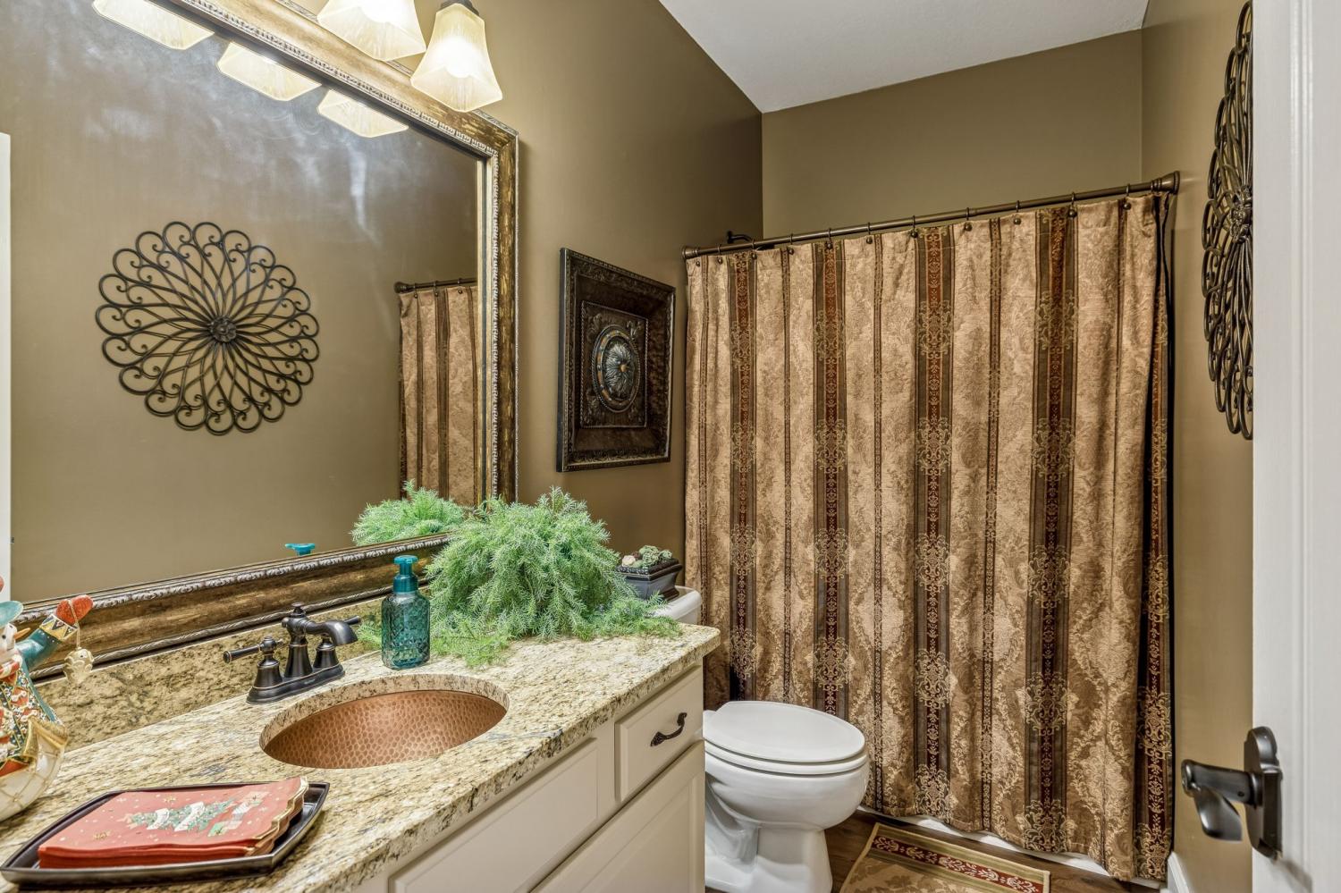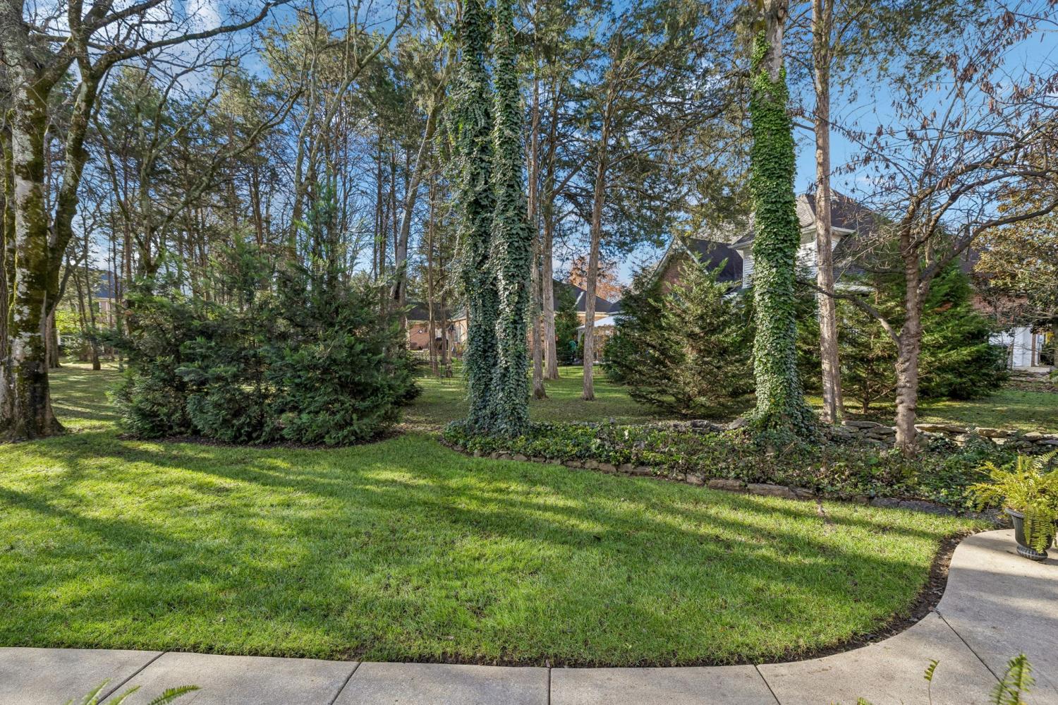 Set on almost half an acre with beautiful landscaping & towering trees, this elegantly updated home blends high-end finishes with effortless comfort in one of the area's most desirable locations! Step into a grand 2 story living room with high ceilings & fresh décor, flowing across newly sanded & stained hardwoods after removing all downstairs carpet & replacing every lower-level floor with hardwood, plus new flooring in the kitchen, laundry room, & both downstairs baths. The fully remodeled eat-in kitchen features a center island, granite counters, customized cabinetry, & all new appliances from Ferguson's, while the remodeled bathrooms showcase hand-hammered copper sinks & all new plumbing fixtures, including a stunning master bath transformation. The main floor offers a spacious master suite with two walk-in closets, plus an additional bedroom with its own full bath. Upstairs includes two bedrooms, a full bath & half bath, & brand-new carpet, along with a large bonus room over the garage with its own half bath. Major upgrades include a new roof, fully encapsulated crawlspace, gutter filters, newer heating & air units, a newer water heater, replaced smoke & carbon monoxide detectors, custom drapes, full interior repaint, solid wood shutters on all windows & secondary doors, all new exterior wall lighting, & redesigned exterior accent lighting with brass fixtures & underground wiring installed by TN Lighting. The attached side-entry 2 car garage has been rebuilt with added outlets, fluorescent lighting, & fresh paint. Outside, enjoy a lush yard supported by a 10-station irrigation system fed by its own well, along with regular professional servicing for HVAC, plumbing, electrical, pest control, seeding, & lawn fertilizing. A spacious 2-level patio completes this inviting outdoor space, offering the perfect setting for grilling & relaxation. This meticulously maintained home offers exceptional storage, thoughtful upgrades, & high-quality care throughout!