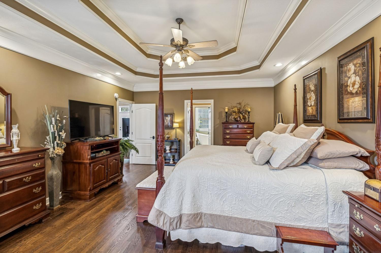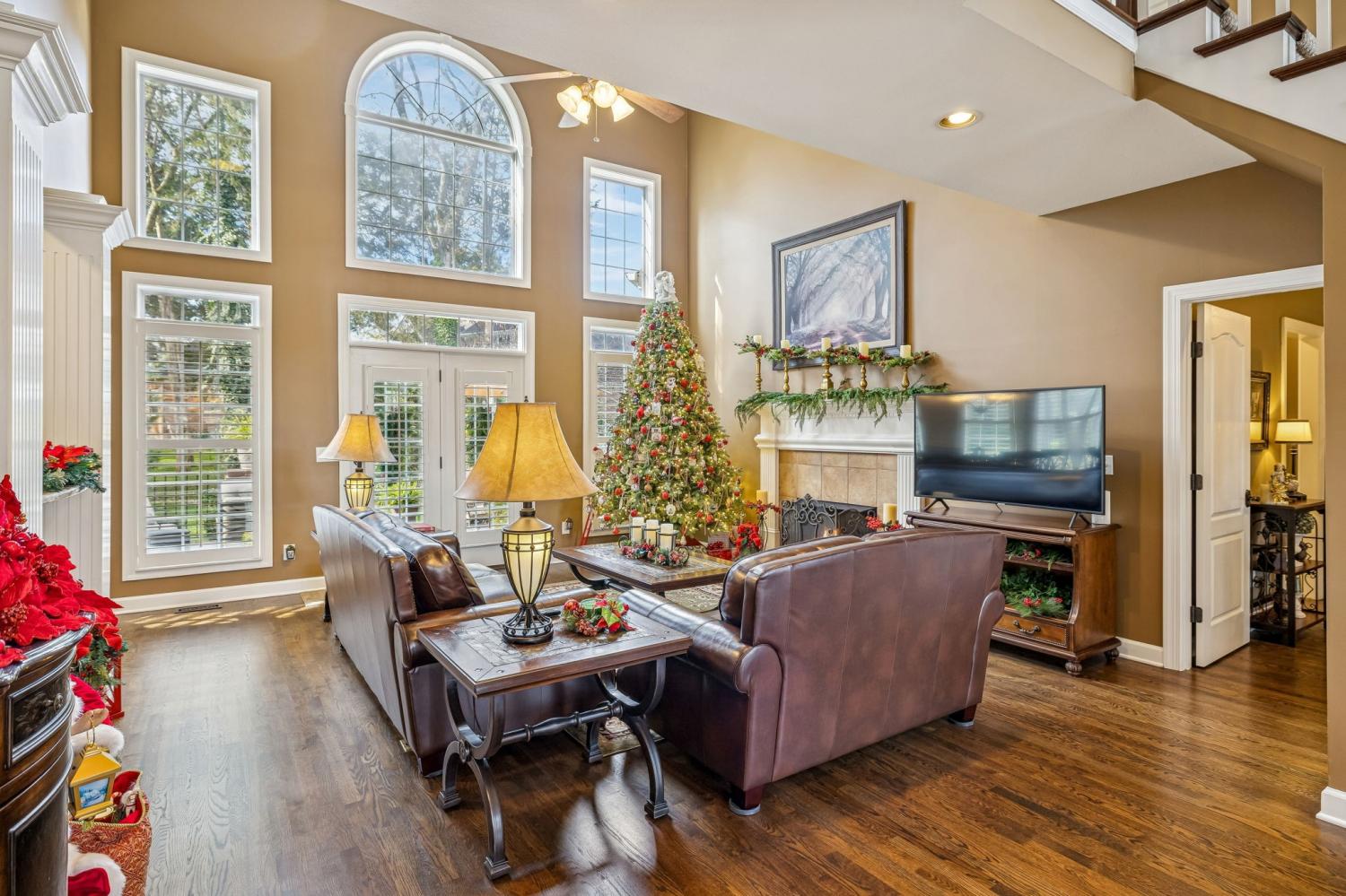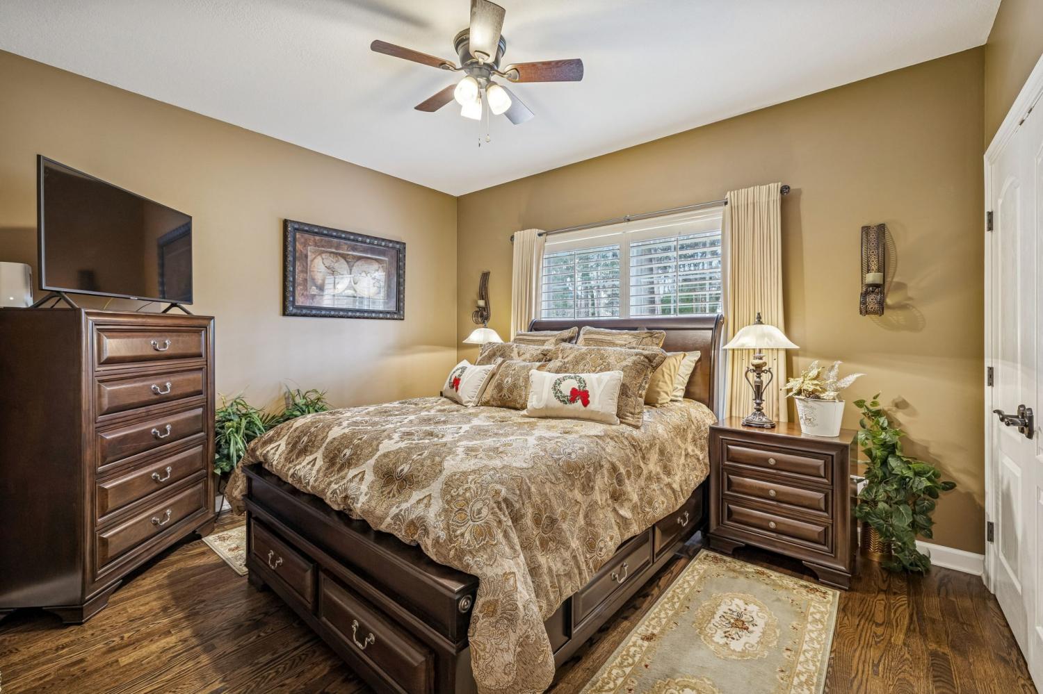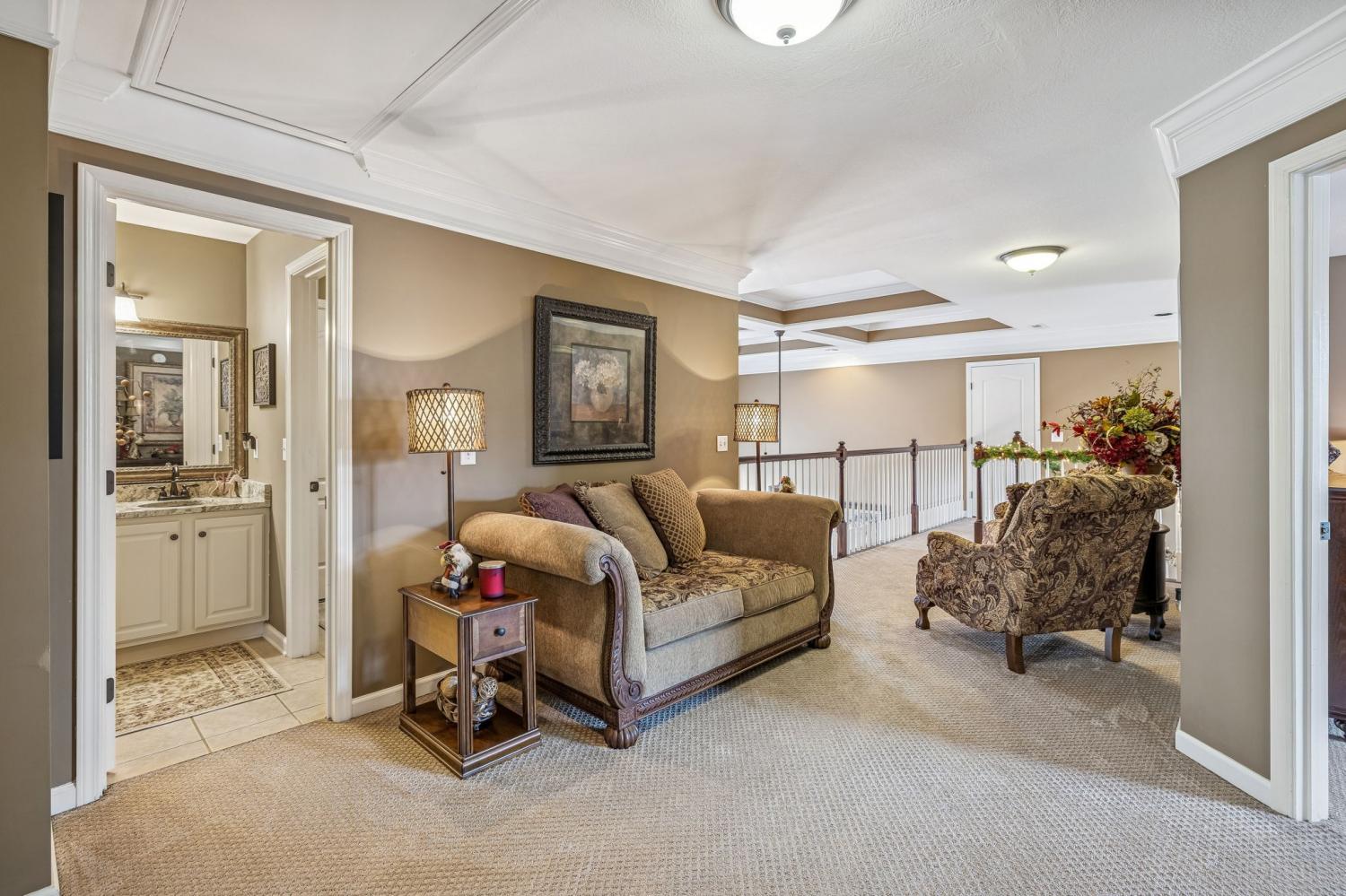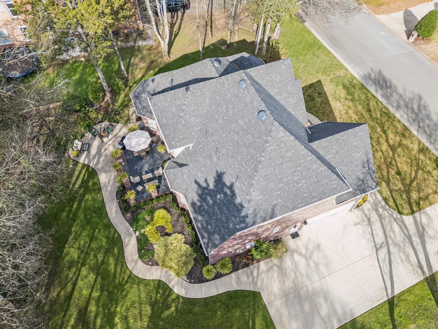 Set on almost half an acre with beautiful landscaping & towering trees, this elegantly updated home blends high-end finishes with effortless comfort in one of the area's most desirable locations! Step into a grand 2 story living room with high ceilings & fresh décor, flowing across newly sanded & stained hardwoods after removing all downstairs carpet & replacing every lower-level floor with hardwood, plus new flooring in the kitchen, laundry room, & both downstairs baths. The fully remodeled eat-in kitchen features a center island, granite counters, customized cabinetry, & all new appliances from Ferguson's, while the remodeled bathrooms showcase hand-hammered copper sinks & all new plumbing fixtures, including a stunning master bath transformation. The main floor offers a spacious master suite with two walk-in closets, plus an additional bedroom with its own full bath. Upstairs includes two bedrooms, a full bath & half bath, & brand-new carpet, along with a large bonus room over the garage with its own half bath. Major upgrades include a new roof, fully encapsulated crawlspace, gutter filters, newer heating & air units, a newer water heater, replaced smoke & carbon monoxide detectors, custom drapes, full interior repaint, solid wood shutters on all windows & secondary doors, all new exterior wall lighting, & redesigned exterior accent lighting with brass fixtures & underground wiring installed by TN Lighting. The attached side-entry 2 car garage has been rebuilt with added outlets, fluorescent lighting, & fresh paint. Outside, enjoy a lush yard supported by a 10-station irrigation system fed by its own well, along with regular professional servicing for HVAC, plumbing, electrical, pest control, seeding, & lawn fertilizing. A spacious 2-level patio completes this inviting outdoor space, offering the perfect setting for grilling & relaxation. This meticulously maintained home offers exceptional storage, thoughtful upgrades, & high-quality care throughout!