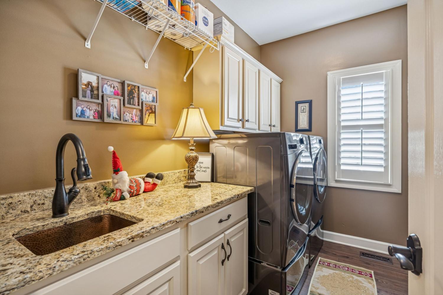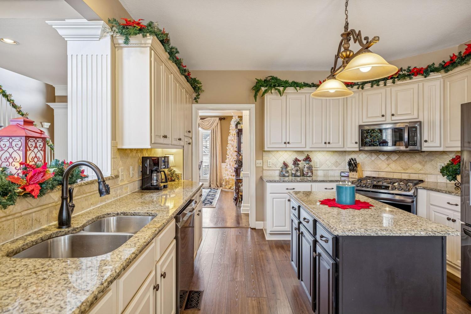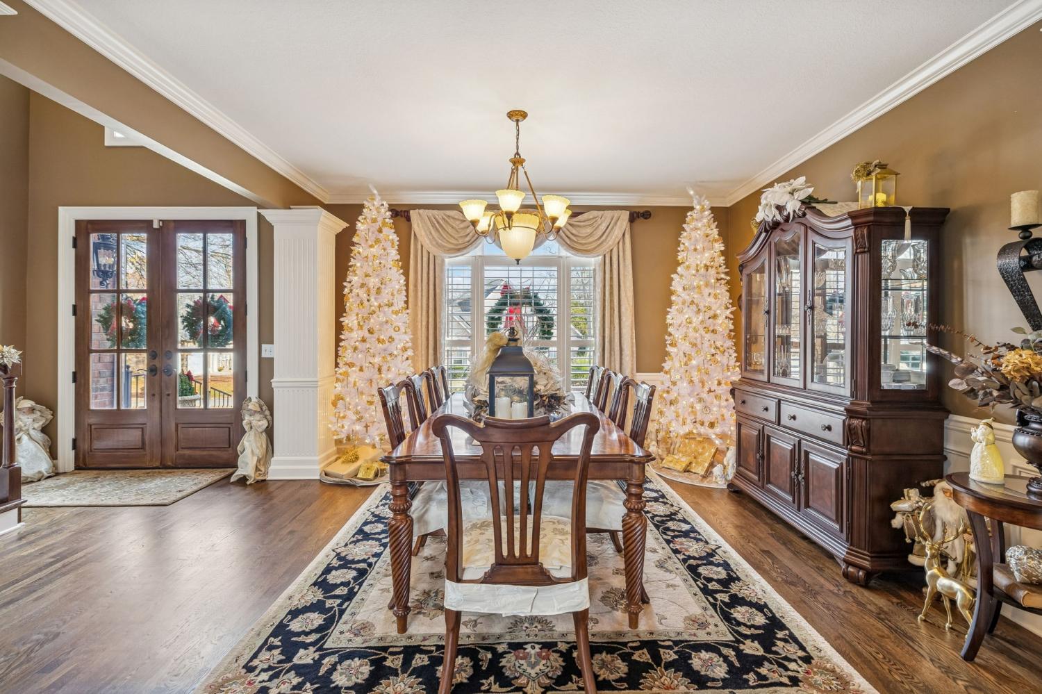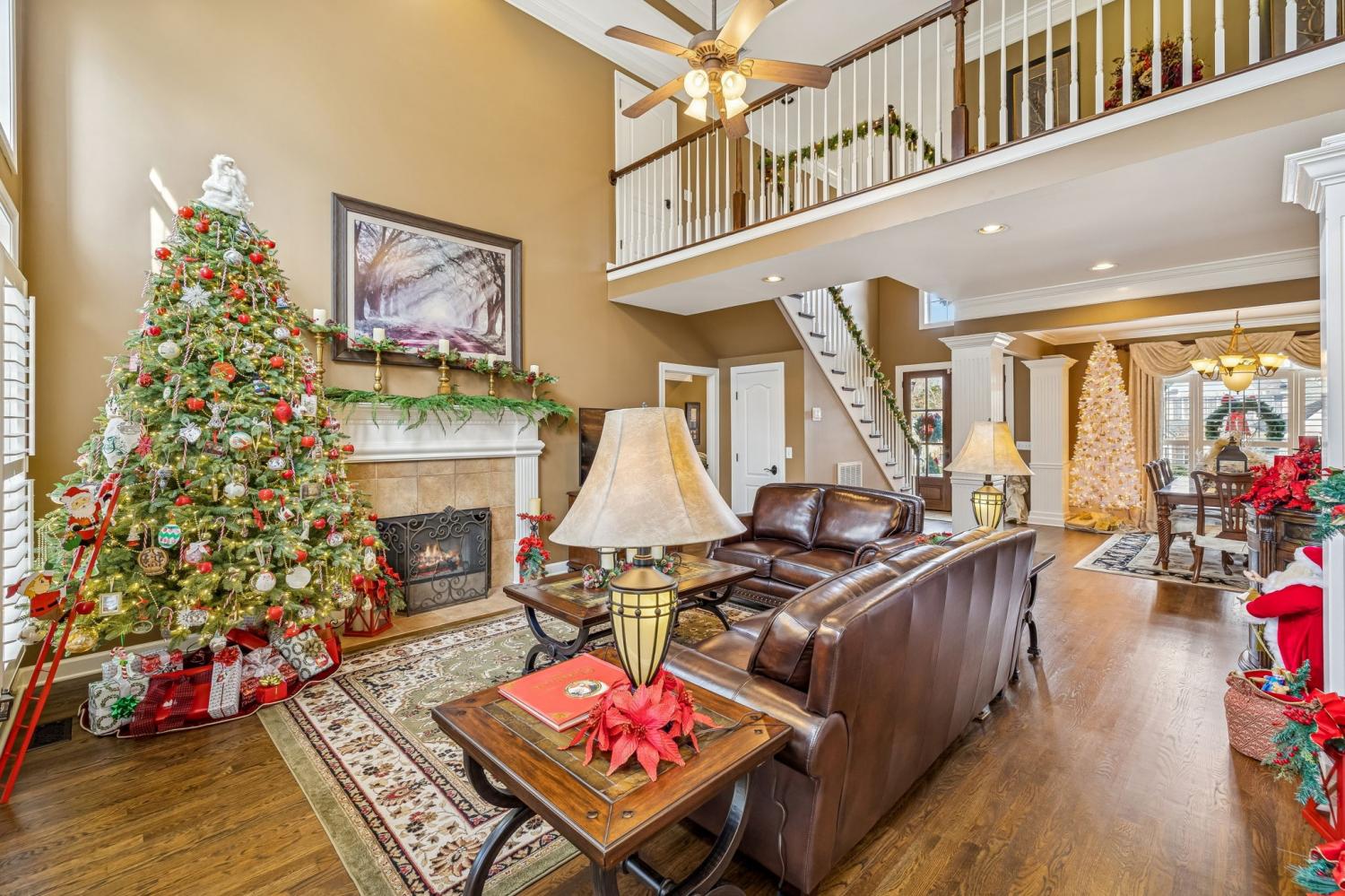 Set on almost half an acre with beautiful landscaping & towering trees, this elegantly updated home blends high-end finishes with effortless comfort in one of the area's most desirable locations! Step into a grand 2 story living room with high ceilings & fresh décor, flowing across newly sanded & stained hardwoods after removing all downstairs carpet & replacing every lower-level floor with hardwood, plus new flooring in the kitchen, laundry room, & both downstairs baths. The fully remodeled eat-in kitchen features a center island, granite counters, customized cabinetry, & all new appliances from Ferguson's, while the remodeled bathrooms showcase hand-hammered copper sinks & all new plumbing fixtures, including a stunning master bath transformation. The main floor offers a spacious master suite with two walk-in closets, plus an additional bedroom with its own full bath. Upstairs includes two bedrooms, a full bath & half bath, & brand-new carpet, along with a large bonus room over the garage with its own half bath. Major upgrades include a new roof, fully encapsulated crawlspace, gutter filters, newer heating & air units, a newer water heater, replaced smoke & carbon monoxide detectors, custom drapes, full interior repaint, solid wood shutters on all windows & secondary doors, all new exterior wall lighting, & redesigned exterior accent lighting with brass fixtures & underground wiring installed by TN Lighting. The attached side-entry 2 car garage has been rebuilt with added outlets, fluorescent lighting, & fresh paint. Outside, enjoy a lush yard supported by a 10-station irrigation system fed by its own well, along with regular professional servicing for HVAC, plumbing, electrical, pest control, seeding, & lawn fertilizing. A spacious 2-level patio completes this inviting outdoor space, offering the perfect setting for grilling & relaxation. This meticulously maintained home offers exceptional storage, thoughtful upgrades, & high-quality care throughout!