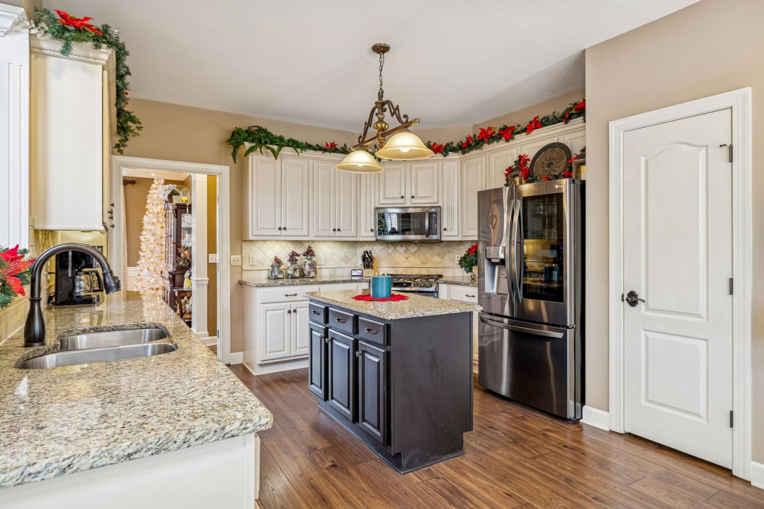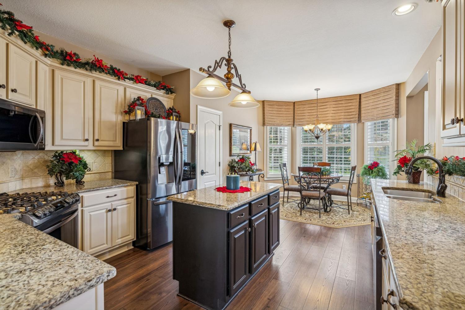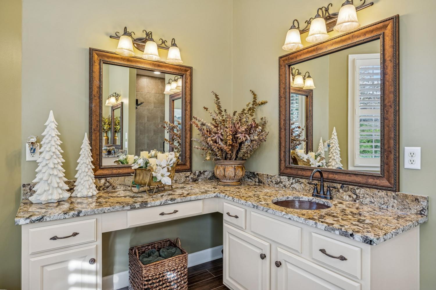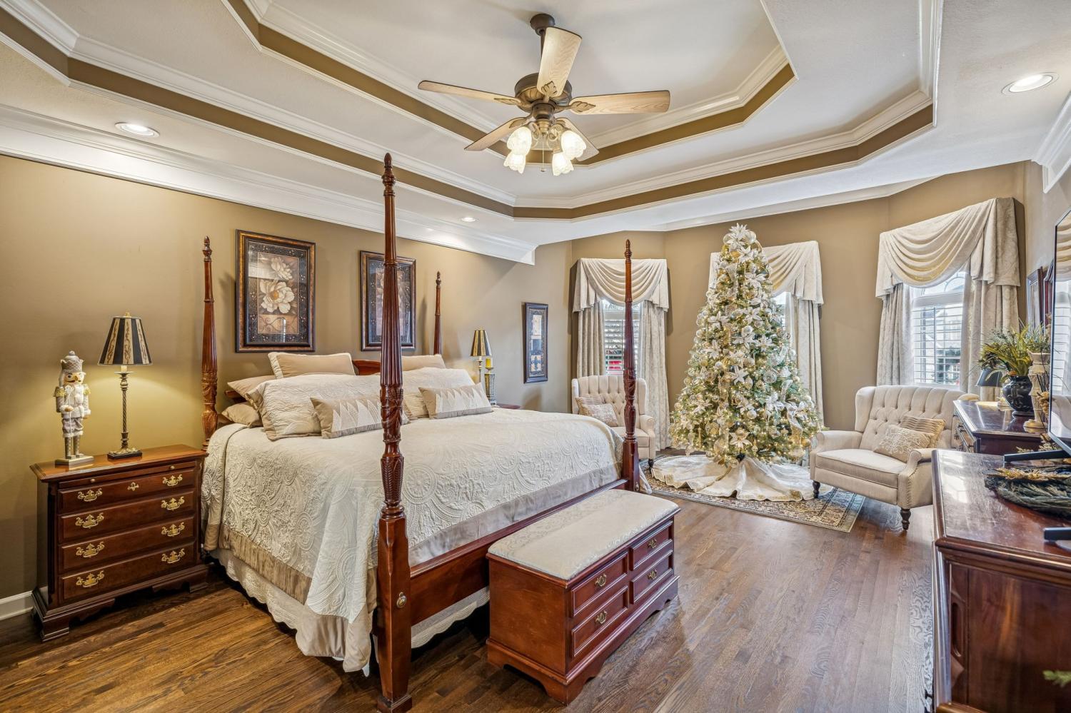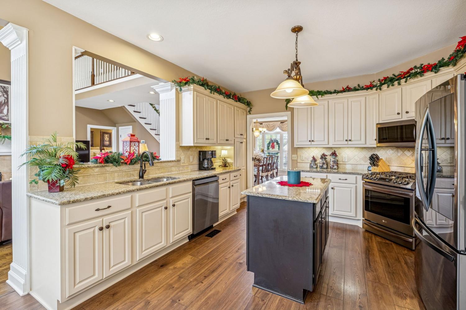 Set on almost half an acre with beautiful landscaping & towering trees, this elegantly updated home blends high-end finishes with effortless comfort in one of the area's most desirable locations! Step into a grand 2 story living room with high ceilings & fresh décor, flowing across newly sanded & stained hardwoods after removing all downstairs carpet & replacing every lower-level floor with hardwood, plus new flooring in the kitchen, laundry room, & both downstairs baths. The fully remodeled eat-in kitchen features a center island, granite counters, customized cabinetry, & all new appliances from Ferguson's, while the remodeled bathrooms showcase hand-hammered copper sinks & all new plumbing fixtures, including a stunning master bath transformation. The main floor offers a spacious master suite with two walk-in closets, plus an additional bedroom with its own full bath. Upstairs includes two bedrooms, a full bath & half bath, & brand-new carpet, along with a large bonus room over the garage with its own half bath. Major upgrades include a new roof, fully encapsulated crawlspace, gutter filters, newer heating & air units, a newer water heater, replaced smoke & carbon monoxide detectors, custom drapes, full interior repaint, solid wood shutters on all windows & secondary doors, all new exterior wall lighting, & redesigned exterior accent lighting with brass fixtures & underground wiring installed by TN Lighting. The attached side-entry 2 car garage has been rebuilt with added outlets, fluorescent lighting, & fresh paint. Outside, enjoy a lush yard supported by a 10-station irrigation system fed by its own well, along with regular professional servicing for HVAC, plumbing, electrical, pest control, seeding, & lawn fertilizing. A spacious 2-level patio completes this inviting outdoor space, offering the perfect setting for grilling & relaxation. This meticulously maintained home offers exceptional storage, thoughtful upgrades, & high-quality care throughout!