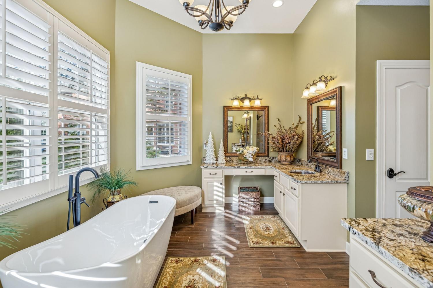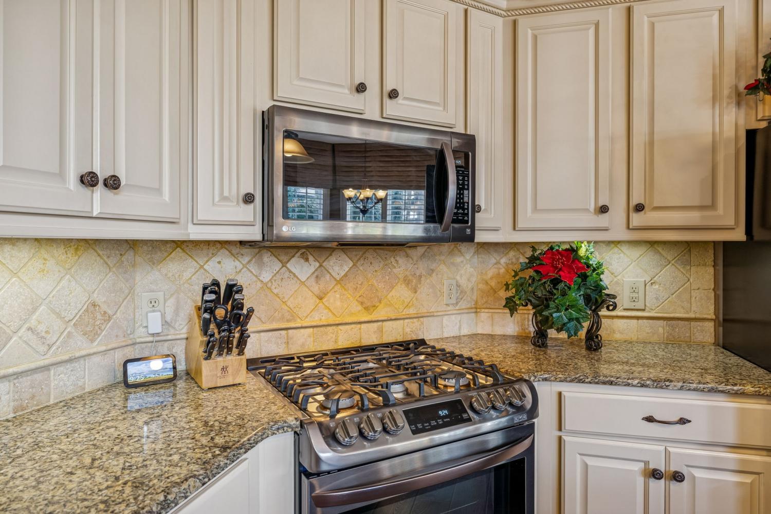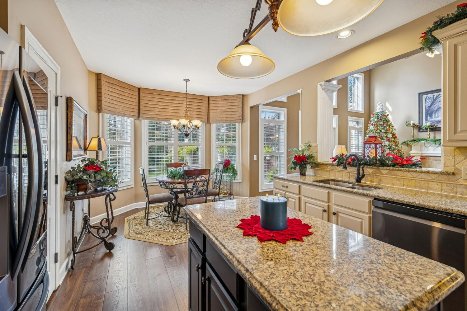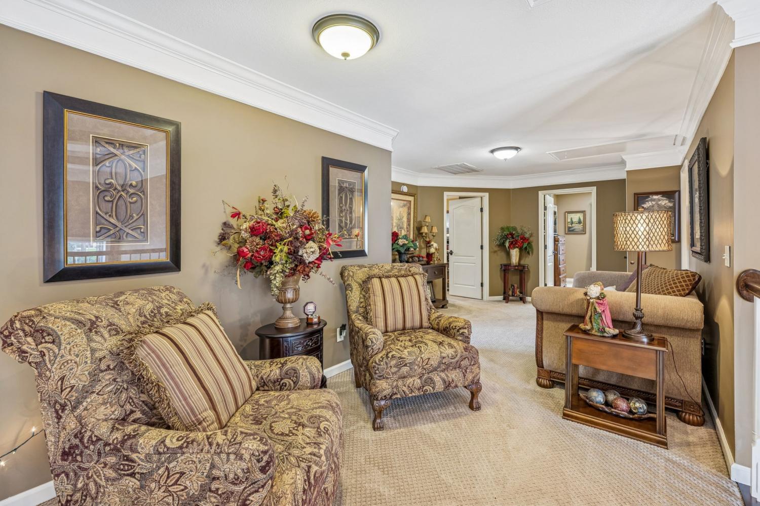 Set on almost half an acre with beautiful landscaping & towering trees, this elegantly updated home blends high-end finishes with effortless comfort in one of the area's most desirable locations! Step into a grand 2 story living room with high ceilings & fresh décor, flowing across newly sanded & stained hardwoods after removing all downstairs carpet & replacing every lower-level floor with hardwood, plus new flooring in the kitchen, laundry room, & both downstairs baths. The fully remodeled eat-in kitchen features a center island, granite counters, customized cabinetry, & all new appliances from Ferguson's, while the remodeled bathrooms showcase hand-hammered copper sinks & all new plumbing fixtures, including a stunning master bath transformation. The main floor offers a spacious master suite with two walk-in closets, plus an additional bedroom with its own full bath. Upstairs includes two bedrooms, a full bath & half bath, & brand-new carpet, along with a large bonus room over the garage with its own half bath. Major upgrades include a new roof, fully encapsulated crawlspace, gutter filters, newer heating & air units, a newer water heater, replaced smoke & carbon monoxide detectors, custom drapes, full interior repaint, solid wood shutters on all windows & secondary doors, all new exterior wall lighting, & redesigned exterior accent lighting with brass fixtures & underground wiring installed by TN Lighting. The attached side-entry 2 car garage has been rebuilt with added outlets, fluorescent lighting, & fresh paint. Outside, enjoy a lush yard supported by a 10-station irrigation system fed by its own well, along with regular professional servicing for HVAC, plumbing, electrical, pest control, seeding, & lawn fertilizing. A spacious 2-level patio completes this inviting outdoor space, offering the perfect setting for grilling & relaxation. This meticulously maintained home offers exceptional storage, thoughtful upgrades, & high-quality care throughout!