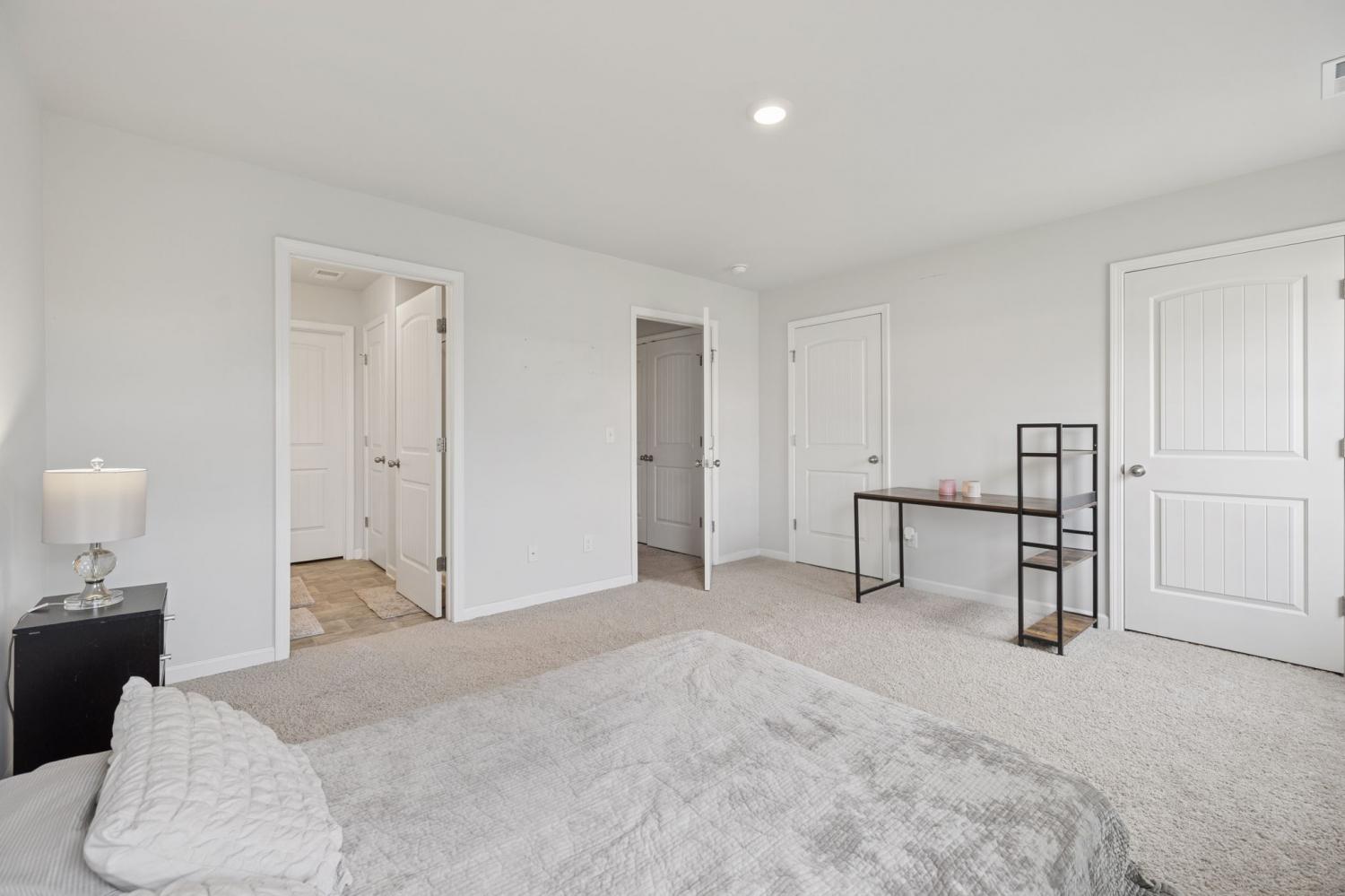 Welcome to easy living in the highly desired Woodbridge community! Built in 2019, this well-kept townhome offers 3 bedrooms, 2.5 baths, and 1,422 sq. ft. of comfortable, low-maintenance living. The main level features an inviting open layout with a bright living area, dining space, and a functional kitchen perfect for everyday living. A small bedroom or office is conveniently located on the first floor, ideal for guests or work-from-home needs. Upstairs, you’ll find two additional bedrooms, including a spacious primary suite with its own bath. Enjoy a community designed for lifestyle and convenience—sidewalks for evening walks, a refreshing pool for summer days, and a dog park for your four-legged family members. Located just minutes from shopping, dining, schools, and I-40, this home combines comfort, convenience, and great community amenities. Move-in ready and easy to love!