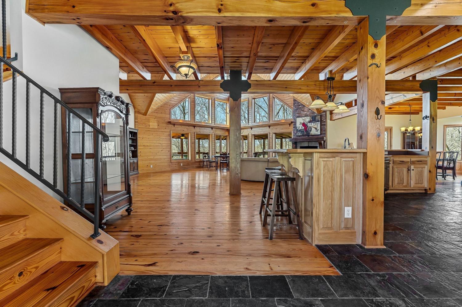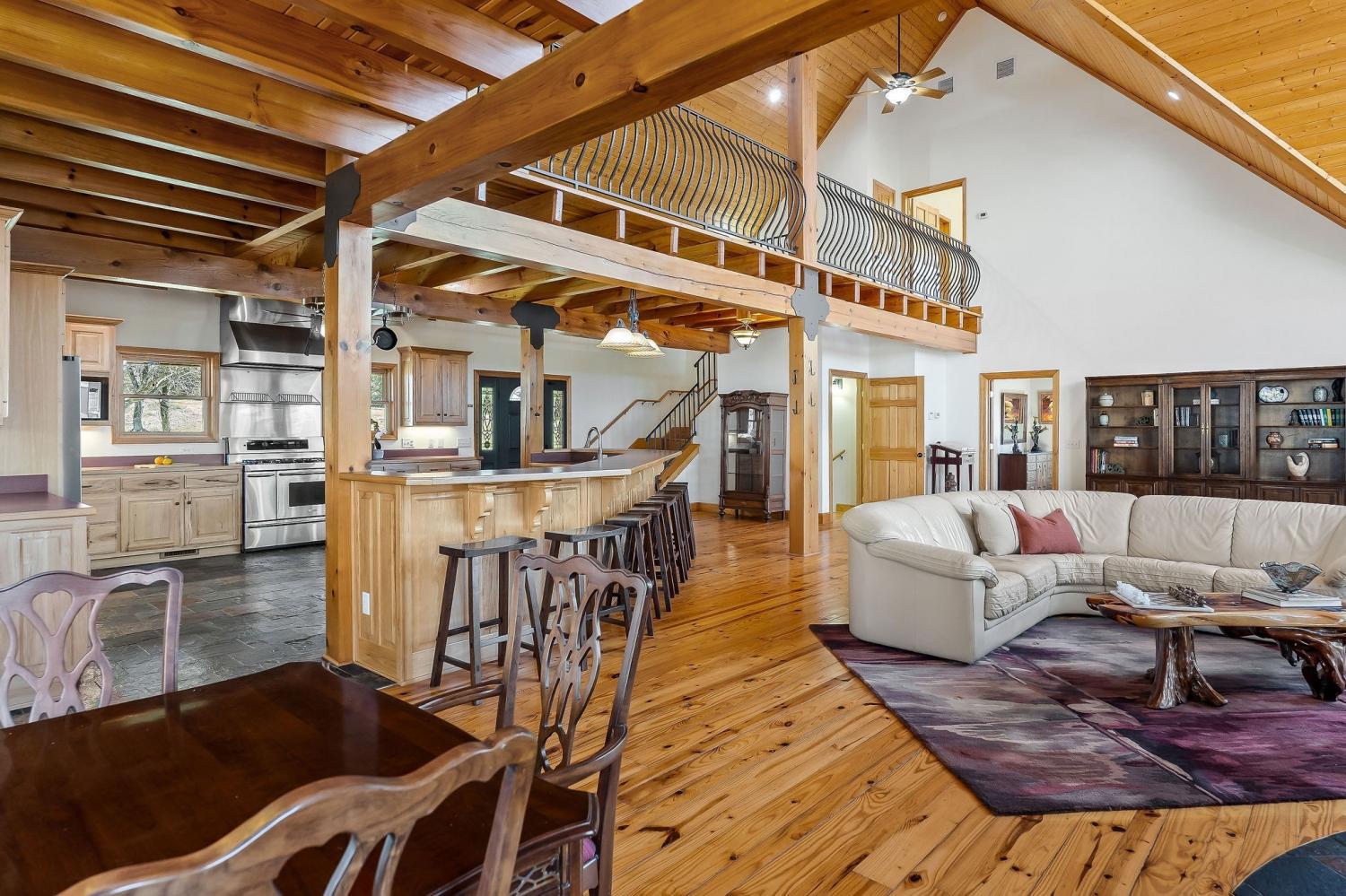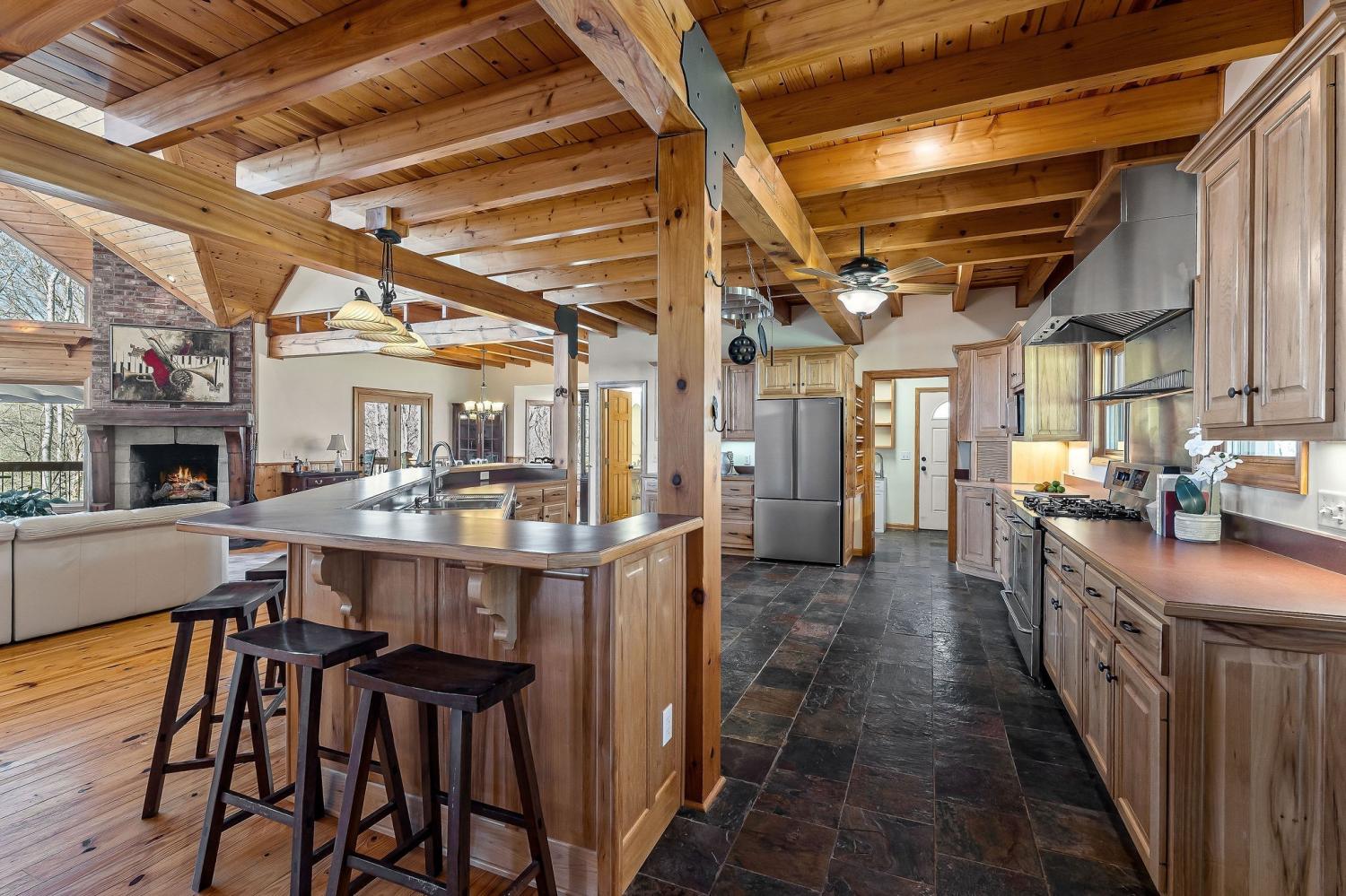 ALL THE FEELS OF A REMOTE GETAWAY, yet only one hour from Nashville and a stone's throw to Center Hill Lake. This custom-built lakeside home is meticulously maintained and privately perched on 5+ acres of nature! Offering over 4700 ft.² of retreat-style living, this home features solid wood beams, expansive ceilings, hardwood floors throughout, and an impressive floor to ceiling window package showcasing an abundance of natural light and stunning countrywide views! Sprawling main floor with spacious gathering spaces inclusive of grand family room with stone fireplace, dining spaces for family and friends, and chef's dream kitchen hosting a large island, stainless commercial grade range, walk-in pantry, and ample cabinets and prep stations. Primary suite on main with dual vanities, tiled walk-in shower, and therapeutic soaking tub. Enjoy afternoon reads from the second level loft, or make it fun for play or work stations. Two oversized en-suite bedrooms await family and/or guests. The full basement offers endless possibilities for your home gym, man cave, or extended family quarters. Enjoy the tranquility of upper and lower covered porches (lower is screened) perfect for watching breathtaking sunsets and deer playing. The property also boasts a detached garage with workshop and 333 ft.² studio/apartment with full bath, ideal for guests or creative pursuits. A greenhouse and garden center provide ample space for gardening enthusiasts, while a private shooting range adds to the already expansive outdoor options. Surrounded by the sounds of nature, this exceptional home offers an unparalleled lifestyle of peace, privacy, and luxury. Less than 1/2 mile to Edgar Evins State Park and Marina and the gorgeous waterways of Center Hill Lake.
