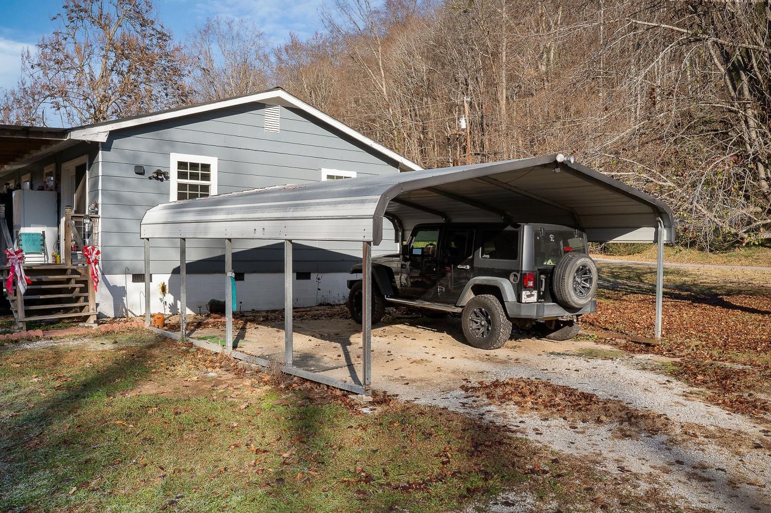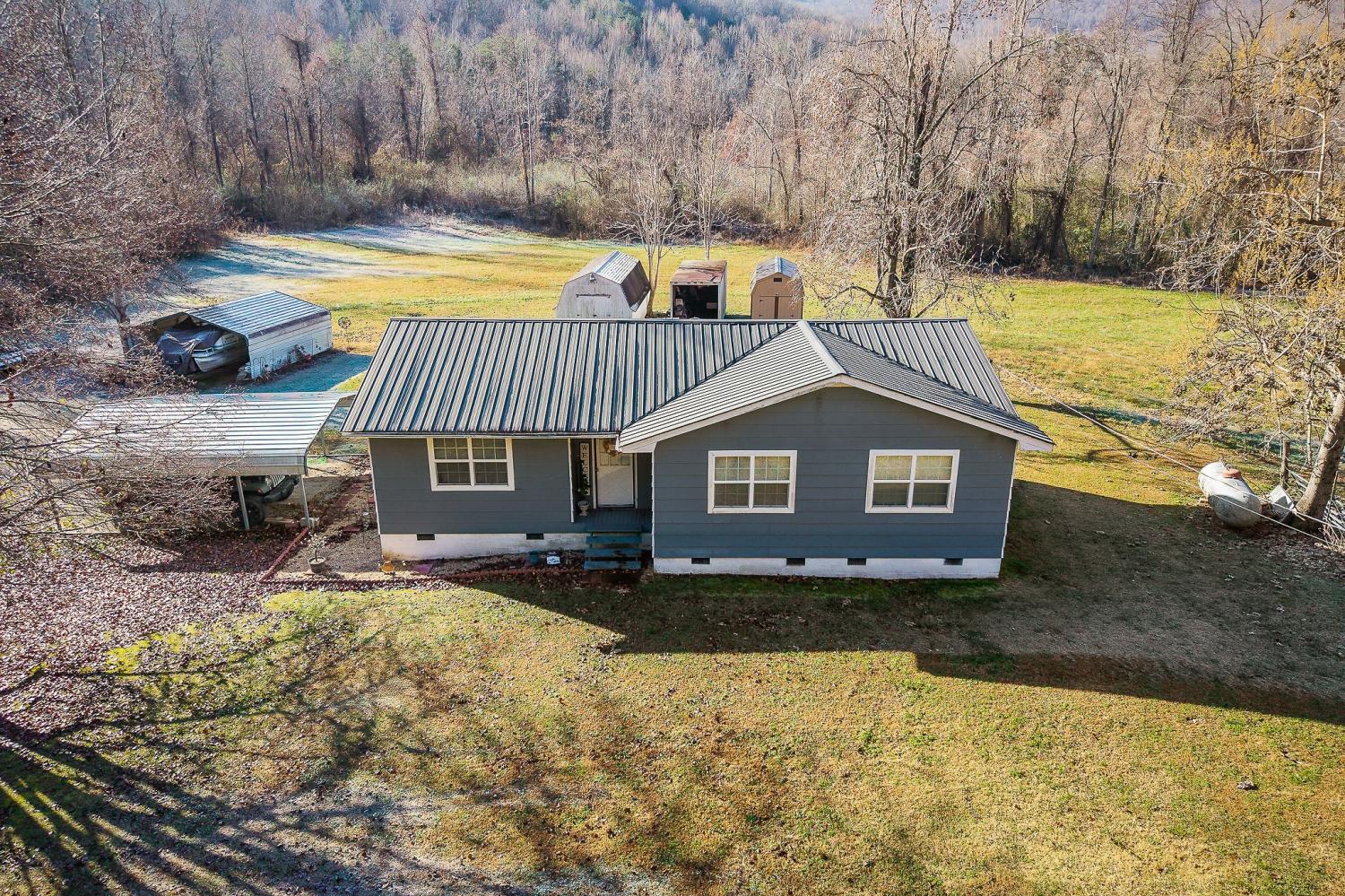 Discover 9.63 acres of quiet country living with approximately 500 feet of road frontage on a dead end street. The property is level, partially fenced, and offers a natural creek along the back property line. With ample space and potential for future development, this tract provides a versatile setting for many uses. The home offers a practical floor plan with 3 bedrooms and 1.5 bathrooms. The living room sits separate from the kitchen and has a comfortable layout. The kitchen includes plenty of cabinet storage, good countertop space, and a large laundry room just off the side. A covered back deck overlooks the property, creating a nice spot to enjoy the surroundings. Additional features include two carports, a storage building with electricity, public water, septic system, gravel driveway, newer windows, and a newer HVAC unit. The home will need some interior TLC, for areas of warped paneling and ceiling, but this home has been well cared for over the years. This is an ideal option for anyone looking for a peaceful homestead or small farm setting with room to grow.