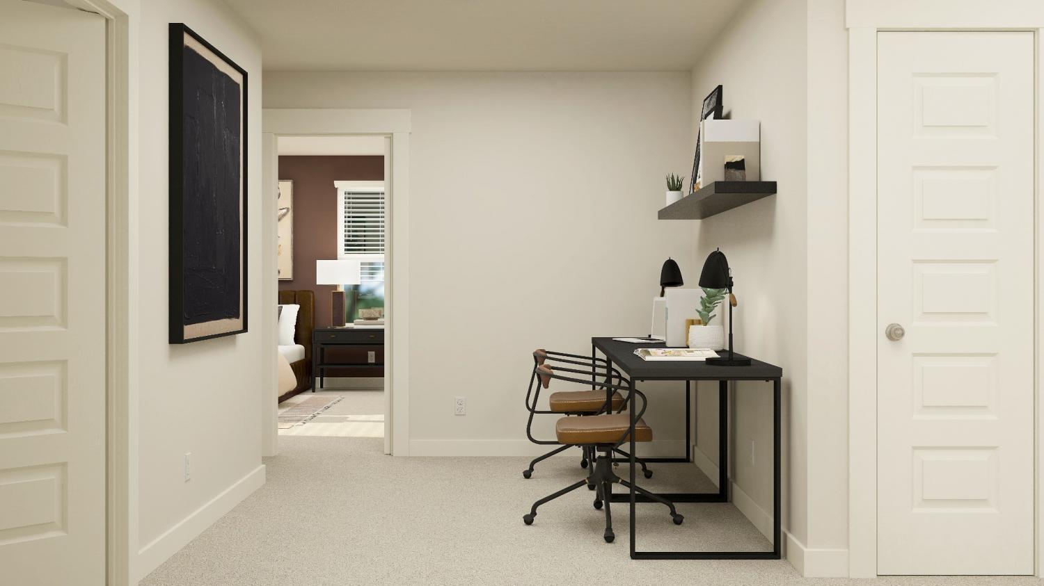 LOT #219- Davenport Floorplan. With fantastic features including a mudroom at the garage entry, this new two-story home boasts a spacious and modern layout with a convenient bedroom and full bathroom off the foyer, leading to an open-concept floorplan that combines the kitchen, living and dining areas. Upstairs, three additional bedrooms surround a versatile loft space, including the comfortable owner’s suite with an en-suite bathroom and walk-in closet. *Images are rendered. Actual configuration and features may vary.
