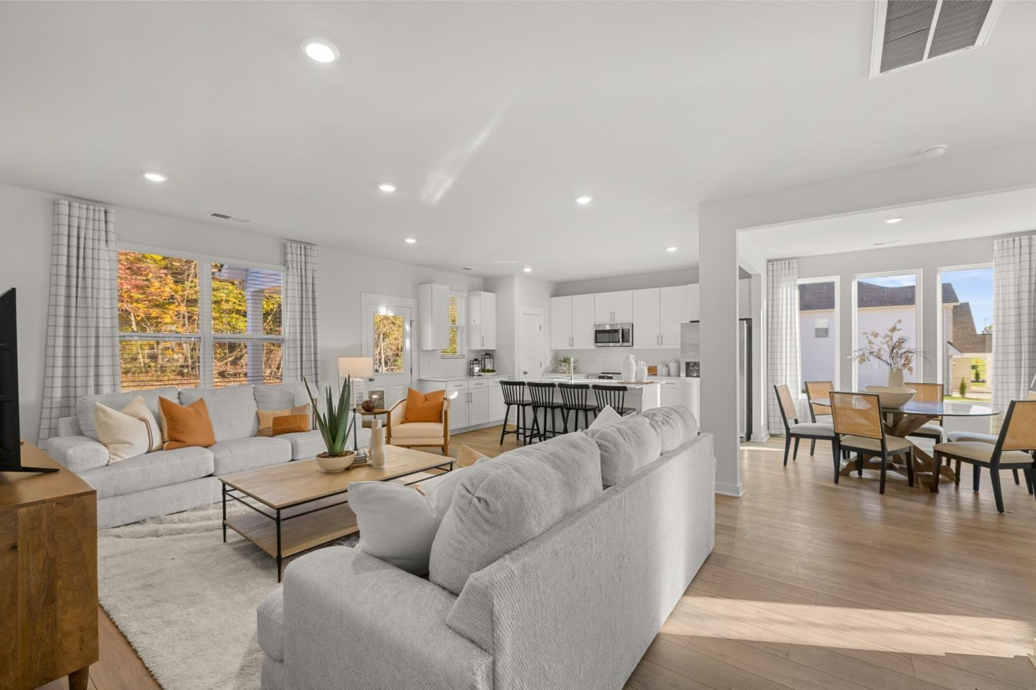LOT #70 - Mayflower floorplan. The heart of this two-story home is the open family room, kitchen and dining room on the first level. The first floor is also host to a convenient office and a bedroom perfect for overnight guests. Upstairs, three more bedrooms and a loft offer extra living space on the second floor. *Images from a furnished model of this home. Actual configuration and features may vary.