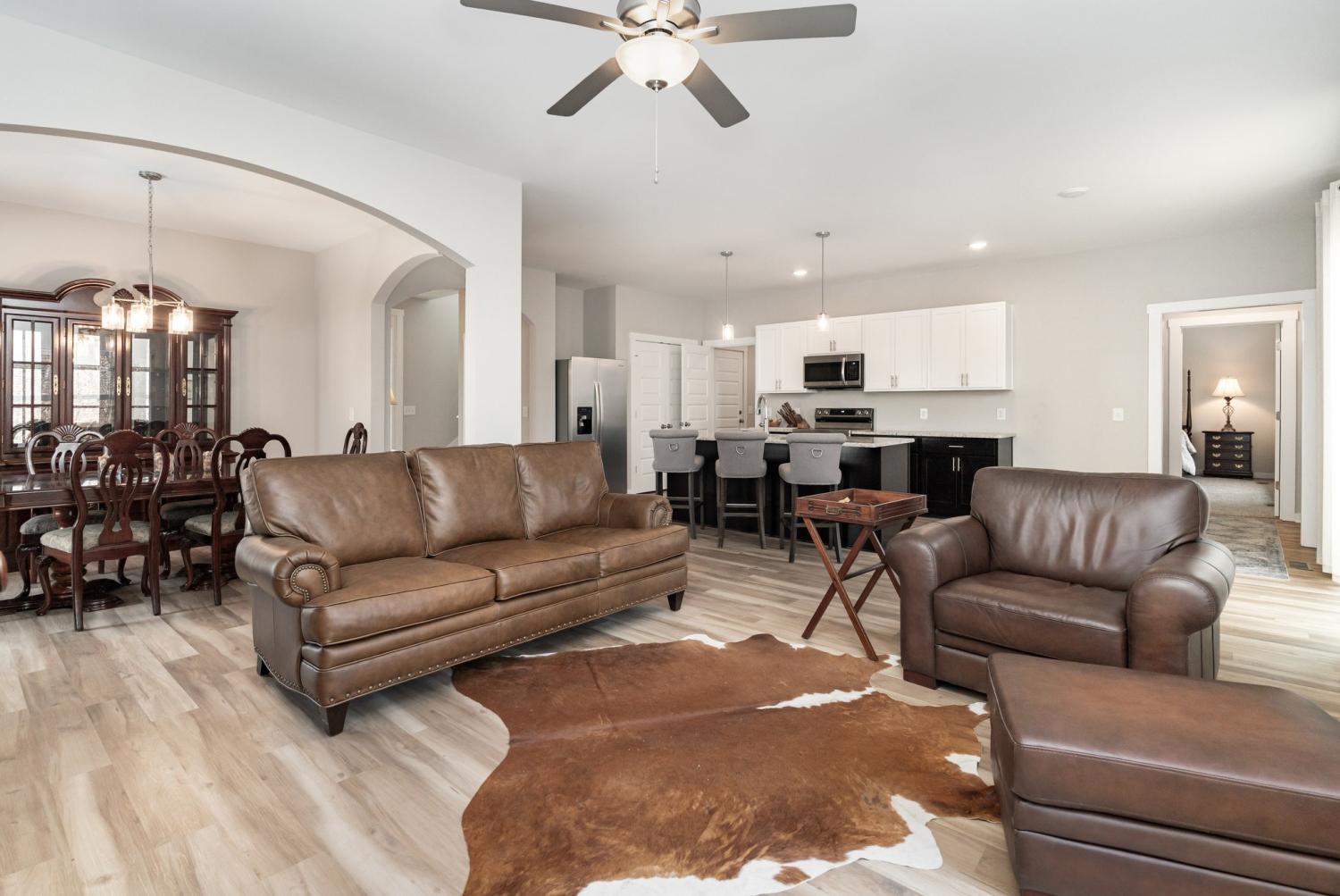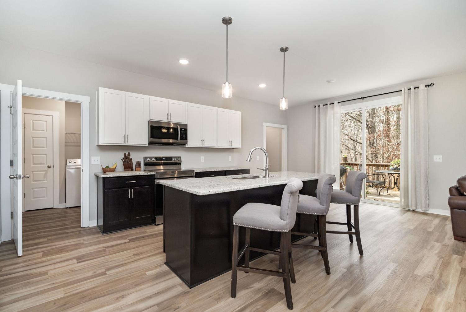 One owner, two year old home and the upstairs has never been used. Open flowing floor plan, large kitchen island, spacious primary suite on the main level, along with the living room dining area and 1/2 bath. Upstairs you'll find 3 bedrooms and the second full bath that still look brand new. The rear deck overlooks the wooded area behind the home, giving a feel of privacy.