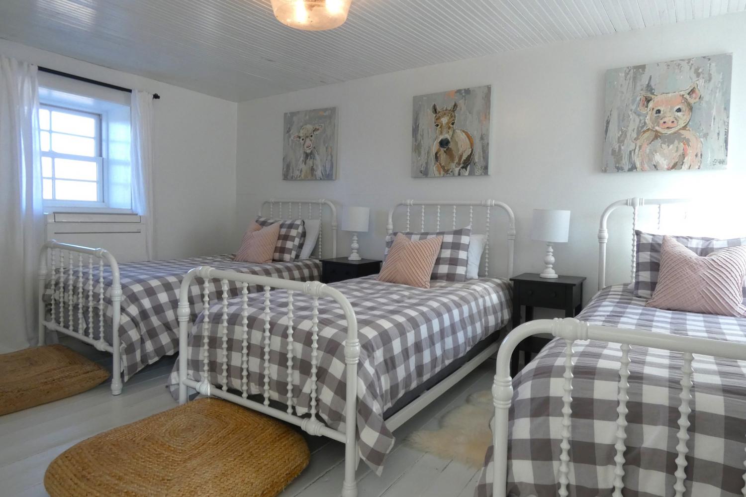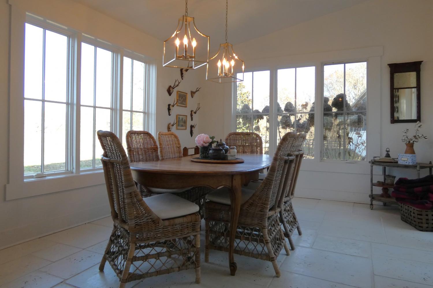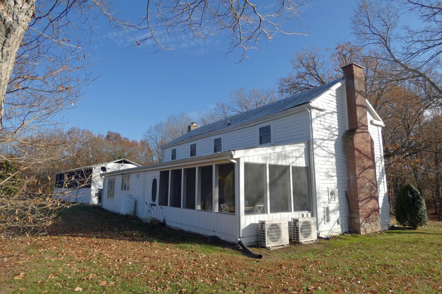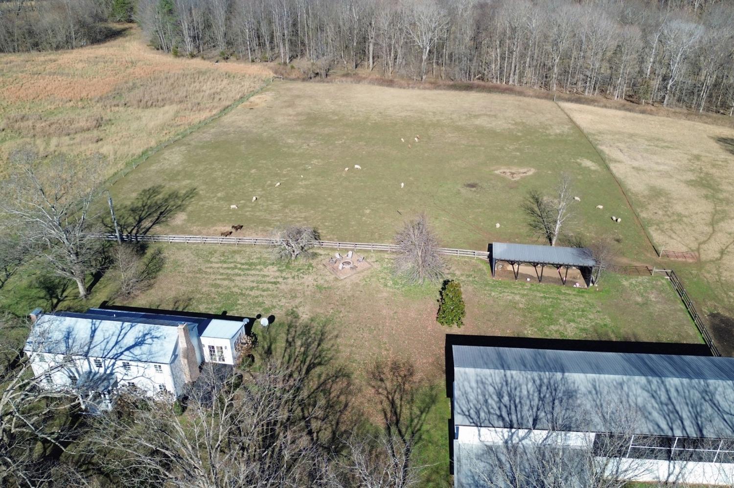 Country living with character! Pre-civil war historic farmhouse- Horse Farm- Vacation Rental. The opportunities abound. One-of-a-kind property that included a gourmet kitchen, dreamy screen porch, soaking tub in master bath, open air side deck, and recently added fire pit area. The home features mini split air units in each room for individual comfort. Chimney in living room was rebuild/rebricked, living room floor recently replaced and crawl space encapsulated. Sunsets await you to enjoy this peaceful country setting. The large, freshly painted barn includes 8 horse stalls, workshop, and ventilated hay loft. A short walk into the woods leads to the winding creek. This beautiful escape is tucked away on 41.5 acres (.25 acres of timber and 10.5 acres tillable or pasture.)