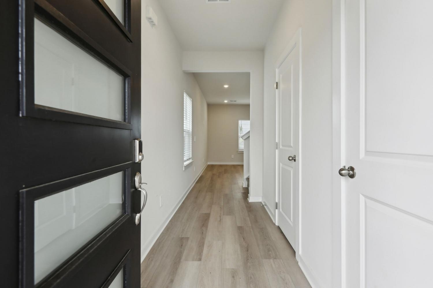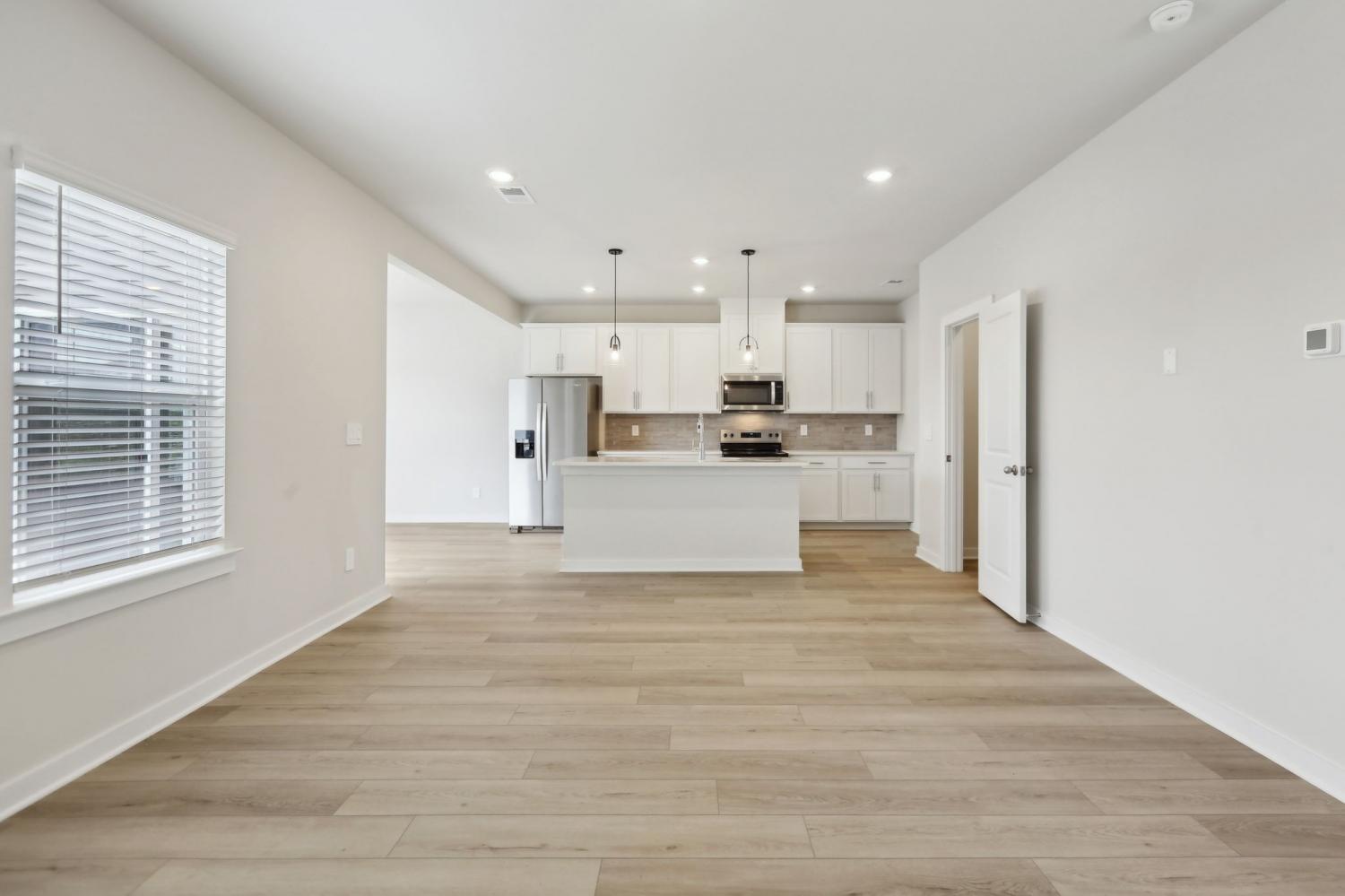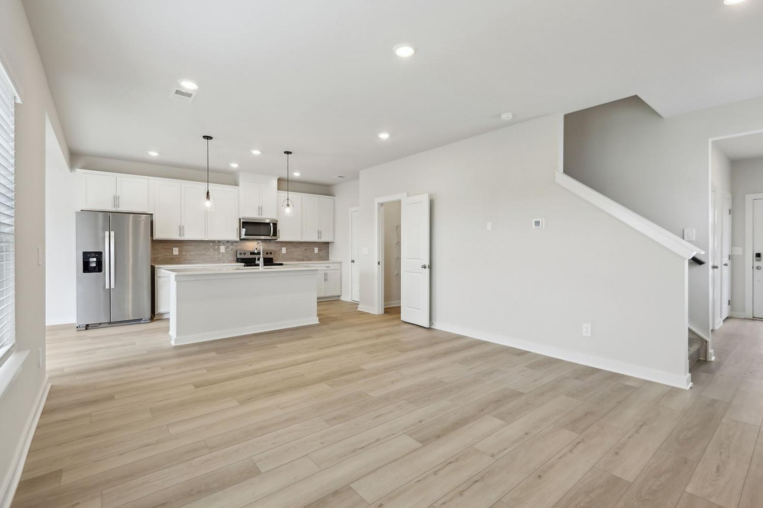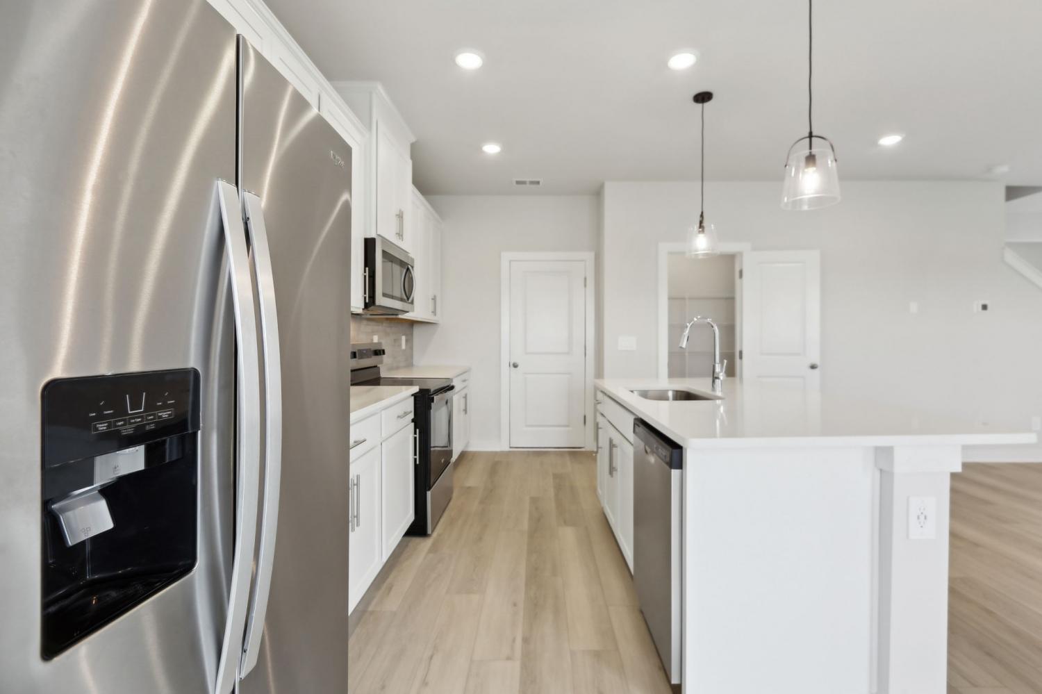 This brand new construction home is a show stopper! Check out the custom garage door that matches with the beautiful front door! Convenient half bath downstairs with the entrance to the garage. Spacious living room with lots of natural light! Large kitchen with SS appliances to include dishwasher, refrigerator, microwave, and stove. Washer and dryer convey with the property. Pretty backsplash in the kitchen goes well with the brand new cabinets and countertops! Lots of cabinet space for plenty of storage and a pantry! Very hard to find! Separate space for a dining room! The dining room has plenty of windows for natural light! Beautiful light fixtures in the home! Coming up the stairs you will find yourself on a large landing! There's potential to put some extra flare in that area! 3 bedrooms are upstairs with plenty of space for furniture in each room! Not to mention the primary bedroom is a lovely size with a spacious primary bathroom! Double vanities, huge WIC, stunning tiled shower, and matching cabinetry. Exiting the home in the back has a cozy patio space!