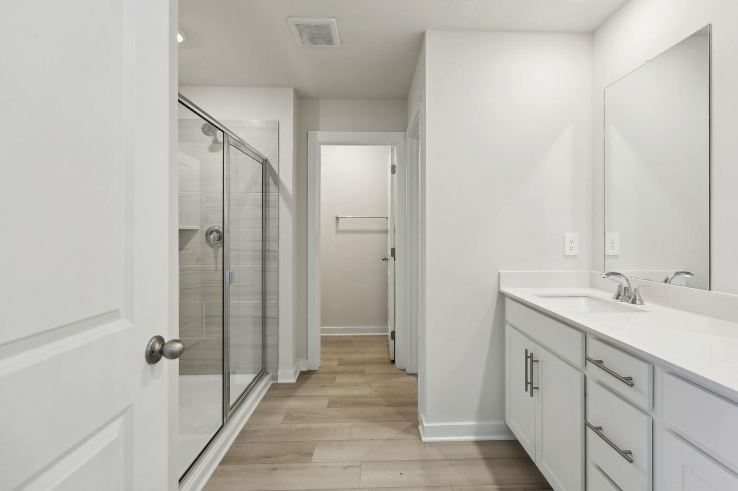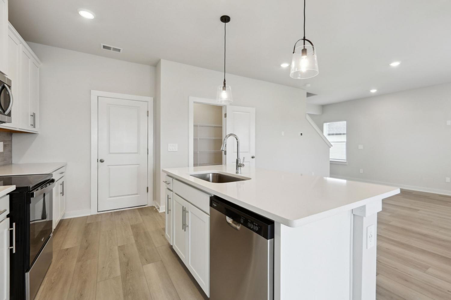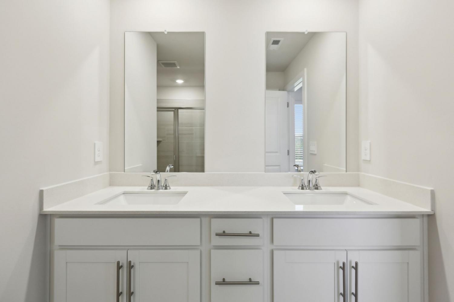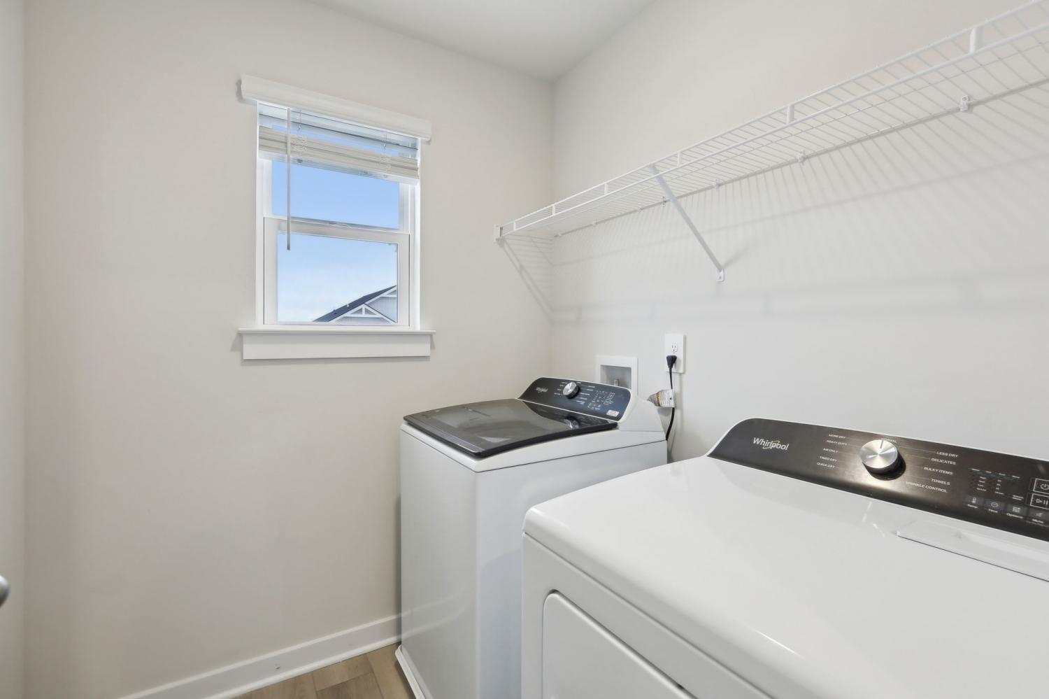 This brand new construction home is a show stopper! Check out the custom garage door that matches with the beautiful front door! Convenient half bath downstairs with the entrance to the garage. Spacious living room with lots of natural light! Large kitchen with SS appliances to include dishwasher, refrigerator, microwave, and stove. Washer and dryer convey with the property. Pretty backsplash in the kitchen goes well with the brand new cabinets and countertops! Lots of cabinet space for plenty of storage and a pantry! Very hard to find! Separate space for a dining room! The dining room has plenty of windows for natural light! Beautiful light fixtures in the home! Coming up the stairs you will find yourself on a large landing! There's potential to put some extra flare in that area! 3 bedrooms are upstairs with plenty of space for furniture in each room! Not to mention the primary bedroom is a lovely size with a spacious primary bathroom! Double vanities, huge WIC, stunning tiled shower, and matching cabinetry. Exiting the home in the back has a cozy patio space!