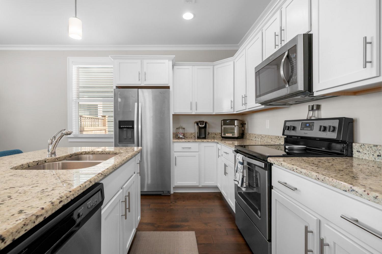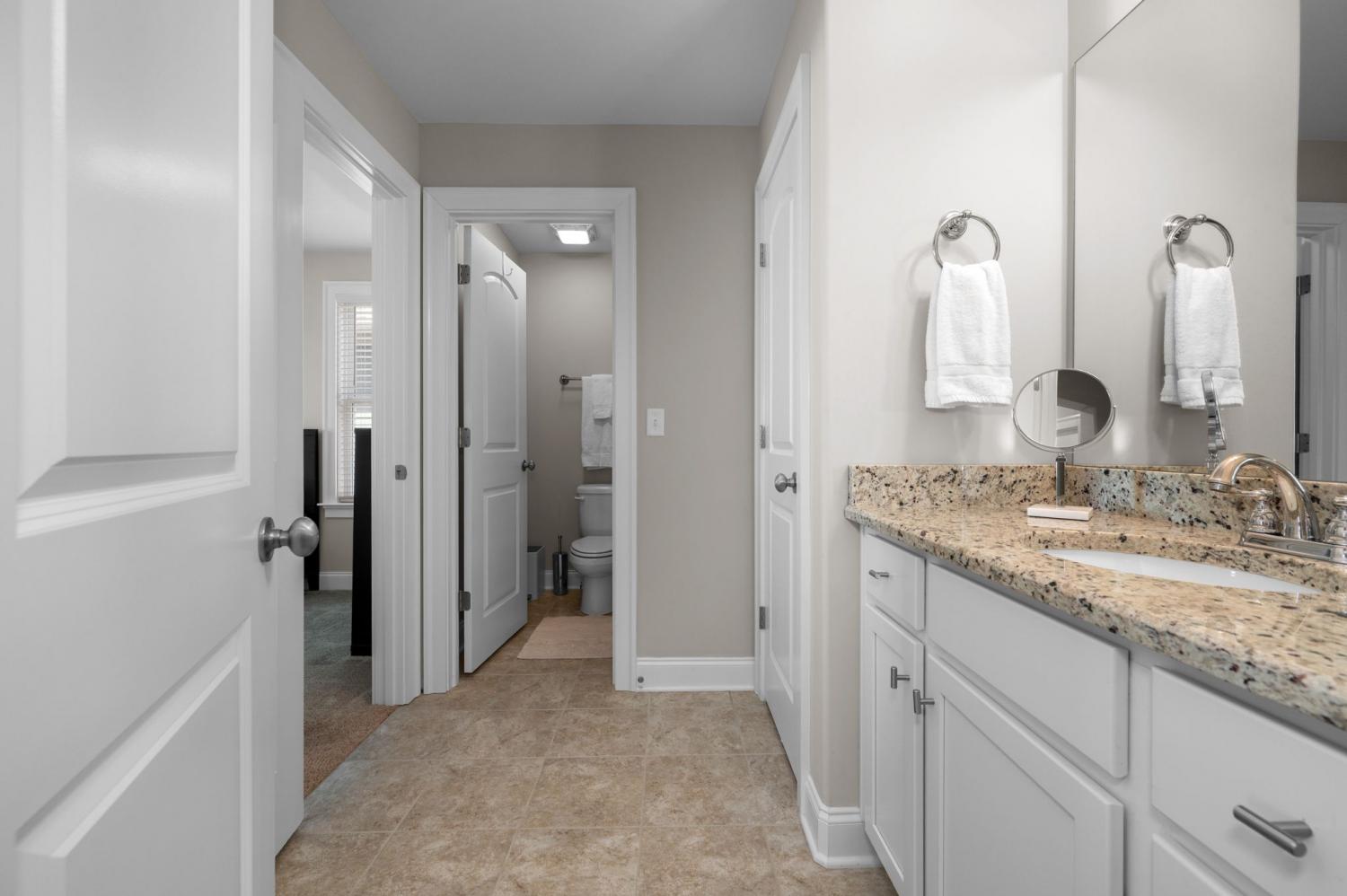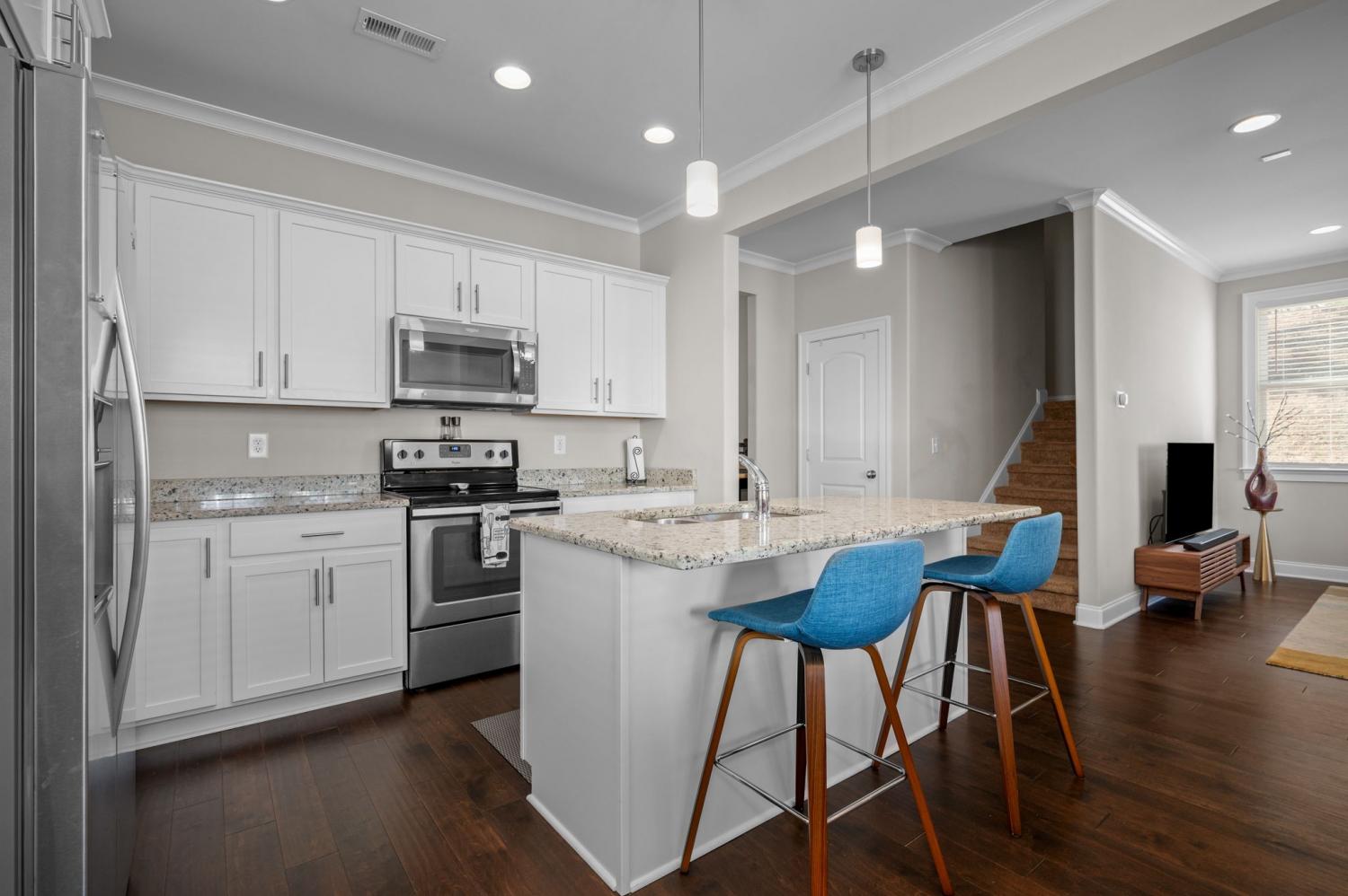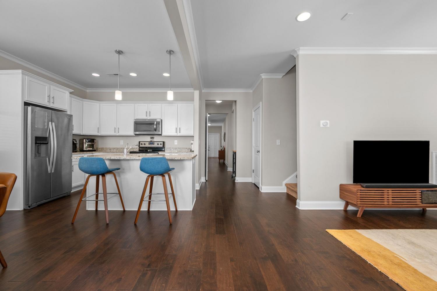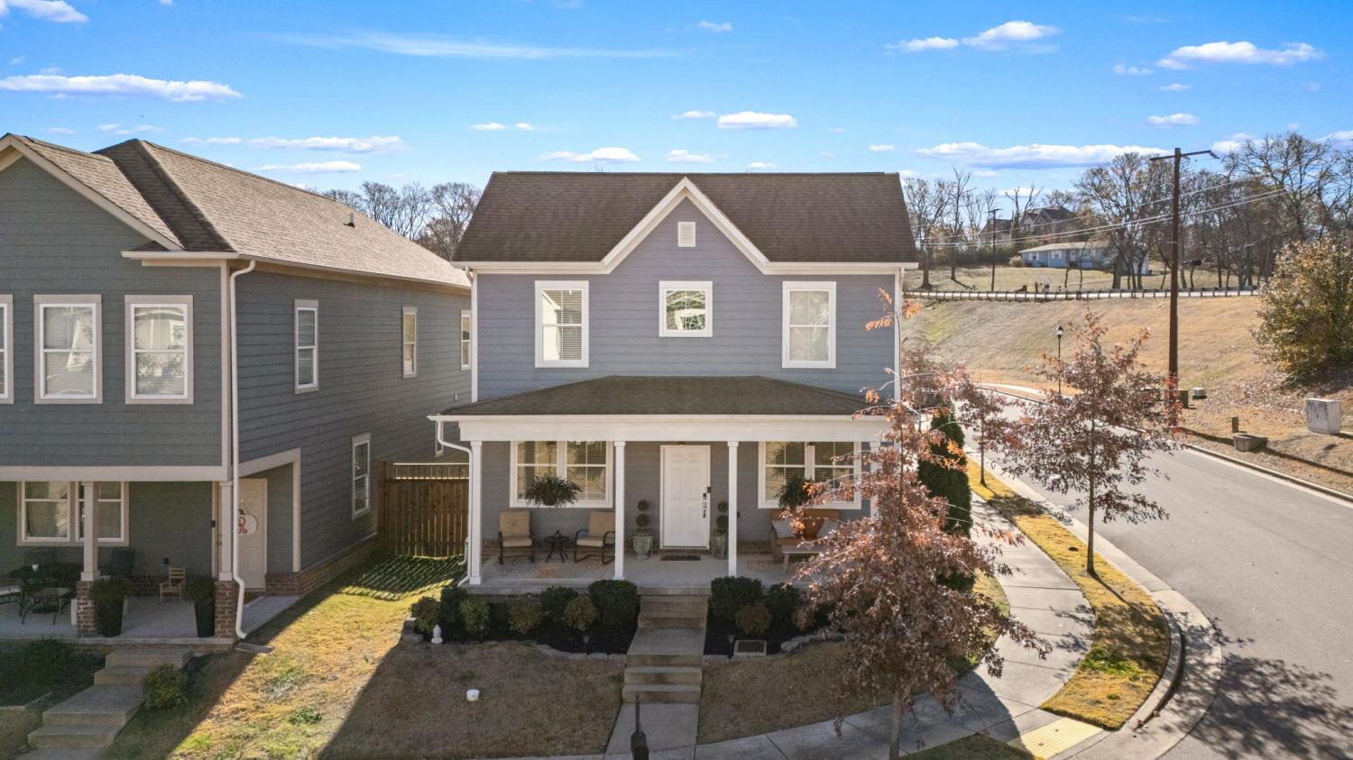 Welcome to your next home in the sought-after Cambridge Park community—a 3-bedroom, 2.5-bath residence on a desirable corner lot. This blue beauty welcomes you with a large covered front porch and invites you inside to a spacious open floor plan, perfect for entertaining or staying connected with family and friends. Hardwood flooring graces the main living areas, while neutral upgraded finishes create an elegant and move-in ready palette. The primary suite is conveniently located on the main level and features a spa-like bath with a large walk-in shower and a freestanding soaking tub—your personal retreat at home. Two additional bedrooms upstairs plus a rec room offer flexibility for guests, kids, or a home office/bonus space. The truly attached rear 2-car garage provides direct access without a breezeway, making everyday living effortless. Step outside to your fully fenced side yard and enjoy the covered side patio with privacy screens for ideal outdoor living and entertaining. The community offers sidewalks throughout, open green space and convenient access to shopping, restaurants and recreation. Ideally located with quick access to I-24/I-40, this home is just 10–15 minutes from upscale destinations including Brentwood, Lenox Village, the Shops at Tanger and the restaurants at Century Farms. Neighborhood favorites such as Burger Republic, Edley’s BBQ, Sweetwaters Coffee & Tea and Sprouts Farmers Market are just minutes away. Zoned for the top-rated May Werthan Shayne Elementary School, this home offers the ideal blend of comfort, style and lifestyle convenience. Don’t miss the opportunity to live in Cambridge Park—where location, layout and lifestyle all line up.