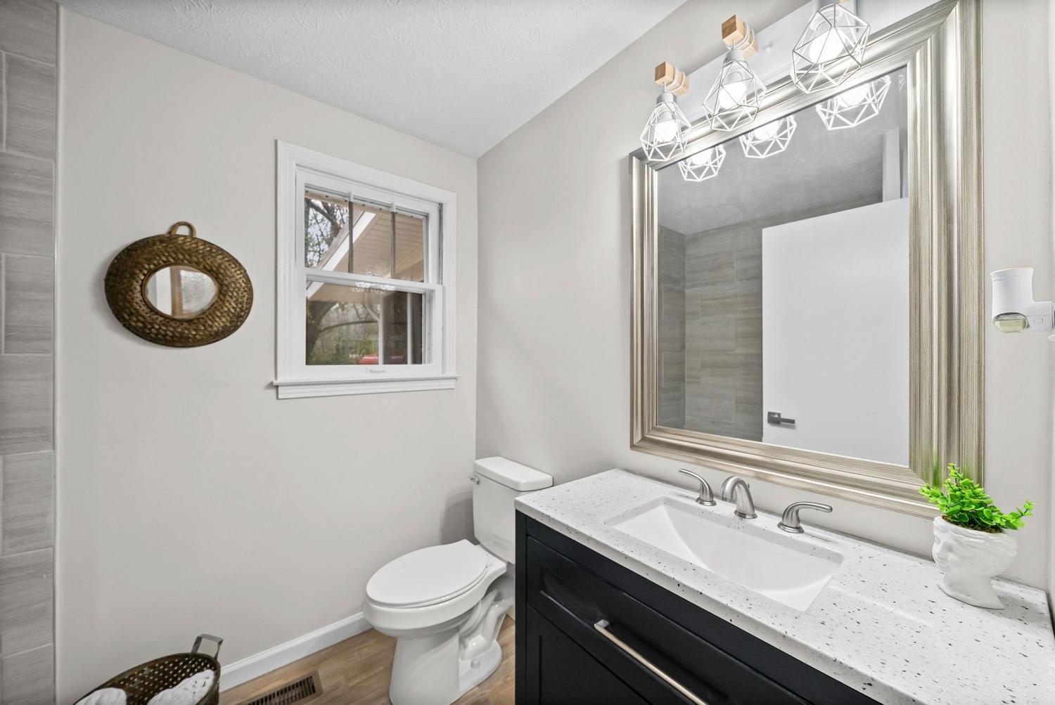 Welcome home to this newly renovated ranch. Walk in to the stylish living room w/custom accent wall. A spacious Kitchen with eat in dinning area quartz counter tops, lots of room for 2 cooks in the kitchen, plenty of cabinets and a gas stove top. This 3 bed plus bonus room can easily be a 4th bedroom and already has a closet. Laundry room has half bath to make it easily accessible. Off the dining room you will find a large screened in porch adjacent to a wonderful storage space can easily be a craft room etc. Carport and detached shed included. All new flooring, paint, fixtures, hardware and baths.
