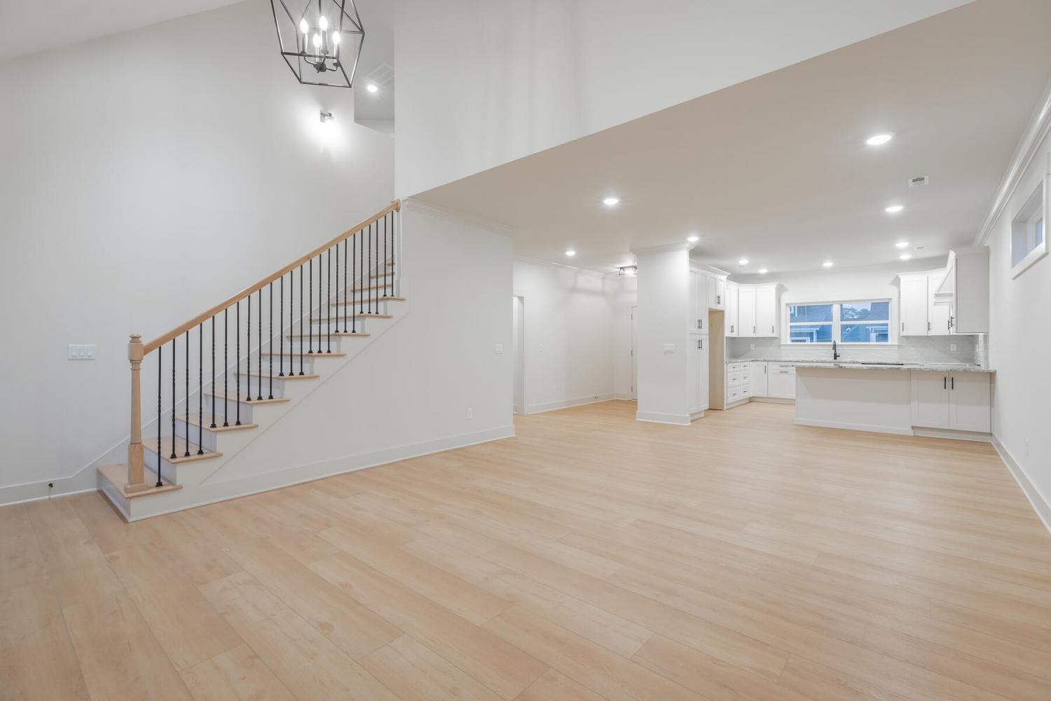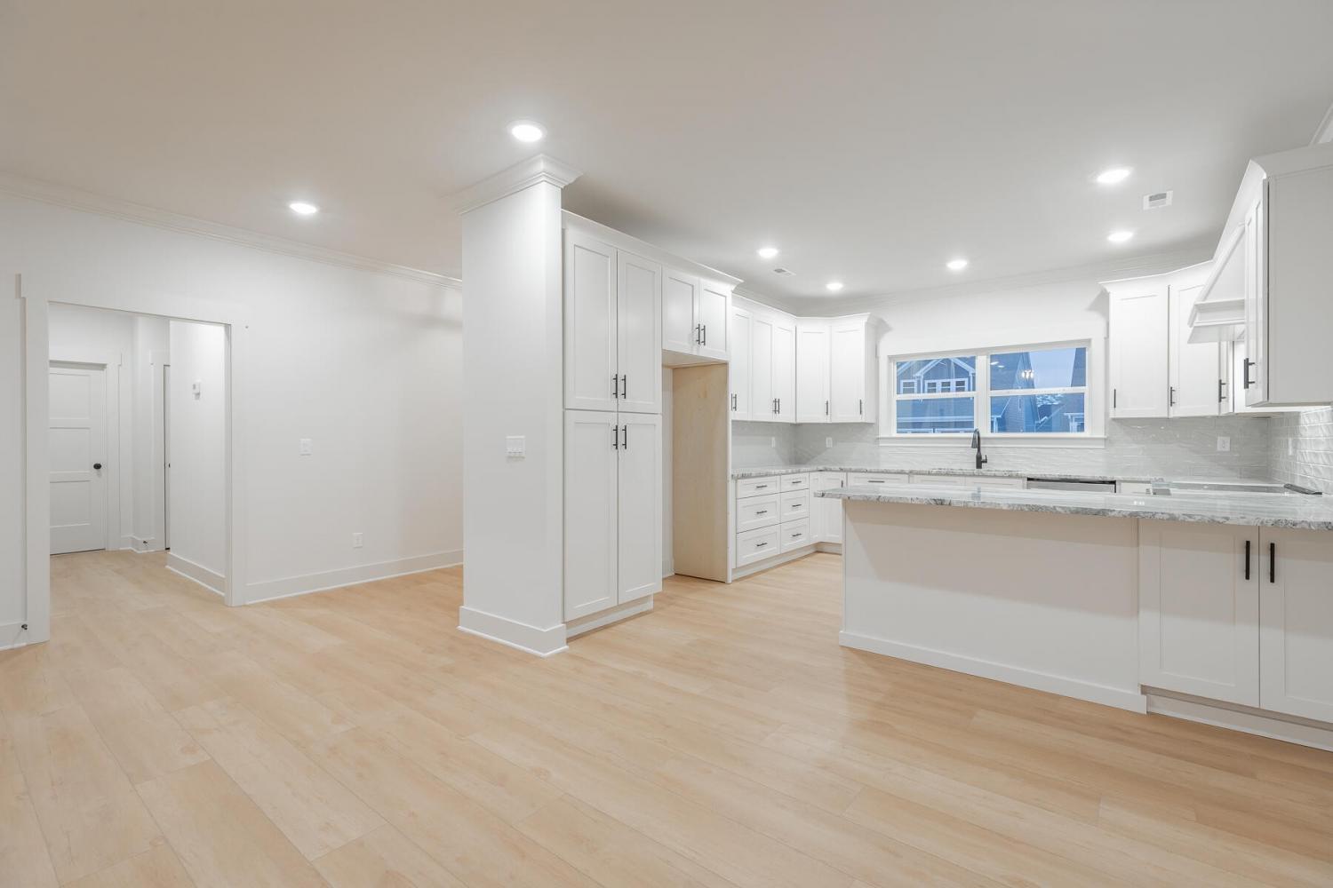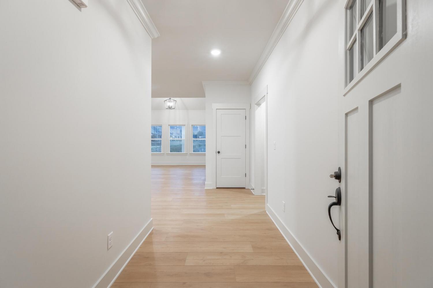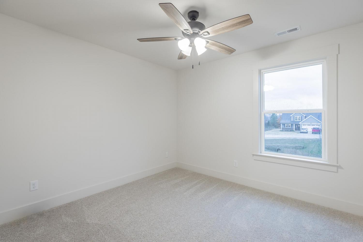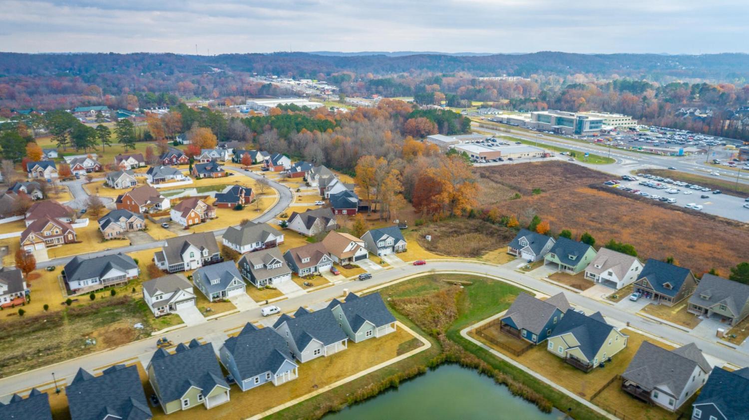 Neighborhood Open House Saturday 1-3pm and Sunday 2-4pm! This brand-new 4 bedroom home in The Grove offers 2 full baths, 2 half baths, and 2,050 square feet of comfortable living space. Nestled on a premium homesite with an open community lot to the left (no neighbor the left side), it provides additional privacy and unobstructed views over the community pond - with stunning sunset views to enjoy! Located in the highly desirable Heritage school zone, The Grove is just minutes from the intersection of Battlefield Parkway and Pine Grove Road, only 2.7 miles from I-75, 19 minutes from downtown Chattanooga, and 23 minutes from Dalton. The charming, sidewalk-lined community features an inground swimming pool, walking paths, and the picturesque pond right at your back doorstep. The exterior of this home features low-maintenance fiber cement siding and brick, energy-efficient low-E vinyl windows, a zero-entry raised slab foundation (no steps to enter the home) and a fully sodded, professionally landscaped yard. Step inside to an inviting foyer that flows into an open-concept main level filled with natural light and direct pond views. Luxury vinyl plank flooring in a warm wood tone runs seamlessly throughout, complemented by soft Shoji White walls. The spacious living and dining areas feature abundant windows for ample natural light and views. The upgraded kitchen is a standout, boasting extensive cabinetry, pantry, granite countertops, a tiled backsplash, custom cabinet hood, slide-in range, pendant lighting over the peninsula, a slide-in range, and a convenient microwave drawer. A stylish half bath with wood vanity, granite countertop, and classic checkerboard flooring is tucked near the owner's entry from the two-car garage, alongside a well-appointed laundry room. Tucked at the rear of the home for maximum tranquility, the vaulted main-level primary suite enjoys abundant natural light and direct pond views.
