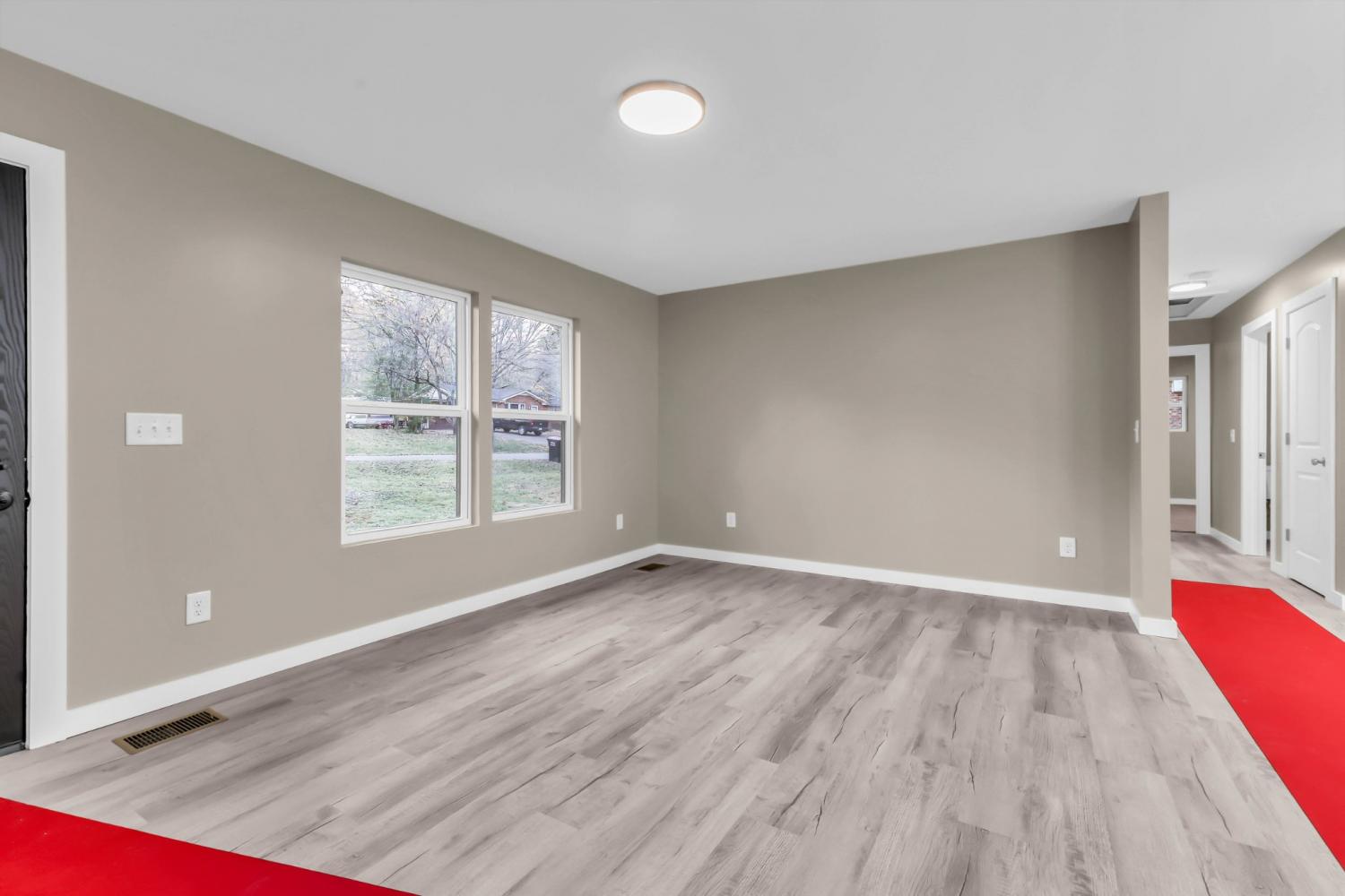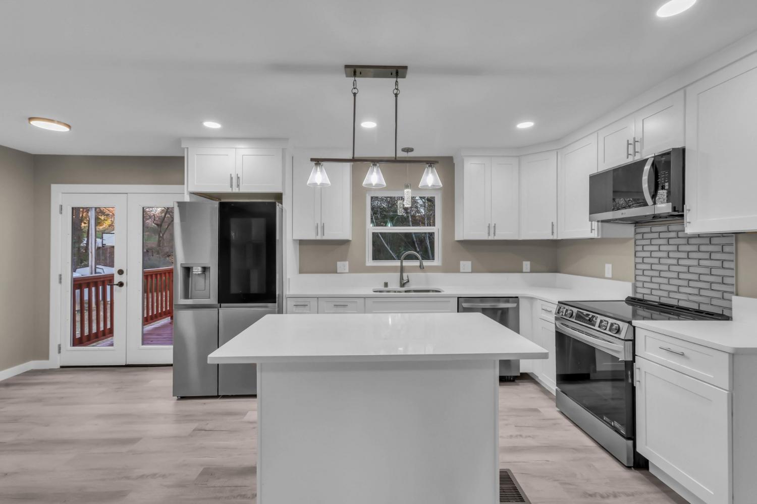 Beautifully Remodeled 4 Bedroom, 2 Bath Ranch on Over Half an Acre ranch-style home offering modern comfort, thoughtful upgrades, and plenty of space both inside and out. Step inside to an inviting open layout featuring brand-new LVP flooring, plush new carpet, and fresh finishes throughout. The stunning kitchen shines with new stainless steel appliances, updated cabinetry, Quartz countertops,and contemporary lighting. Both bathrooms have been tastefully remodeled, complete with new tile surrounds, updated plumbing fixtures, primary dual sink/walk in closet and stylish details. Major system upgrades provide peace of mind for years to come, including a new HVAC system, new roof, all-new electrical, new windows, and a new hot water tank. Every detail has been addressed to deliver a true move-in-ready experience. Enjoy the outdoors with two newly built decks, perfect for entertaining, dining, or simply relaxing overlooking the expansive backyard. With its modern updates, spacious layout, and large private lot, this home offers the perfect blend of comfort, style, and convenience. See last picture - Recently added new oversized carpet for parking and storage.