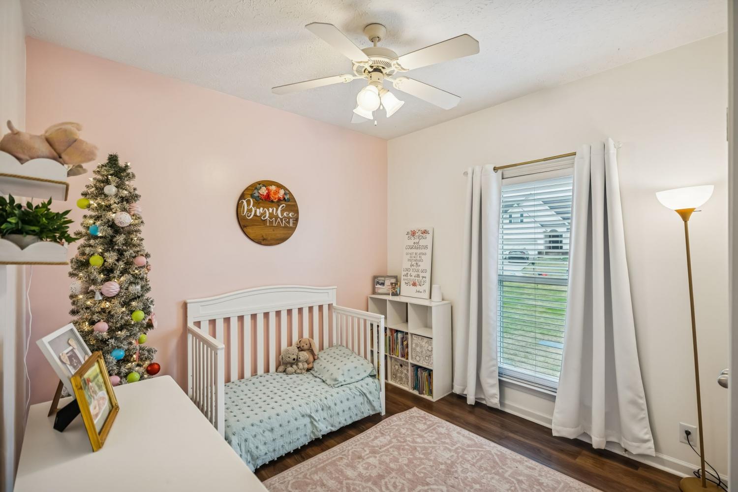 Discover this beautifully upgraded home in an amazing neighborhood, with zoned bedrooms, brand new windows, and new flooring throughout the downstairs for a fresh and modern feel. A welcoming covered porch leads inside to a warm living area where a wood-burning fireplace creates the perfect space to cozy up and unwind. The kitchen shines with sleek white cabinetry, stainless-steel appliances, and a convenient pantry, flowing effortlessly into the dining room for everyday living and entertaining. The primary suite provides a relaxing retreat with a separate tub and shower, double vanities, and a walk-in closet. Three more bedrooms share a second full bathroom. You’ll love the flexible bonus room over the garage and an impressive 800 sq ft of floored attic space, offering rare expansion potential. Outside, enjoy a covered patio and deck space designed for summer BBQs, relaxation, and gatherings, overlooking a large backyard with a privacy fence and a shed for additional storage. An attached 2-car garage (with built-in shelving), extra driveway parking, and the quiet cul de sac location add convenience and peace of mind, with countless nearby restaurant and shopping options just minutes away. Easy access to 231 and 24, with no city taxes and NO HOA! Homes in sought-after areas with this level of space, upgrades, and future potential are in high demand – schedule your private tour today!