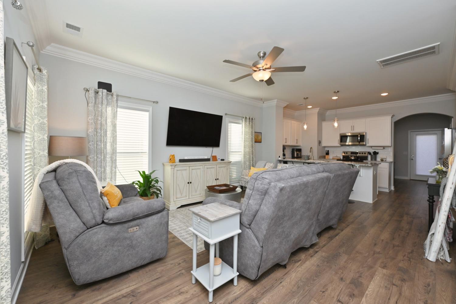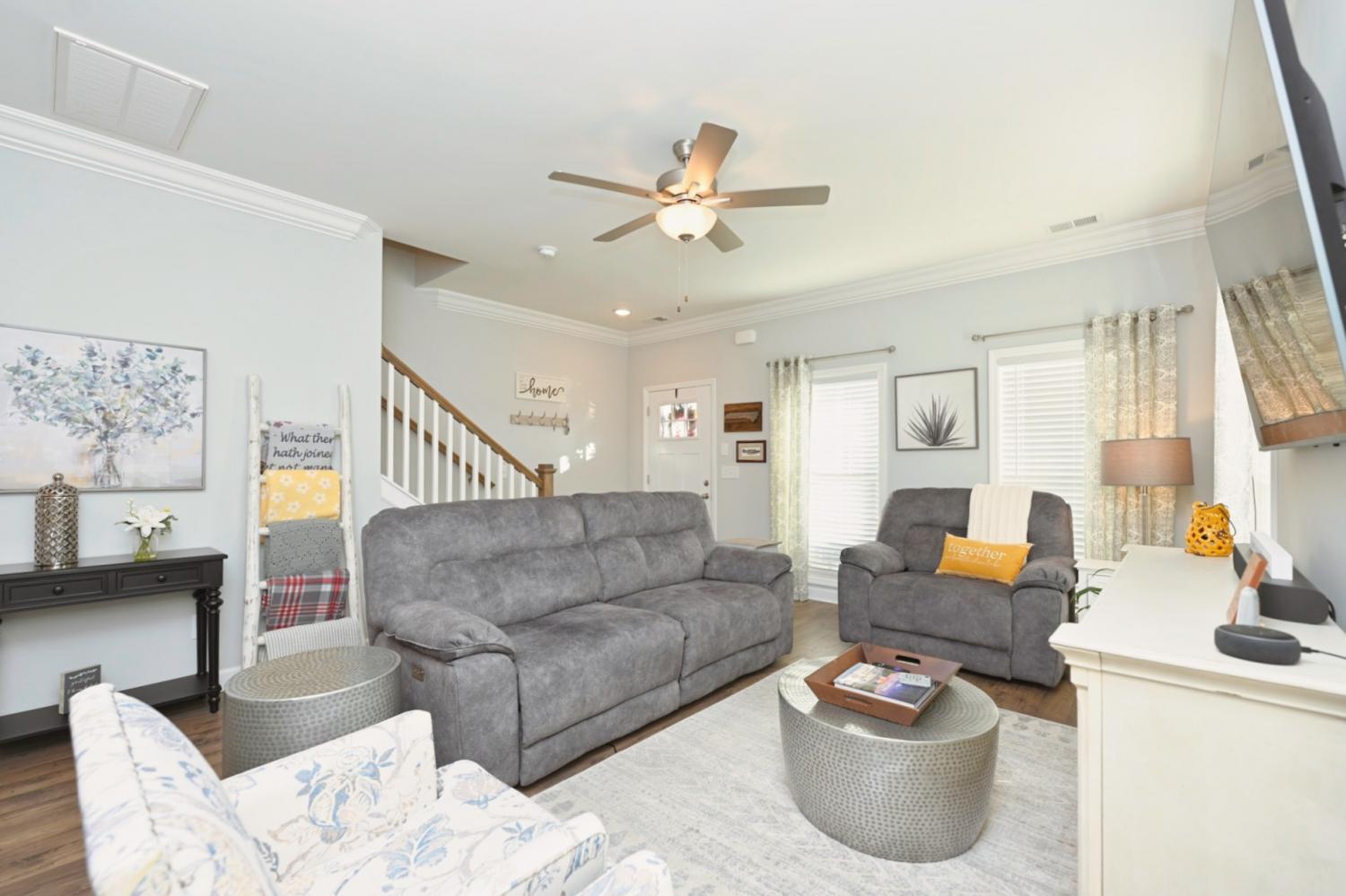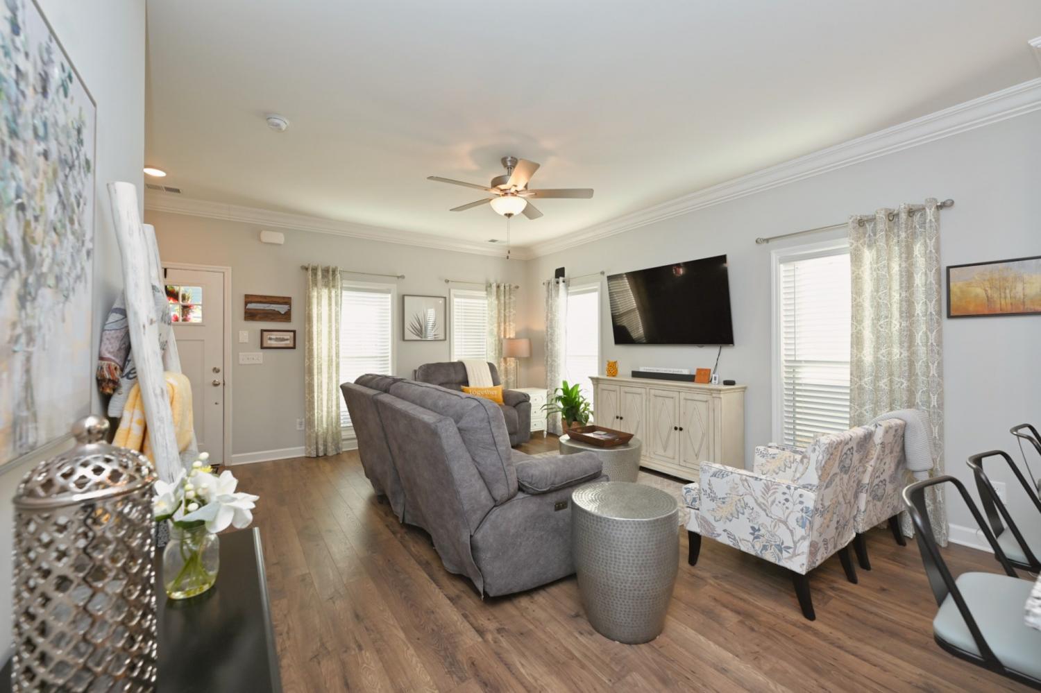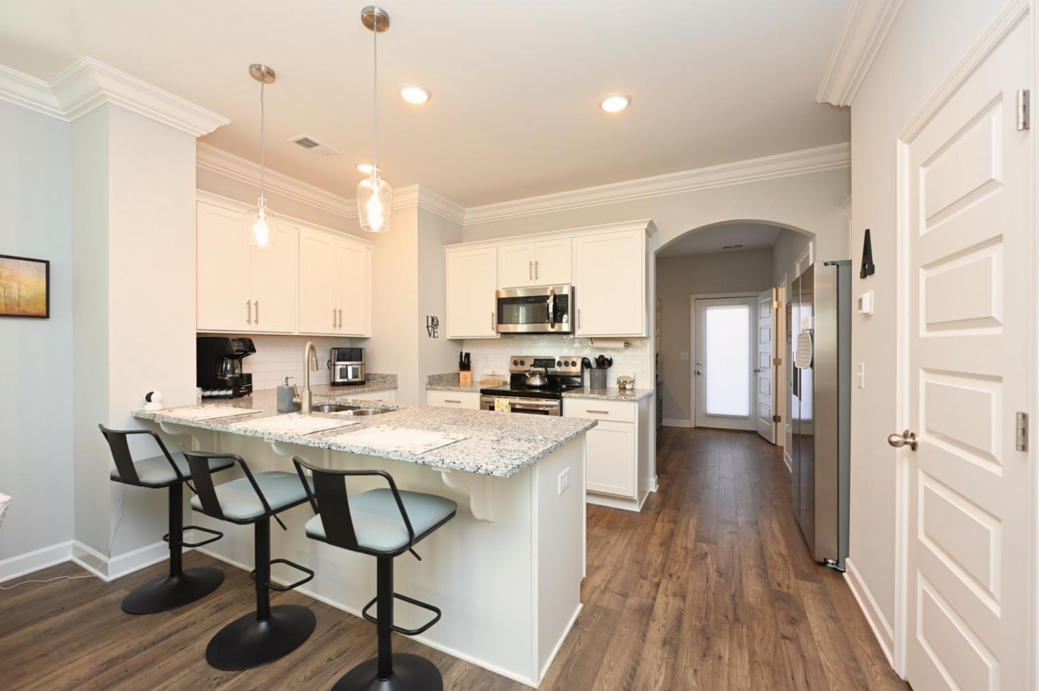 Quick Move In! This craftsman Townhouse features a stunning brick and James Hardie exterior with a covered front porch! This Townhouse features 2 bedroom, 2.5 baths, flex room on the first floor, and a private back patio. Upstairs has HUGE primary suite with tons of light and walk in closet. Great separation between Primary bedroom and secondary bedrooms. This Townhouse offers blinds on every window and a stainless steel refrigerator/freezer. PREFERRED LENDER OFFERING A 1% LENDER CREDIT BASED UPON LOAN AMOUNT.