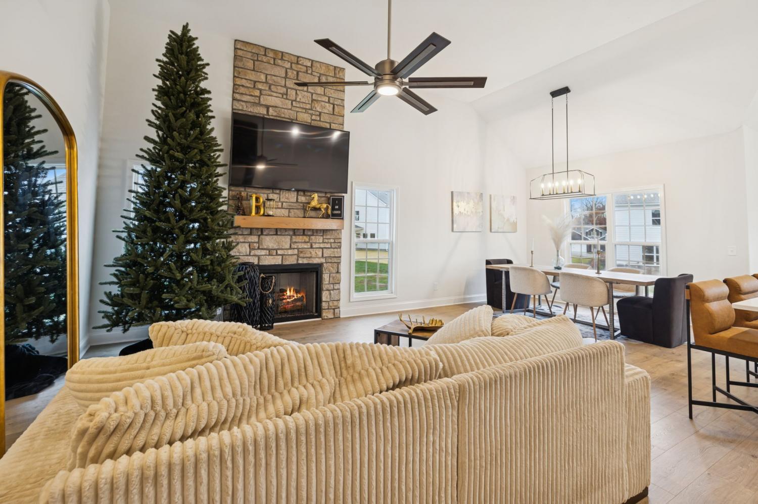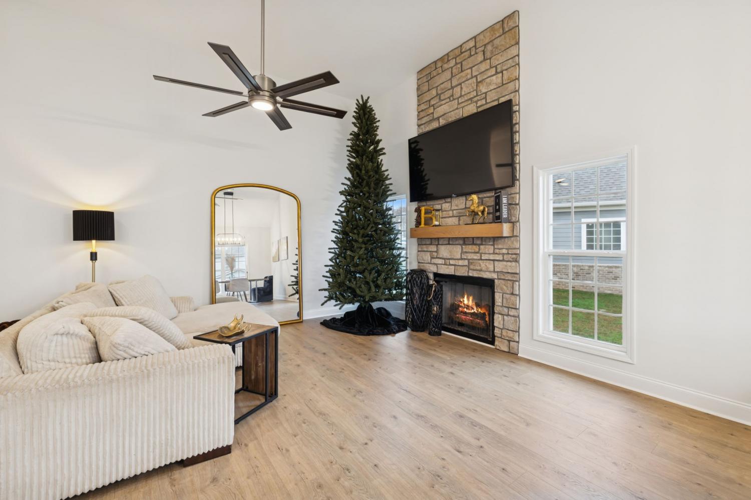 Beautiful 3-bedroom, 2-full-bath home offering all one-level living with an extra-large bonus room upstairs. This well-maintained home features a bright and open layout, upgraded appliances, quartz countertops, and high-end finishes throughout. The exterior includes full brick with stone and hardboard accents, along with both a covered front and back porch for outdoor enjoyment. Located in an executive-style neighborhood that offers a community pool, clubhouse, fitness center, and playground, this home blends comfort, convenience, and luxury—perfect for modern living.