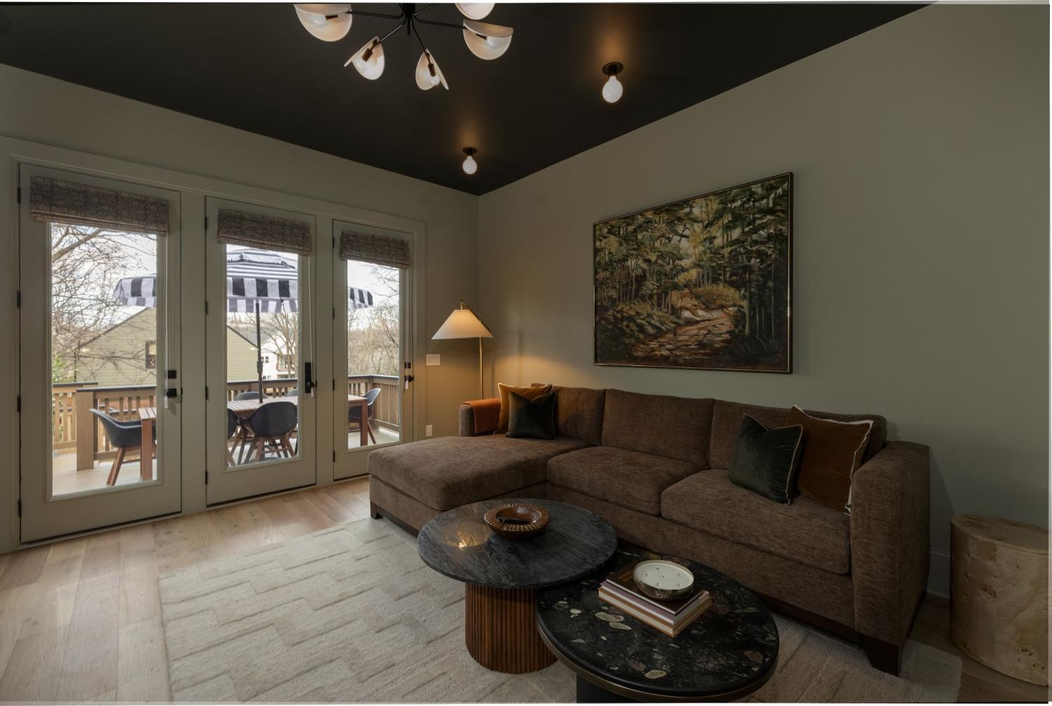 Stunning three-story home located in one of East Nashville's most desirable zip codes. Designed by Nashville Design Co, this new construction showcases contemporary architecture, warm refined finishes, and floor-to-ceiling windows that flood the home with natural light. The open-concept layout is ideal for both everyday living and entertaining. A detached two-car garage includes 700+ sq ft of finished bonus space above-perfect for a studio, office, gym, or whatever you can dream up. Inside the main home, you'll find four spacious bedrooms, each with its own en-suite bathroom, plus a full bath on the main level. A dedicated den with a built-in home office provides added flexibility, while the private third floor suite is ideal for guests, in-laws, or a live-in nanny. The gourmet kitchen includes a butler's pantry, premium appliances, custom cabinetry, an oversized island and a built-in dining nook. High end finishes around every corner! A two-tier deck extends from the den, offering the perfect setting for outdoor dining and gatherings. Located minutes from popular East Nashville favorites! Full designer-curated furnishing package available for purchase. Detached flex space sq footage is included with 3rd floor sq footage in MLS.
