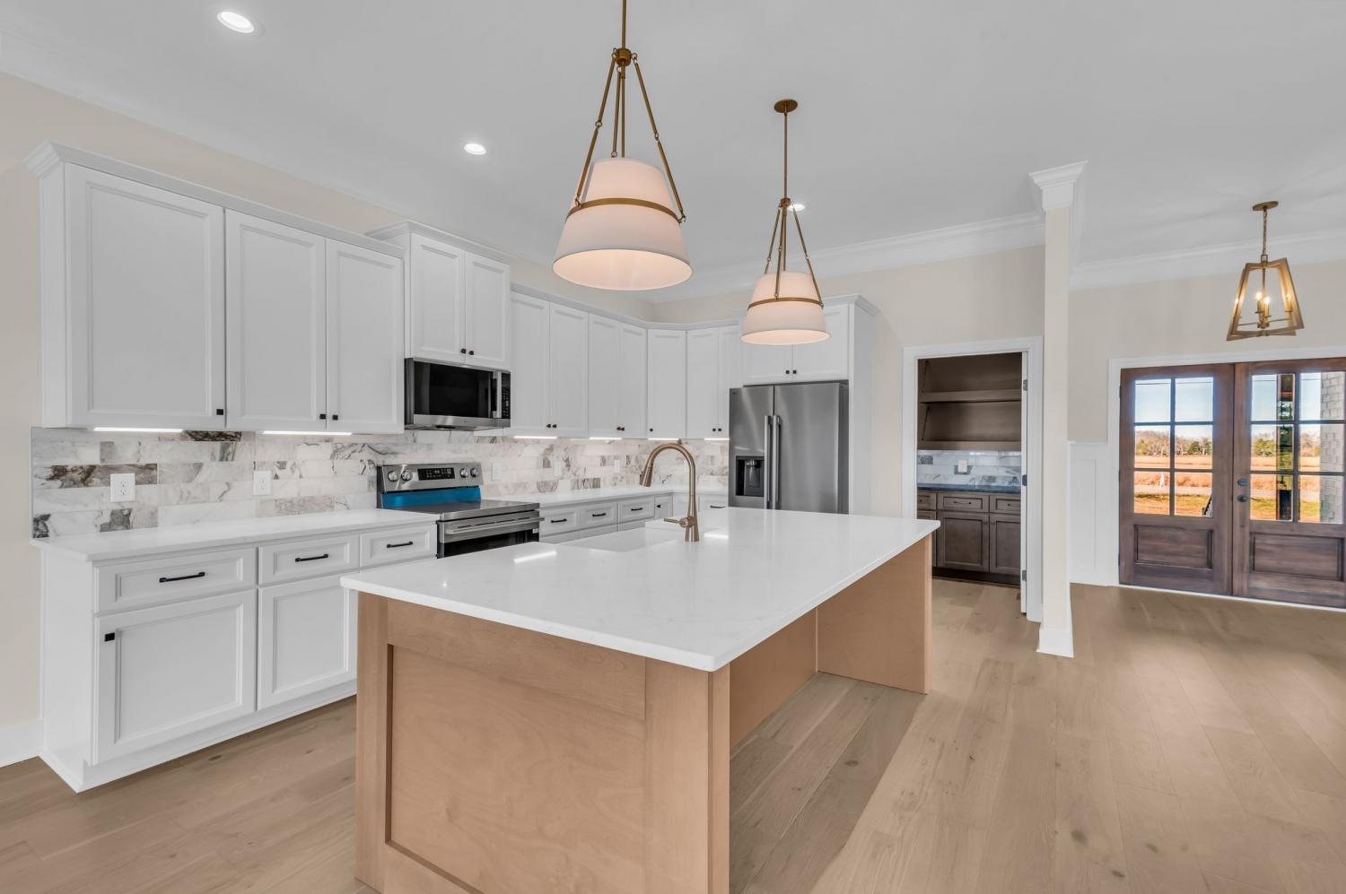 Brand-New custom home on nearly 4 acres. Welcome to this exceptional 3-bedroom, flex room, 2 full bath, 2 half bath custom home, thoughtfully crafted with beautiful finishes and timeless style. Being set on just under four acres, this property offers the perfect blend of privacy, comfort, and style. Step inside to an inviting open floor plan featuring upgraded trim work, designer lighting, and thoughtfully designed touches. A spacious living flows seamlessly into the kitchen, complete with quartz tops, soft close cabinetry, stainless appliances, a large island, and a spacious walk-in pantry. The primary suite features abundant natural light, two separate vanities, oversized soaker tub, tile shower, custom closet. Additional bedrooms are well- appointed and designed for flexibility - perfect for family, guests, or a home office setup. A large bonus room over the garage is filled with natural light - providing additional space for a media room, playroom, or hobby area. Outside, enjoy the charm of the homes covered porches, elegant exterior detailing and wide open flat acreage. Additional features include mudroom/drop zone, custom built-ins in the laundry, oversized two car garage, and hardwood floors throughout with exception to the bonus room. Builder offering up to $10,000 in closing assistance.