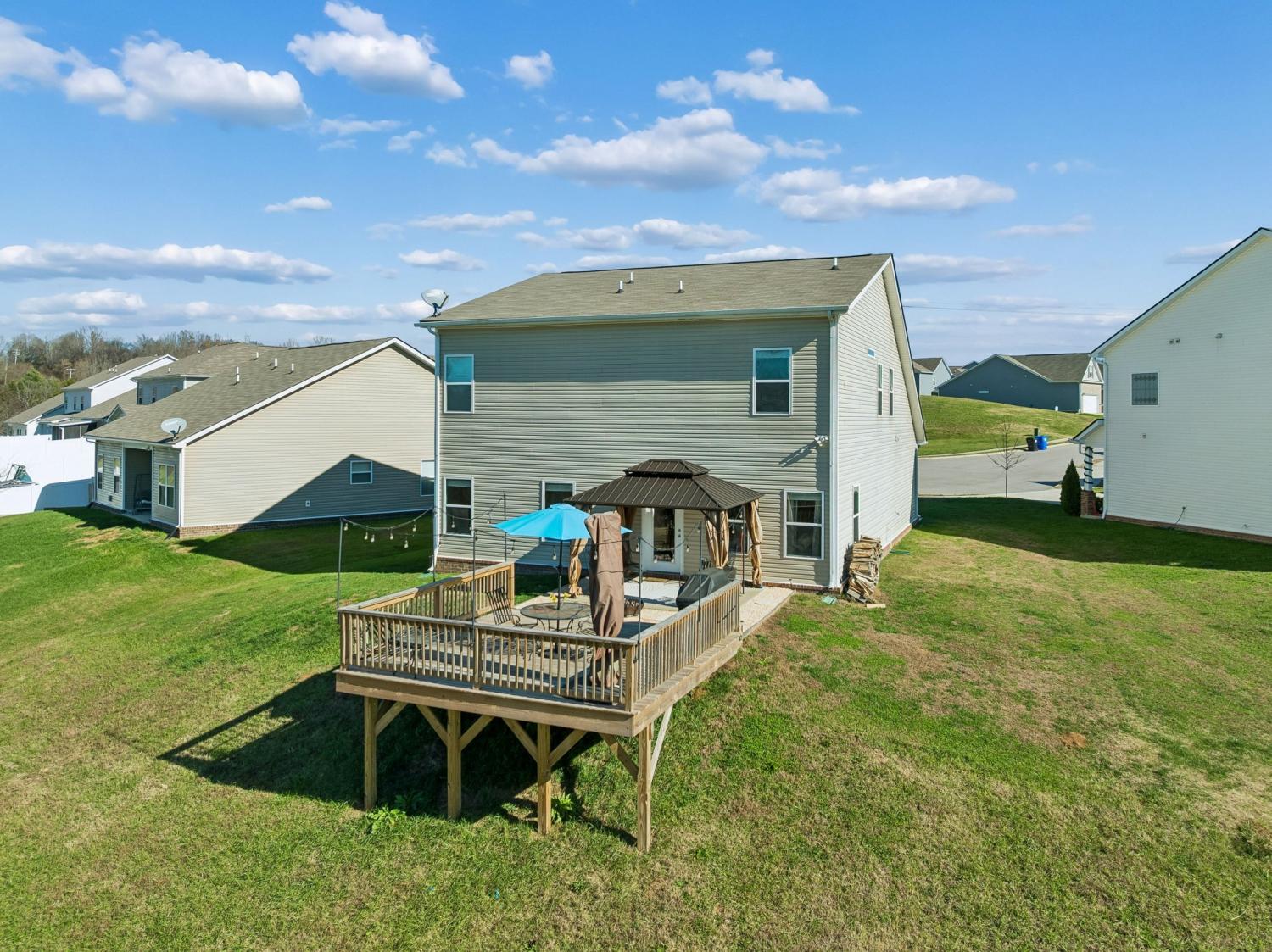 Welcome home to this beautifully designed, cozy residence perfectly situated in an excellent Columbia, Tennessee location. Offering 4 spacious bedrooms, including two primary suites, this home provides exceptional flexibility for multigenerational living, guest accommodations, or simply added comfort. The main-level primary suite delivers easy convenience, while the second upstairs primary suite offers privacy and versatility. Step inside to a bright open floorplan, where the living, dining, and kitchen areas flow seamlessly together. The stunning kitchen features a large island with sink, granite countertops, a pot-filler above the range, and plenty of cabinetry which is ideal for cooking, entertaining, or gathering with loved ones. Upstairs, you’ll find an inviting open loft perfect for a media space, play area, or additional lounge. A dedicated office on the main level provides the perfect spot for working from home or pursuing hobbies. Indulge in the upgraded bathroom shower systems, including dual shower heads in the master and a luxurious rain-shower setup for a spa-like experience every day. Outdoor living is just as impressive, with a covered back patio and an additional large deck, ready for weekend barbecues, morning coffee, or quiet evenings under the Tennessee sky. Make plans to see this wonderful home while you have the chance!