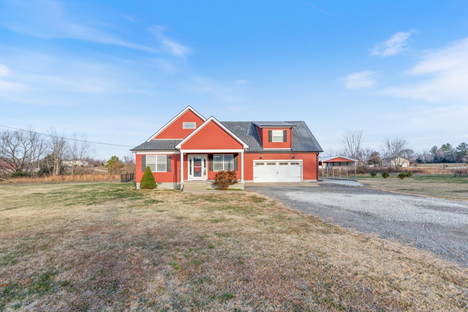 Welcome to this beautiful 3BR/2FB home that is perfectly situated on a .55-acre CORNER lot! The eye-catching red exterior, covered front porch, and two-car garage with a drive through garage door on the back side of the home, give this home instant curb appeal. Inside is a spacious open concept living area with vaulted ceilings, rich wood flooring, and plenty of natural light. The kitchen features warm cabinetry, Stainless steel appliances, and a bar that’s ideal for casual dining or entertaining guests. The primary suite located on the other side of the home from the other 2 bedrooms, offers a tray ceiling, walk-in closet, and a private bath with a large shower. Outside, enjoy the generous yard. Plenty of room for playing ball, adding a garden or letting the dogs run in the fenced in backyard. This well-maintained home is move-in ready and offers both comfort and convenience. HVAC unit, dishwasher and flooring on main level were all new in 2022, Encapsulation with sump pump and dehumidifier-2023, Carport and Primary Shower upgraded in 2024. New Roof July 2025. A tankless water heater and sellers added a gas line to the property.