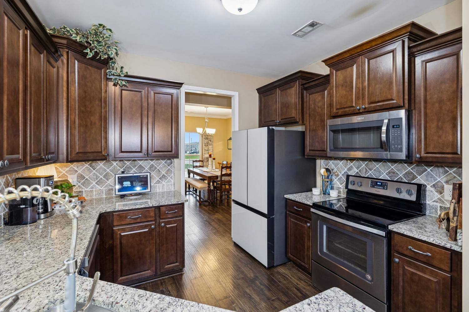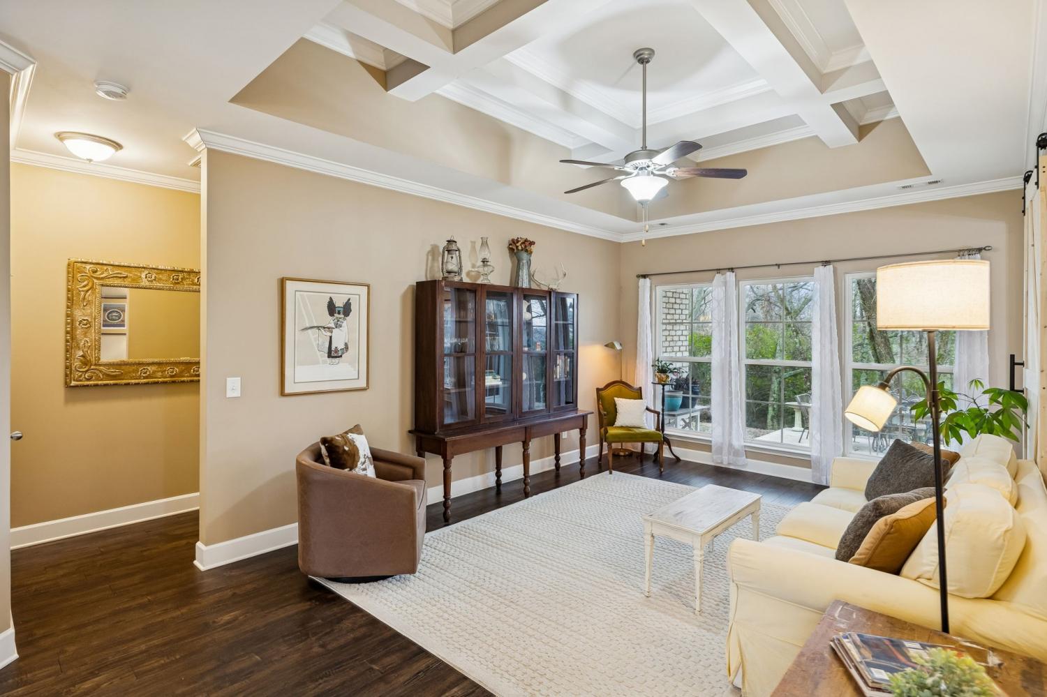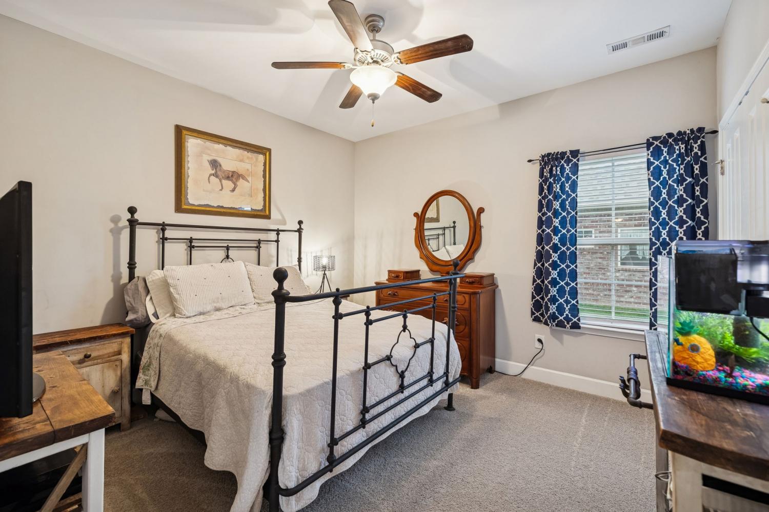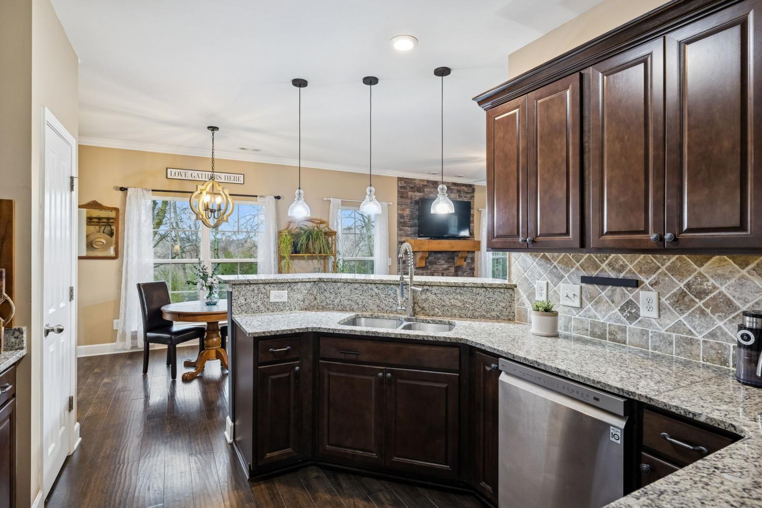 Beautiful all-brick, one-level living home on a spacious lot that backs up to a tree line, offering a private backyard with no homes behind it. This well-maintained home built by Regent Homes is filled with high quality finishes throughout. The inviting covered front porch welcomes you as you step inside this home featuring a Great Room with a stunning coffered ceiling and large windows overlooking the peaceful backyard. The front Flex Room with French doors is ideal for a home office, study, or potential 4th bedroom. You’ll love the Eat-In Kitchen that opens to the Hearth Room showcasing a beautiful stone wood burning fireplace, or enjoy entertaining in the designated Dining Room. The spacious Primary Suite features a tiled step-in shower, garden tub, double vanities, and a large walk-in closet. This home is filled with upgrades including crown molding, upgraded light fixtures and ceiling fans, NEW carpet in all bedrooms (2025), NEW dishwasher and garbage disposal (2024), and a NEW roof (2025) with leaf filter gutter guards. Covered Back Porch and patio create the perfect outdoor living space to enjoy watching all of the wildlife that make their home in the woods and farmland behind you. Extended driveway provides plenty of extra parking space and an outdoor shed for additional storage. Convenient North Columbia location minutes from Spring Hill shopping & dining and a short drive to Historic Downtown Columbia, with easy access to Saturn Pkwy/I-65. Don’t miss the chance to make this stunning home your own!