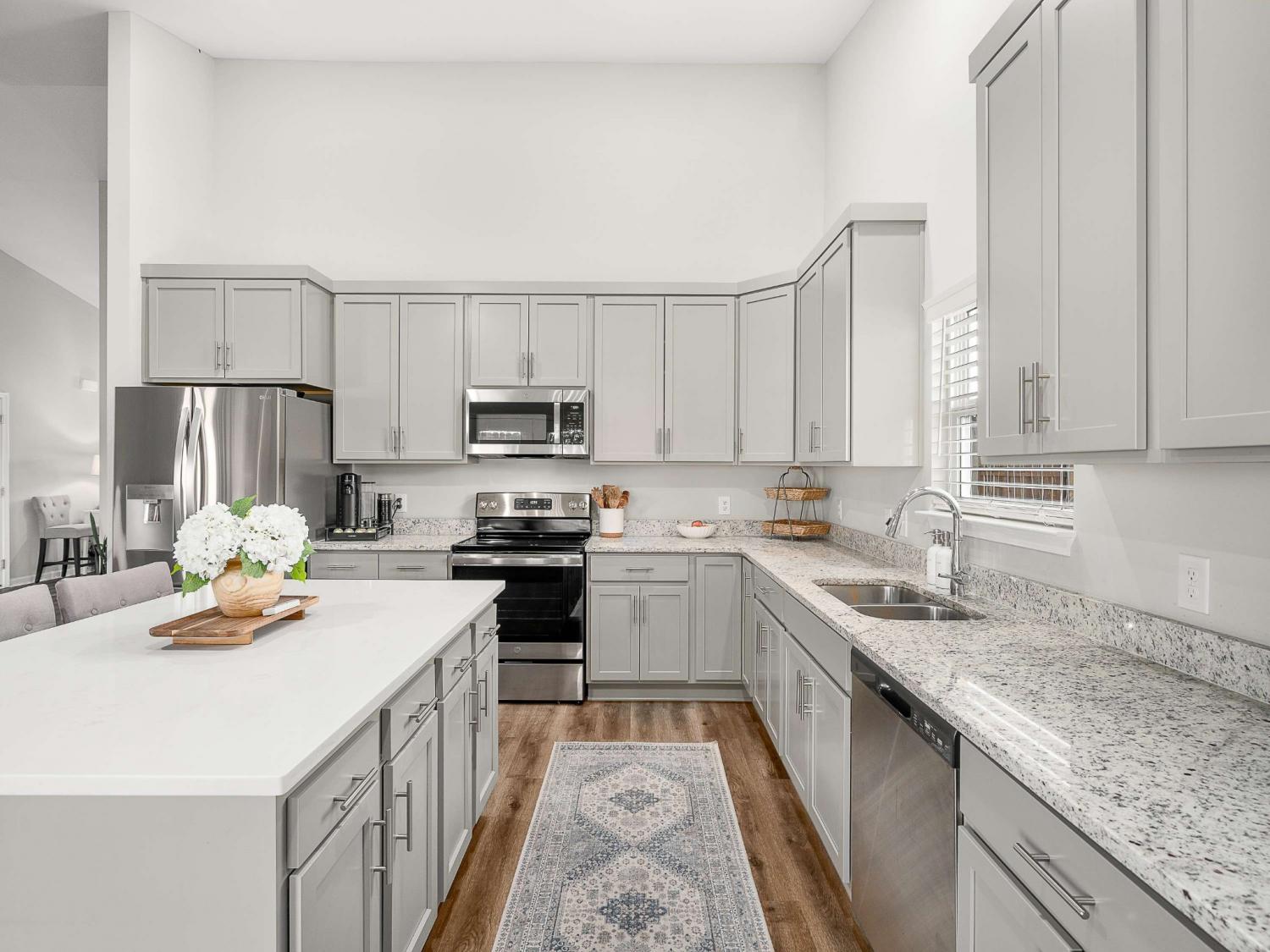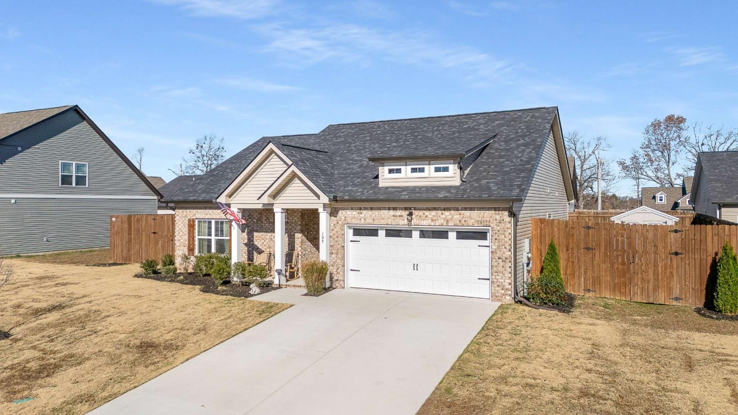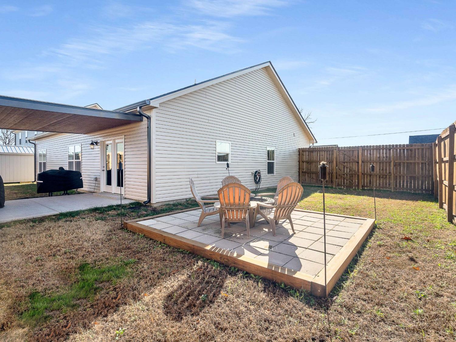 Welcome to 109 Bell Cir in the desirable Bell Forge neighborhood! This beautifully maintained 3-bed, 2-bath home offers a modern split-floor plan and stylish finishes throughout. Luxury vinyl wood-look flooring flows throughout the house, creating a warm and cohesive feel the moment you walk in. Step inside to an open-concept, cozy living area featuring an electric fireplace and a kitchen designed for both function and style—complete with a mix of granite and quartz countertops, GE stainless steel appliances, abundant cabinet storage, a pantry, and soft-close drawers. Whether hosting or prepping dinner for the family, this kitchen checks every box. The spacious primary suite includes a walk-in closet and a relaxing en-suite bathroom with granite countertops and a soaking tub/shower combo. Two additional bedrooms and a second full bath offer comfortable space for guests, kids, or a home office. Outside, enjoy a covered patio perfect for morning coffee, plus a separate firepit area ideal for cozy evenings. The 2-car garage provides excellent storage and convenience. Located in the sought-after White Bluff Bell Forge neighborhood, this home offers the perfect blend of comfort, style, and small-town charm— just minutes from Montgomery Bell Park, schools, and shopping. Don't miss your chance to make this your next home! Come see why 109 Bell Cir should be your next home!