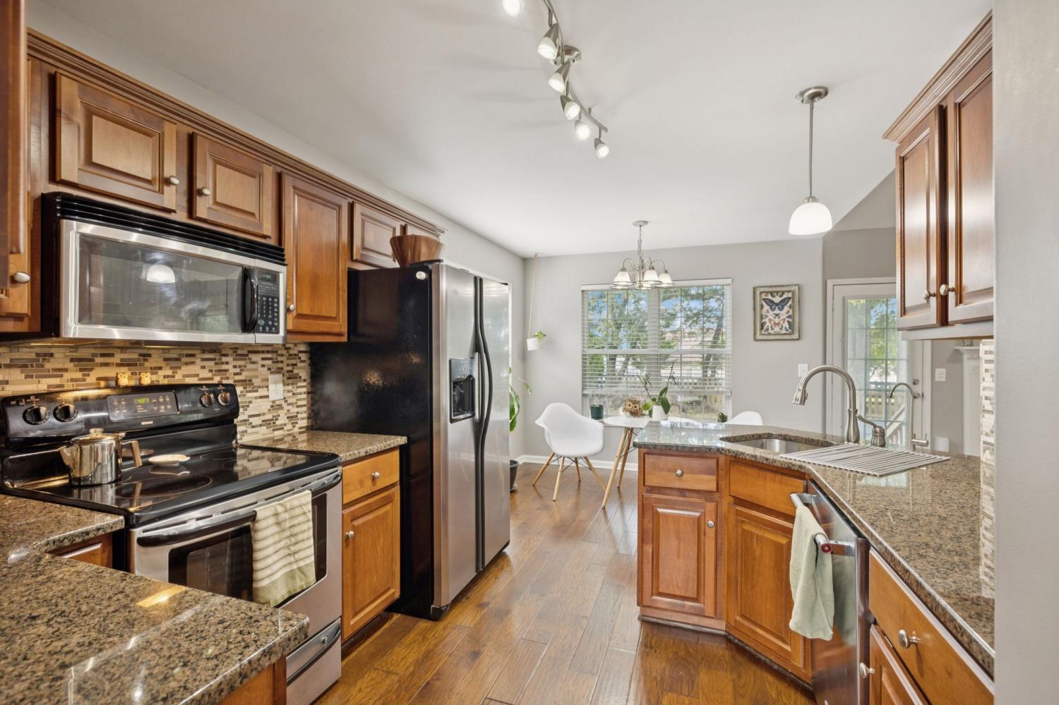 Welcome to this delightful 3-bedroom, 2.5-bath home in Golf View Estates featuring a main-level master with his-and-hers vanities and an expansive vaulted ceiling in the living room that invites in quality natural light. Enjoy the granite countertop in the kitchen that expands to overlook the lovely breakfast nook! The newly updated roof (3 years old) gives you peace of mind. Upstairs offers a versatile bonus room ideal for a nursery, media space, or a large home office. Outdoors, enjoy a private fenced backyard bordered by trees and a back patio perfect for your morning coffee or relaxed evenings. Located just 3 miles from the new Spring Hill Town Center and Publix, this home balances convenience, comfort, and style.