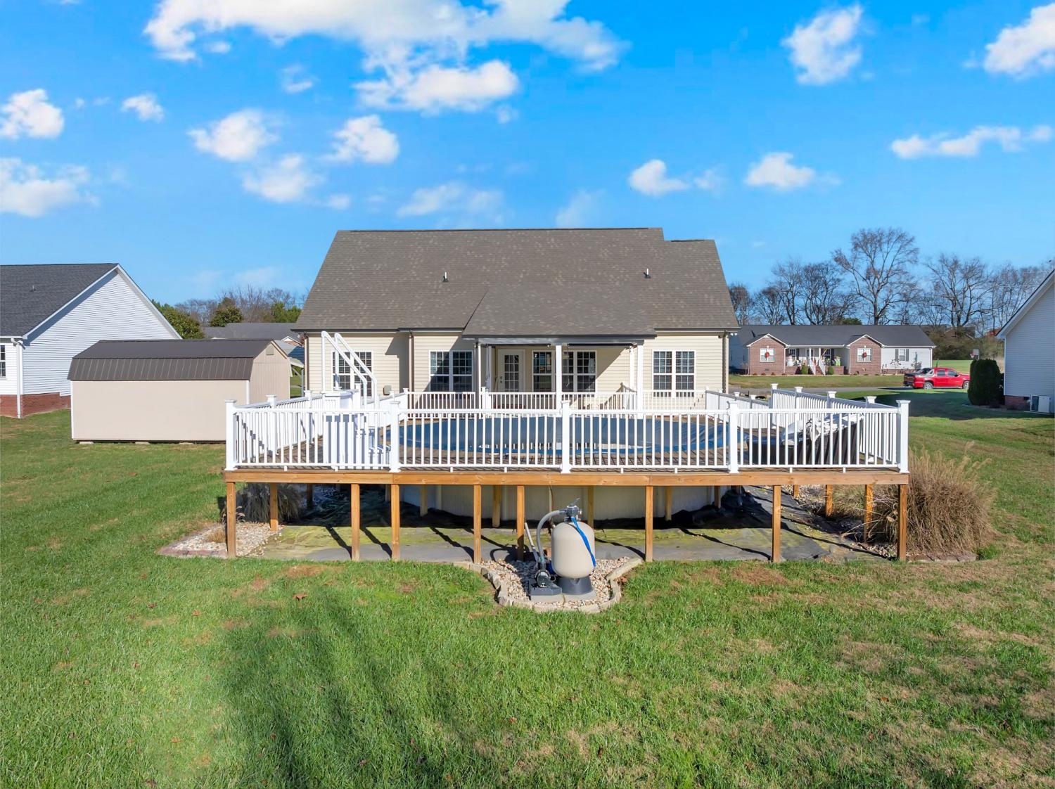 This beautifully maintained 1,899 sq ft home offers a smart split floorplan, an open kitchen–living layout, and a spacious bonus room over the garage. The interior flows perfectly for everyday living and entertaining, enhanced by well-kept, beautiful landscaping that adds curb appeal and outdoor enjoyment. Outside, the property delivers exceptional utility with an oversized 2-car attached garage, a 2-car carport, a powered 12×20 workshop, and a 12×20 storage shed with lean-to. A large covered patio with sun screens overlooks the above-ground pool and expansive pool deck—ideal for relaxing or hosting gatherings. Situated just minutes from I-24, Arnold Air Force Base, Walmart, and local conveniences, this home combines functional space, attractive outdoor features, and a desirable location. Properties with this level of storage, parking, and outdoor amenities rarely hit the market.