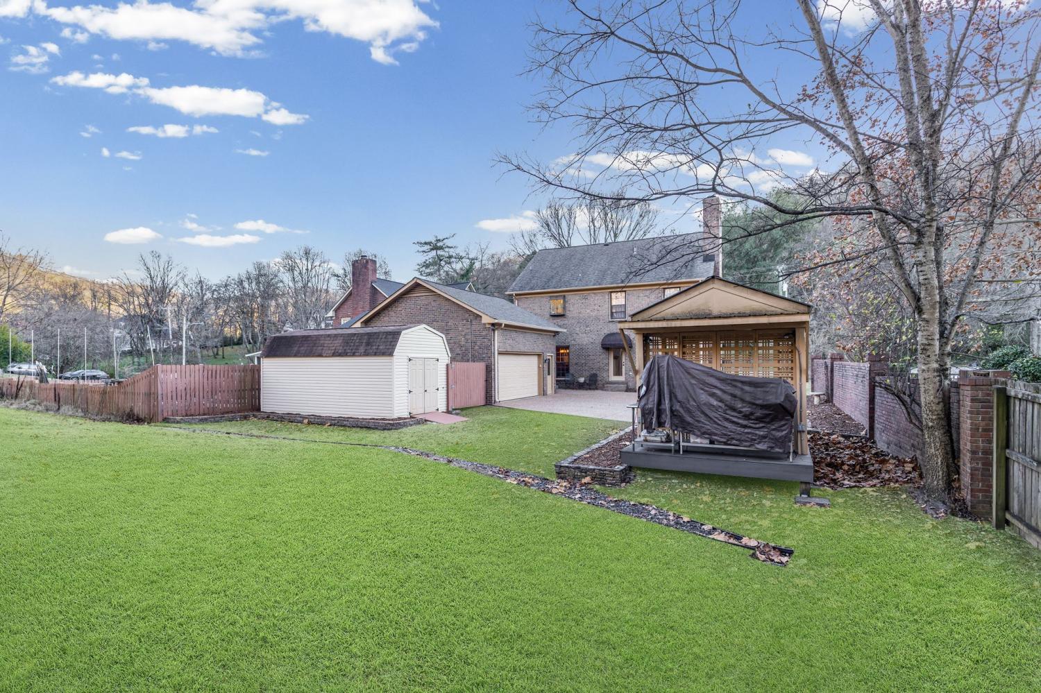 • Spacious, move-in ready, all-brick home on sought-after Tyne Blvd. • Well maintained with approx. 2,840 sq. ft. of interior living • Gourmet kitchen with custom cabinetry, stone countertops, tile backsplash, and appliance garage • High-end appliances: Dacor gas range, 2 Miele dishwashers, Miele warming drawer, KitchenAid double wall oven/microwave, & French-door refrigerator (conveys), • Hardwood floors in kitchen, living, dining, and laundry rooms • Porcelain tile foyer, carpeted den with gas fireplace, tile in bathrooms • Custom-built media cabinet in living room – negotiable • Washer and dryer – negotiable • Main-floor bedroom with walk-in closet and direct access to full bath (ideal for guest room) • Primary suite with two walk-in closets, ensuite bath featuring double vanities, whirlpool tub, walk-in shower, and water closet • Rear patio (12 x 10) accessible from both kitchen and den • Outdoor dining in separate gazebo • Oversized attached two car garage w/epoxy floor - garage storage units negotiable • Detached storage building (20 x 10) remains • Aggregate driveway • Seller is offering a 1-year ACHOSA Home Warranty
