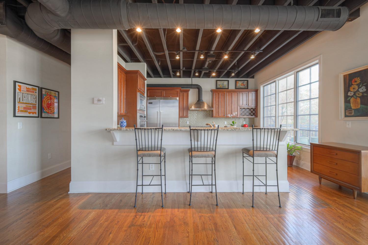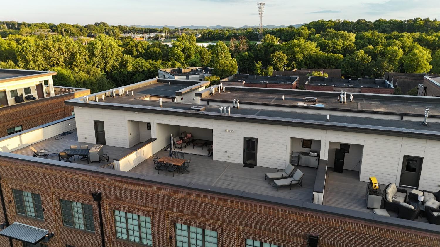 Incredible corner unit opportunity in one of Franklin’s most desirable locations, Jamison Station —directly across the street from The Factory! Enjoy instant access to award-winning restaurants, boutique shopping, live music, and year-round community events, all while being just moments from Historic Downtown Franklin. This impressive corner unit offers industrial-style ceilings, beautiful hardwood floors, and a private elevator serving all three floors for ultimate convenience. The thoughtfully designed layout includes multiple outdoor living spaces: a spacious 3rd-level deck, two separate balconies, and a stunning rooftop deck replaced in 2024—perfect for entertaining or relaxing under the Tennessee sky. Inside, you’ll find a stylish kitchen with tile backsplash, plus a granite fireplace mantel adding a touch of luxury. A built-in Murphy bed provides flexible use of space for guests or a home office. The home’s modern finishes and abundant natural light complement its unmatched walkability. Live steps from everything Franklin has to offer—this is location, lifestyle, and low-maintenance living at its best. This home comes with gated parking under the unit that has 2 deeded spots, a storage facility and a parking deck for guest parking via permit for overnight.