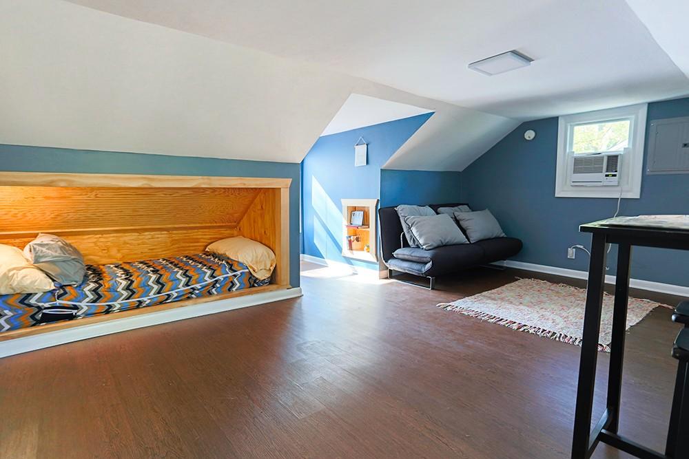 Very Cute upstairs studio apartment! Can rent furnished or unfurnished. Granite counter top, cultured marble shower, bunk bed built into the wall. Private Driveway, large private deck. Ceilings are a bit low so if you are over 6'4", you might be uncomfortable. Rent includes water. 15 minute walk to the square, 15 minute walk to the center of MTSU. Home was built in 1920 but the attic was finished out way after that.