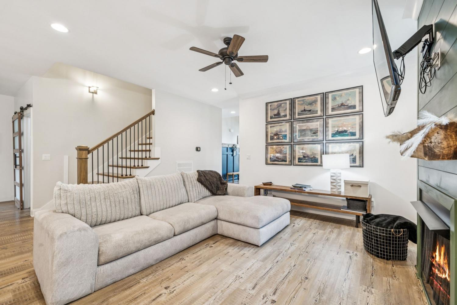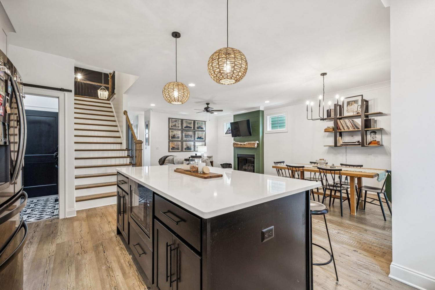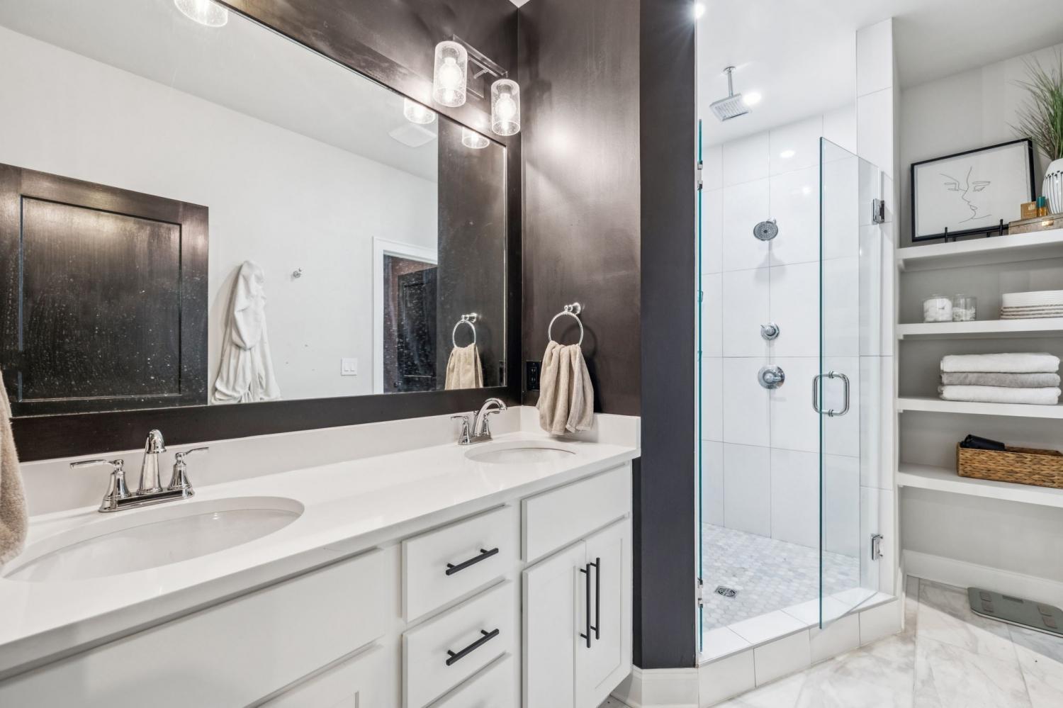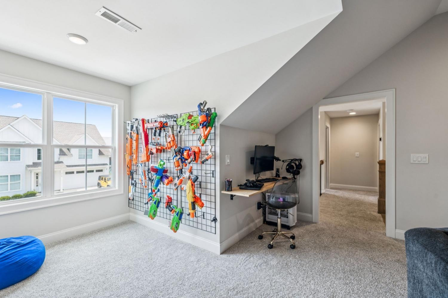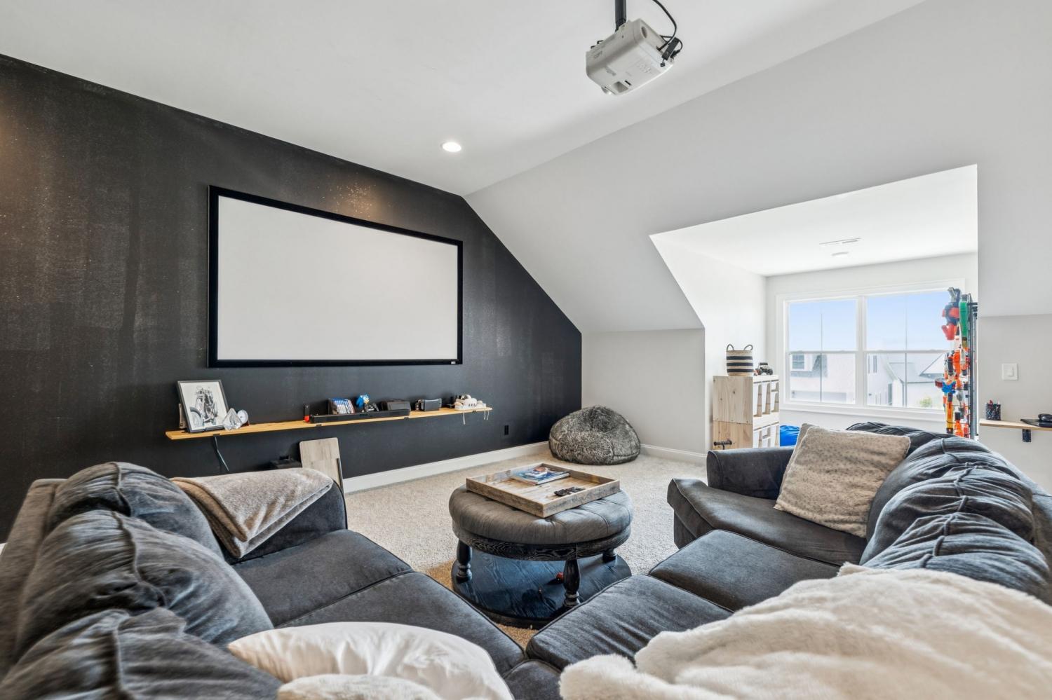 Welcome to a truly special home in Twin Creeks Village, where lake living meets elevated design and everyday comfort. This beautifully appointed 3-bedroom, 3-full & 1-half bath home offers just under 2,600 square feet of thoughtfully designed space, featuring soaring ceilings and a dramatic two-story foyer layered with exquisite trim, statement light fixtures, and designer wallpaper details throughout. Step inside to find luxury vinyl plank flooring on the main level, a cozy gas fireplace anchoring the living room, and a stylish open-concept kitchen with sleek finishes and natural light pouring in. The versatile first-floor office is perfect for a den or nursery, and the spacious media room comes complete with a built-in projector and a huge walk-in attic for extra storage—perfect for keeping things organized without sacrificing space. The super-luxe primary suite has been updated with brand new LVP flooring, creating a fresh, modern look to pair with its spa-inspired bath featuring a massive walk-in shower and oversized closet. You'll also love the sleek, modern laundry room, the beautifully landscaped backyard with a built-in fire pit, and the convenience of an attached 2-car garage. Twin Creeks offers a year-round lakefront lifestyle with easy marina access for boating and paddleboarding, plus three resort-style pools just steps away. Enjoy lakeside dining and live music at Drafts & Watercrafts. Miles of walking trails and golf cart paths wind through the community, making outdoor living as convenient as it is enjoyable. With both short-term and long-term rental potential, this standout home blends designer details, functional living, and lakeside luxury. Come experience lake life at its finest!