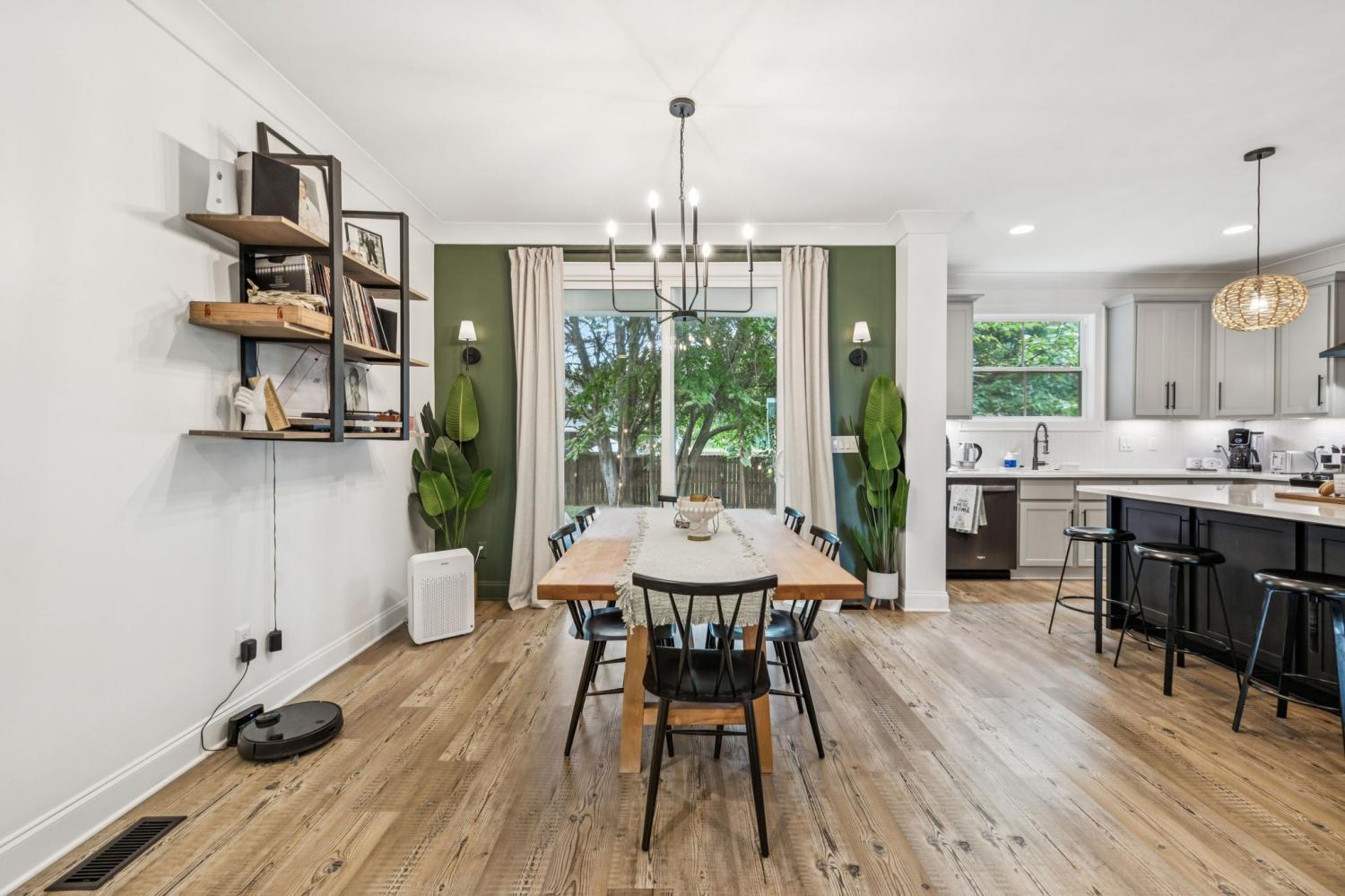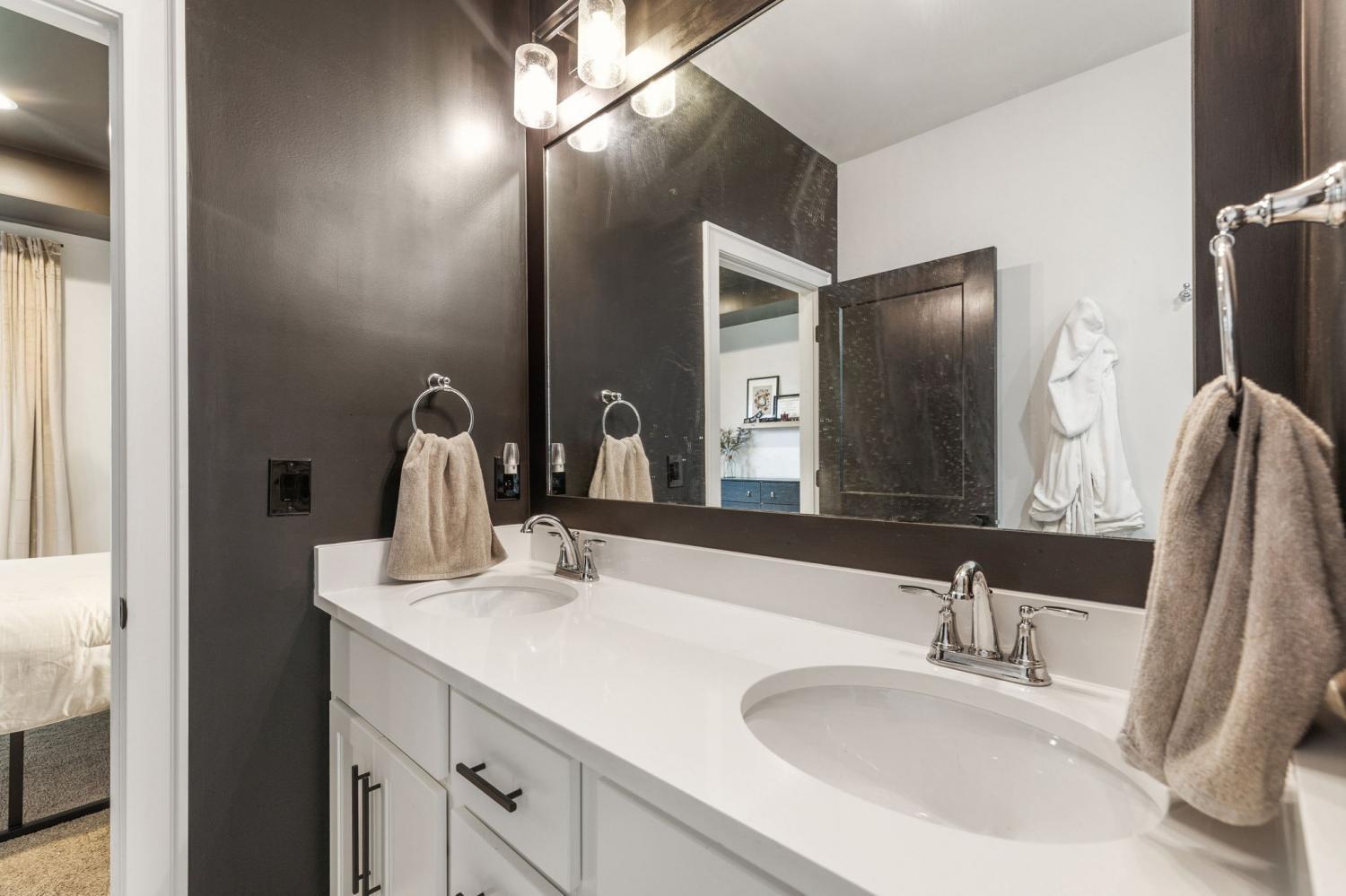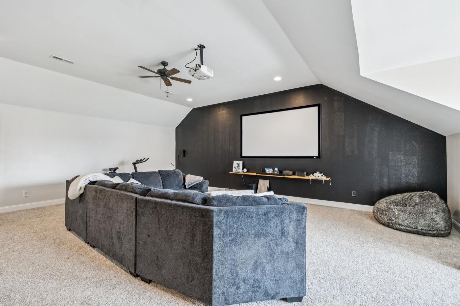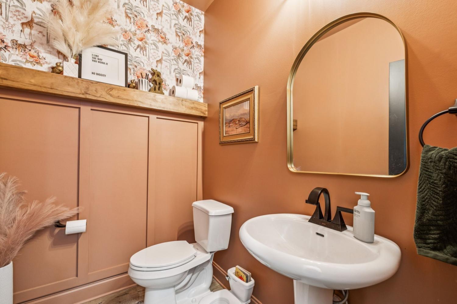 Welcome to a truly special home in Twin Creeks Village, where lake living meets elevated design and everyday comfort. This beautifully appointed 3-bedroom, 3-full & 1-half bath home offers just under 2,600 square feet of thoughtfully designed space, featuring soaring ceilings and a dramatic two-story foyer layered with exquisite trim, statement light fixtures, and designer wallpaper details throughout. Step inside to find luxury vinyl plank flooring on the main level, a cozy gas fireplace anchoring the living room, and a stylish open-concept kitchen with sleek finishes and natural light pouring in. The versatile first-floor office is perfect for a den or nursery, and the spacious media room comes complete with a built-in projector and a huge walk-in attic for extra storage—perfect for keeping things organized without sacrificing space. The super-luxe primary suite has been updated with brand new LVP flooring, creating a fresh, modern look to pair with its spa-inspired bath featuring a massive walk-in shower and oversized closet. You'll also love the sleek, modern laundry room, the beautifully landscaped backyard with a built-in fire pit, and the convenience of an attached 2-car garage. Twin Creeks offers a year-round lakefront lifestyle with easy marina access for boating and paddleboarding, plus three resort-style pools just steps away. Enjoy lakeside dining and live music at Drafts & Watercrafts. Miles of walking trails and golf cart paths wind through the community, making outdoor living as convenient as it is enjoyable. With both short-term and long-term rental potential, this standout home blends designer details, functional living, and lakeside luxury. Come experience lake life at its finest!