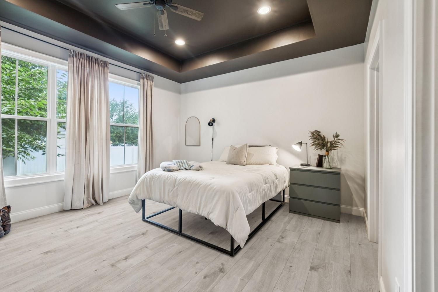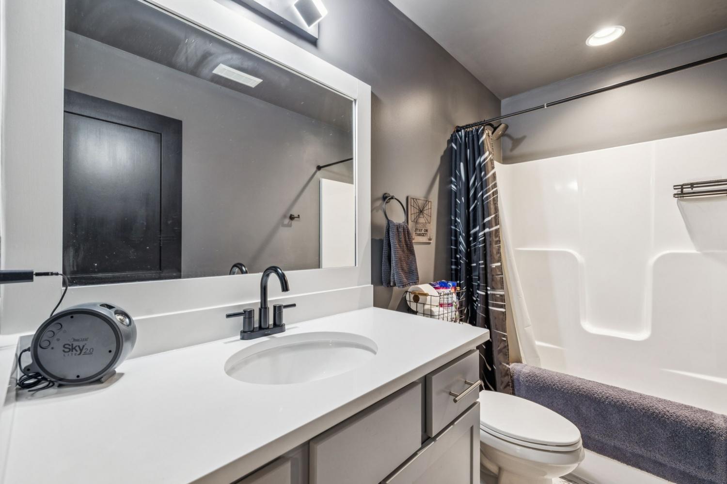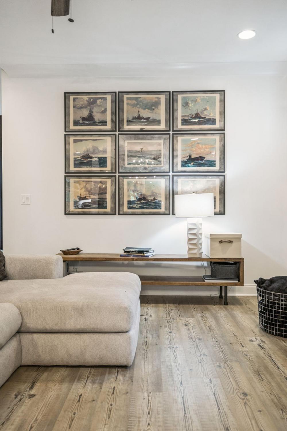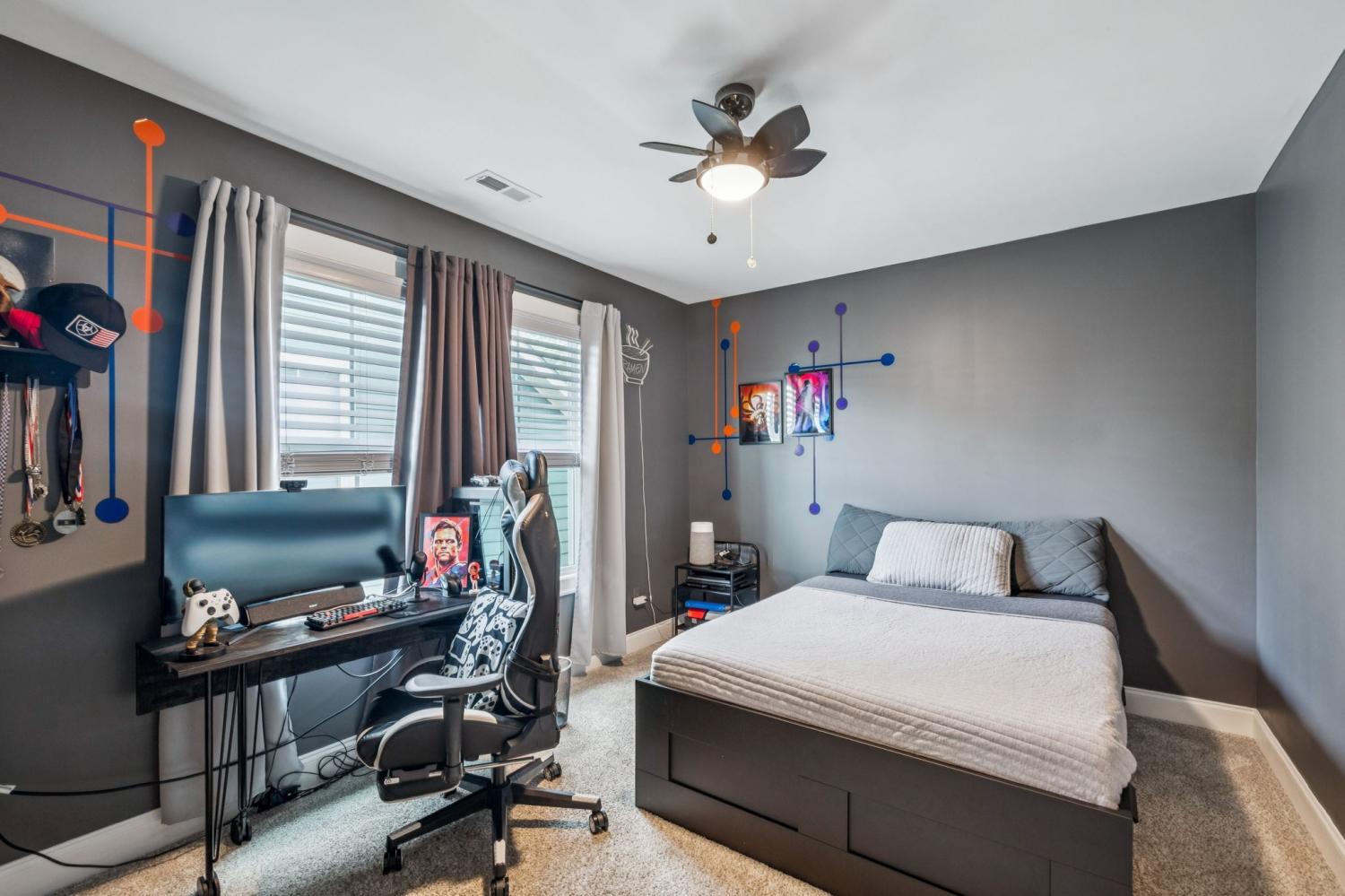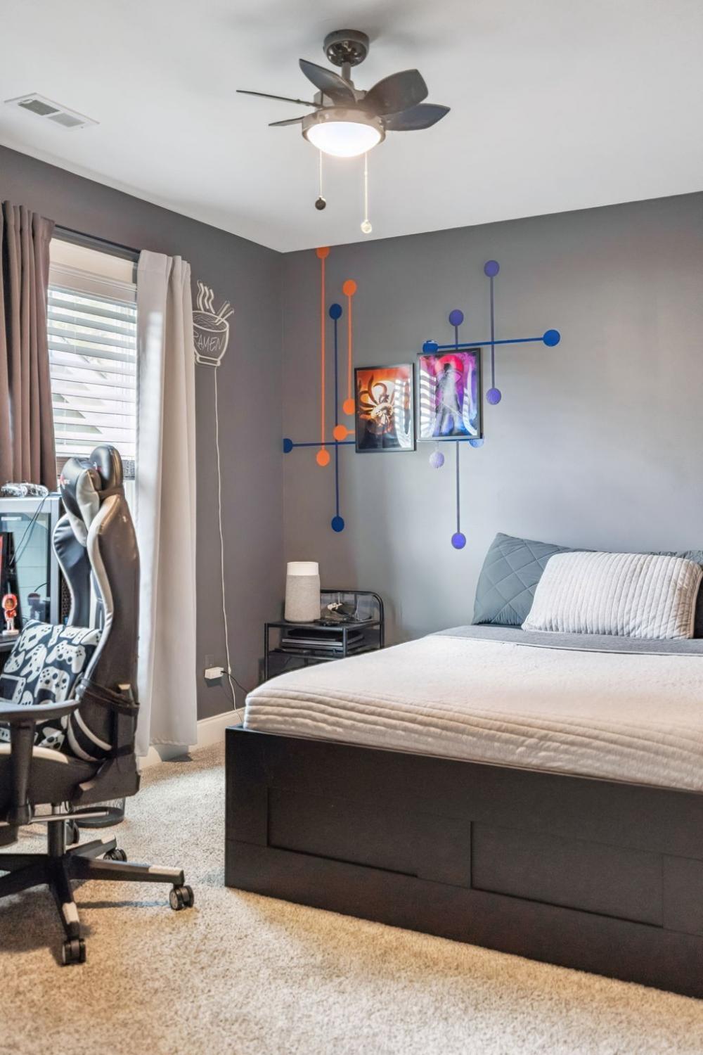 Welcome to a truly special home in Twin Creeks Village, where lake living meets elevated design and everyday comfort. This beautifully appointed 3-bedroom, 3-full & 1-half bath home offers just under 2,600 square feet of thoughtfully designed space, featuring soaring ceilings and a dramatic two-story foyer layered with exquisite trim, statement light fixtures, and designer wallpaper details throughout. Step inside to find luxury vinyl plank flooring on the main level, a cozy gas fireplace anchoring the living room, and a stylish open-concept kitchen with sleek finishes and natural light pouring in. The versatile first-floor office is perfect for a den or nursery, and the spacious media room comes complete with a built-in projector and a huge walk-in attic for extra storage—perfect for keeping things organized without sacrificing space. The super-luxe primary suite has been updated with brand new LVP flooring, creating a fresh, modern look to pair with its spa-inspired bath featuring a massive walk-in shower and oversized closet. You'll also love the sleek, modern laundry room, the beautifully landscaped backyard with a built-in fire pit, and the convenience of an attached 2-car garage. Twin Creeks offers a year-round lakefront lifestyle with easy marina access for boating and paddleboarding, plus three resort-style pools just steps away. Enjoy lakeside dining and live music at Drafts & Watercrafts. Miles of walking trails and golf cart paths wind through the community, making outdoor living as convenient as it is enjoyable. With both short-term and long-term rental potential, this standout home blends designer details, functional living, and lakeside luxury. Come experience lake life at its finest!