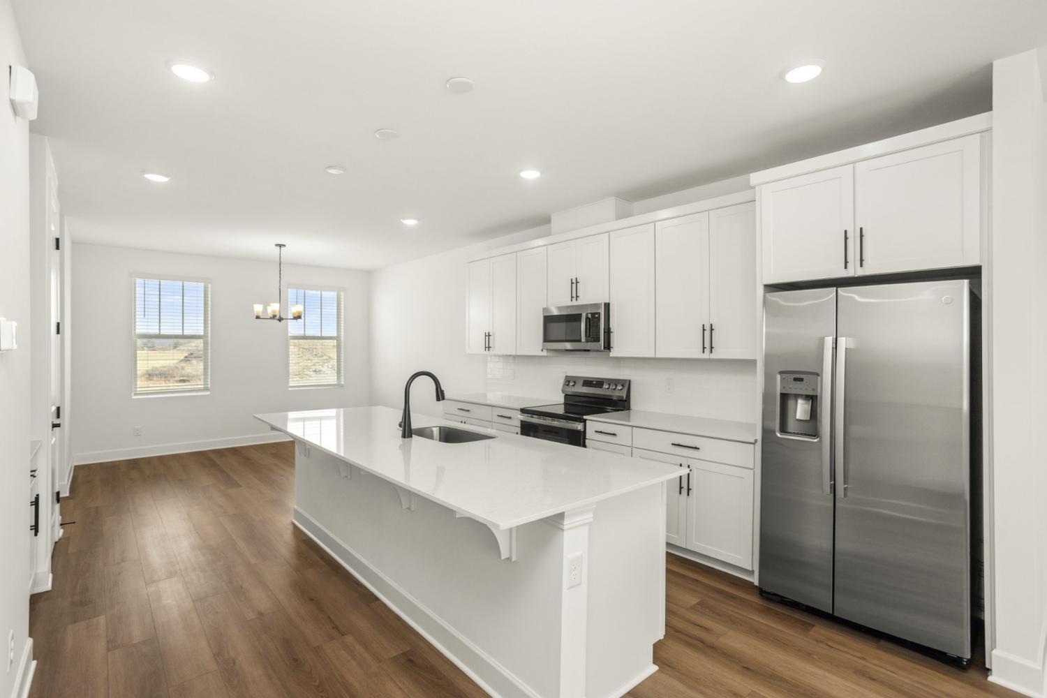 HOME FOR THE HOLIDAY!!! Experience life at The Crossings at Barton Village by Richmond American Homes — where thoughtful design meets unbeatable value. Step into this beautifully crafted 4 Bed / 3.5 Bath “Kimberly” townhome featuring 9’ ceilings, 8’ doors, and an open-concept floor plan that’s equal parts stylish and functional. The kitchen is the heart of the home, showcasing white cabinetry, quartz countertops, stainless steel appliances, and a large island perfect for gatherings and fall festivities. Upstairs, unwind in the Primary Suite complete with double sinks, quartz countertops, and a tiled shower. A 2-car garage adds convenience and extra storage. Don’t miss this limited-time Black Friday opportunity — tour today and claim Lot 15 before it’s gone!