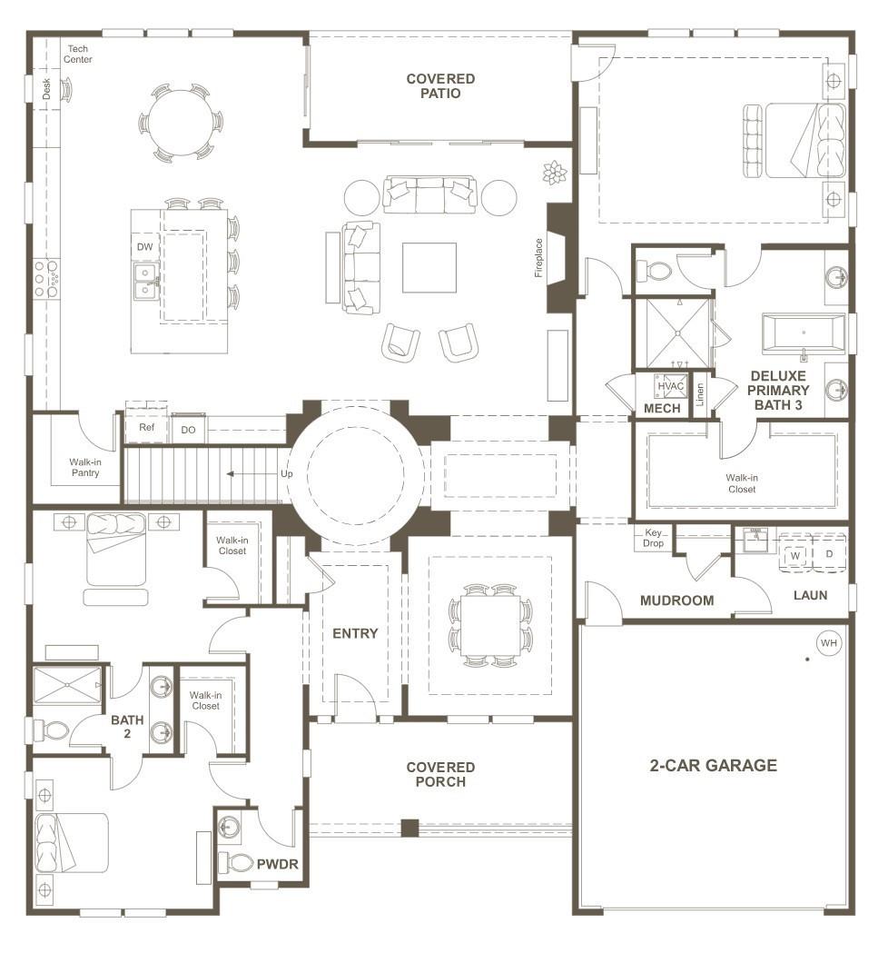Holiday Luxury: The Henley Plan at August Park (Lot 234) Celebrate the holidays in timeless style with the Henley plan, offering nearly all one-level living and the feel of a custom estate. Backed by a mature tree line, this home provides cozy privacy perfect for winter mornings or festive gatherings. The main level features soaring ceilings, hardwood floors, and a wide entry that flows past a grand formal dining room—ideal for holiday dinners. Two guest suites with a Jack and Jill bath welcome visitors, while the private primary suite offers a spa-like retreat with convenient laundry access. At the heart of the home, the gourmet kitchen—with oversized island, Monogram stainless appliances, and abundant storage—sets the stage for holiday entertaining. The living area extends to a covered porch through dramatic slide-away glass doors, creating seamless indoor-outdoor celebrations. Upstairs, a spacious movie/game room and private guest suite make hosting holiday visitors effortless, with extra closets and walk-in attic storage for seasonal décor. This Henley plan blends elegance, comfort, and holiday-ready design—perfect for making memories all year long.