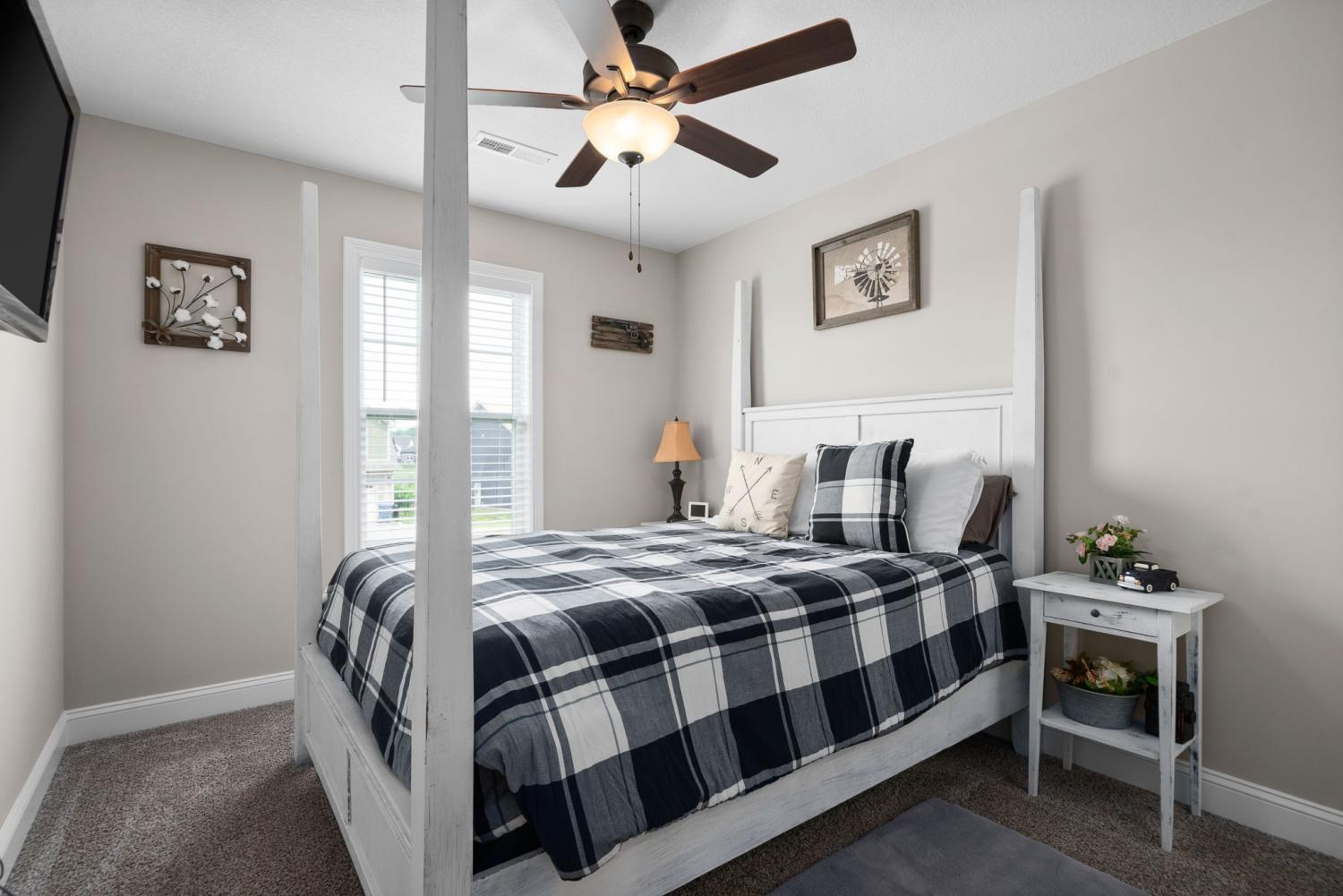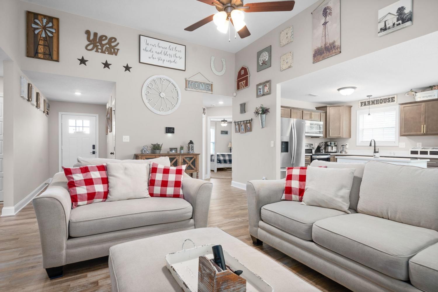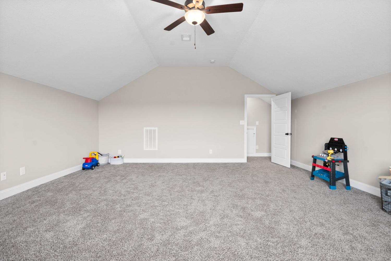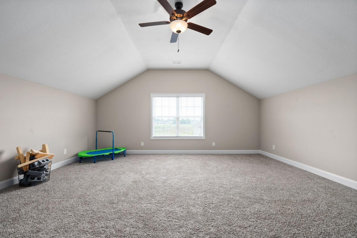 This beautiful 3 bedroom/2 bath Ranch style with a huge bonus above the garage will be available for occupancy 12/26/2025. Home has been immaculately cared for. With an open floor plan you can easily engage with dinner guests from the kitchen as they socialize in living room. The living room features a stunning shiplap fireplace for cozying up to. Having guests spending some nights? No problem! The Primary bedroom is split from the additional rooms! Primary bedroom is very spacious with gorgeous trey ceiling and offers a primary bath with dual sink vanity and beautifully tiled shower. Home has large fenced in backyard with covered patio.