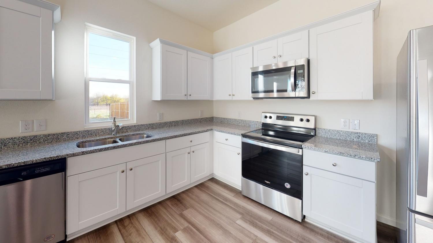 Discover our stunning Endeavor plan — a modern home designed for comfort and style. This thoughtfully crafted layout features three full bedrooms and two and a half bathrooms. Step through the inviting covered porch into the foyer, where a convenient powder bath is located just down the hall. Beyond the entryway, the spacious family room opens seamlessly into the kitchen, creating an inviting space perfect for entertaining and everyday living. The kitchen stands out with its sleek granite countertops, brand-new stainless steel appliances, generous pantry, and easy access to the two-car garage. Upstairs, the luxurious primary suite offers a walk-in closet and a beautifully appointed bath. The laundry room sits conveniently at the top of the stairs for quick access. Two additional bedrooms are upstairs each with its own walk-in closet. Additional highlights include a private backyard, open-concept design, and energy-efficient construction throughout. Community amenities include a resort style pool, playground, sidewalks, and cabana. **Please reach out to sales agent to learn more about incentives.